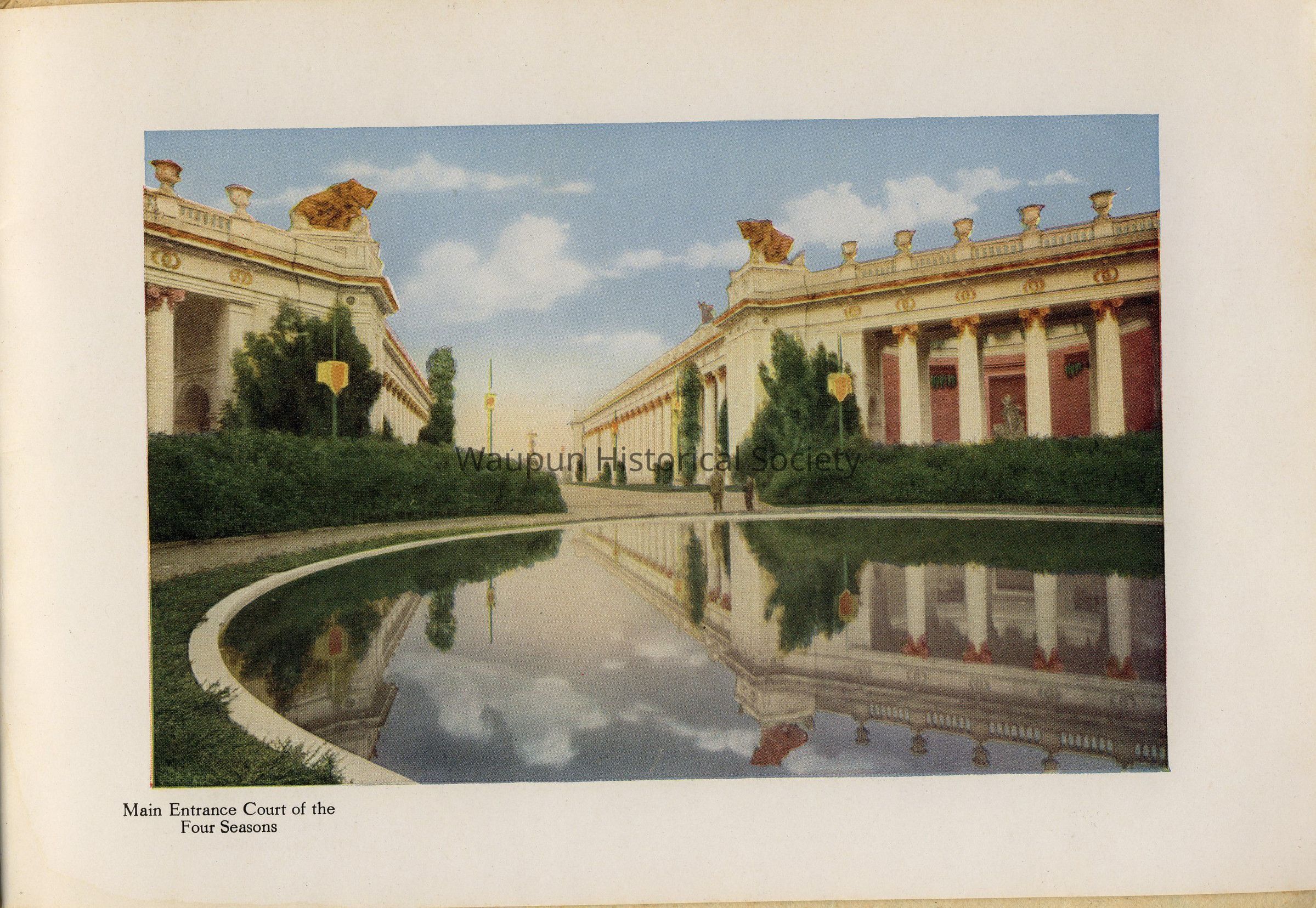 Booklet of the Panama Pacific Exposition. "Colortypes of the Panama Pacific International Exposition at San Francisco 1915. Robert A. Reid, Publisher of Official View Books, San Francisco. Official Publication." Copyright, 1915, by Panama Pacific International Exposition Company." The Panama Pacific exposition was where Mr. Clarence Addison Shaler saw the "End of the Trail" by James Earle Fraser. At some point he decided to buy the statue for Waupun, it was placed in 1929.