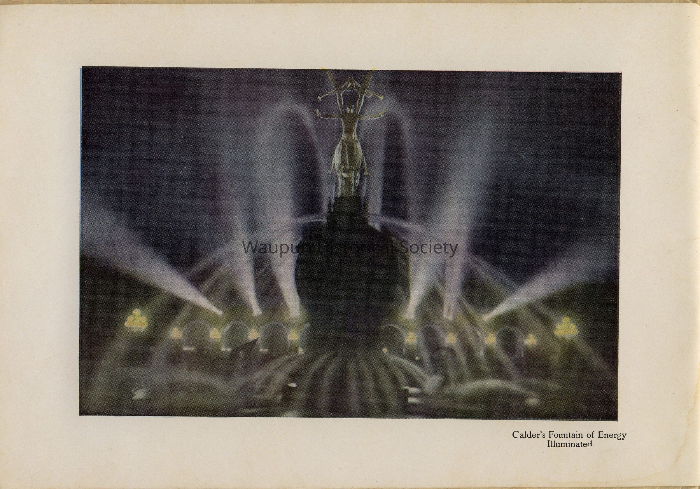 Booklet of the Panama Pacific Exposition. "Colortypes of the Panama Pacific International Exposition at San Francisco 1915. Robert A. Reid, Publisher of Official View Books, San Francisco. Official Publication." Copyright, 1915, by Panama Pacific International Exposition Company." The Panama Pacific exposition was where Mr. Clarence Addison Shaler saw the "End of the Trail" by James Earle Fraser. At some point he decided to buy the statue for Waupun, it was placed in 1929.