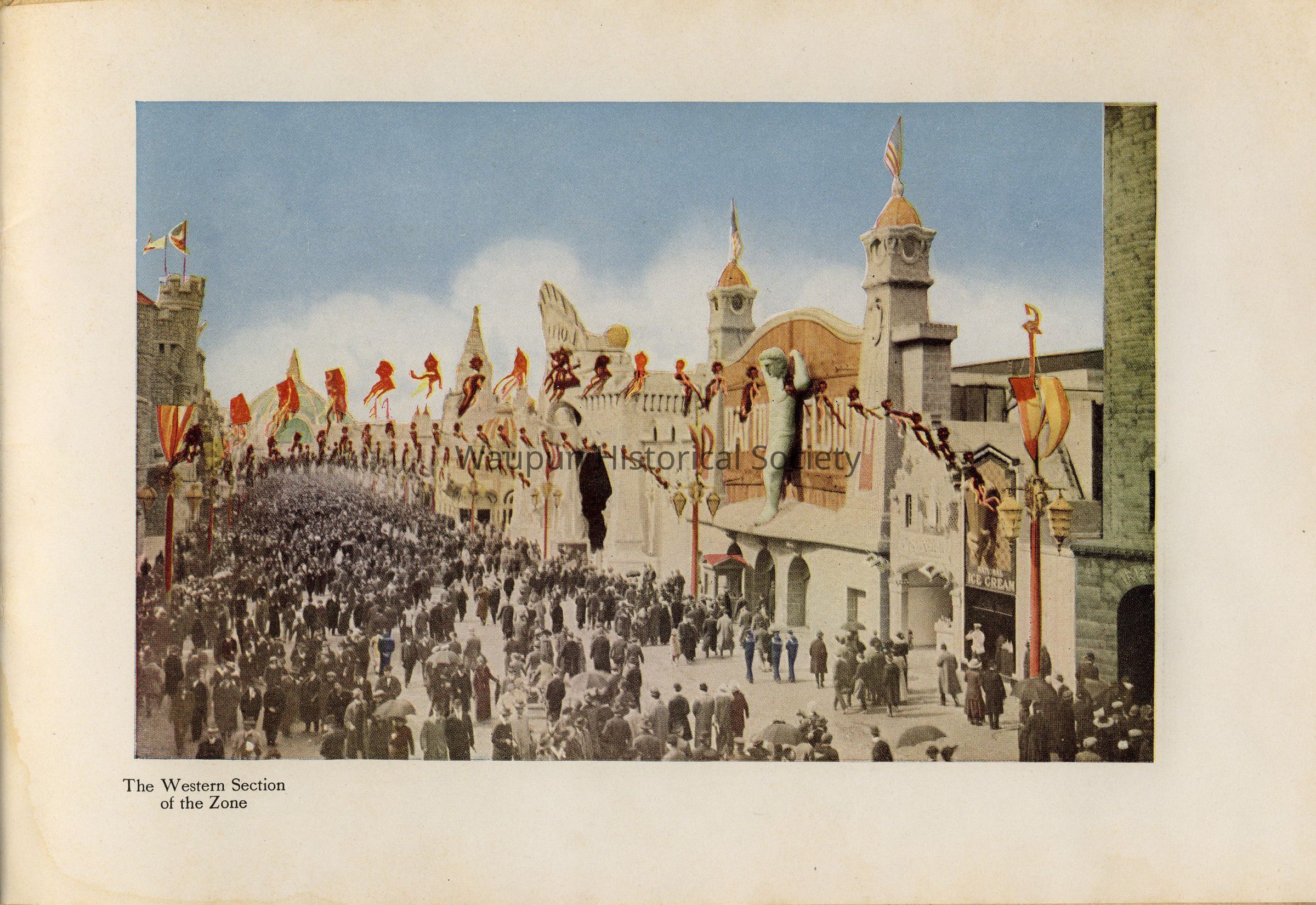 Booklet of the Panama Pacific Exposition. "Colortypes of the Panama Pacific International Exposition at San Francisco 1915. Robert A. Reid, Publisher of Official View Books, San Francisco. Official Publication." Copyright, 1915, by Panama Pacific International Exposition Company." The Panama Pacific exposition was where Mr. Clarence Addison Shaler saw the "End of the Trail" by James Earle Fraser. At some point he decided to buy the statue for Waupun, it was placed in 1929.