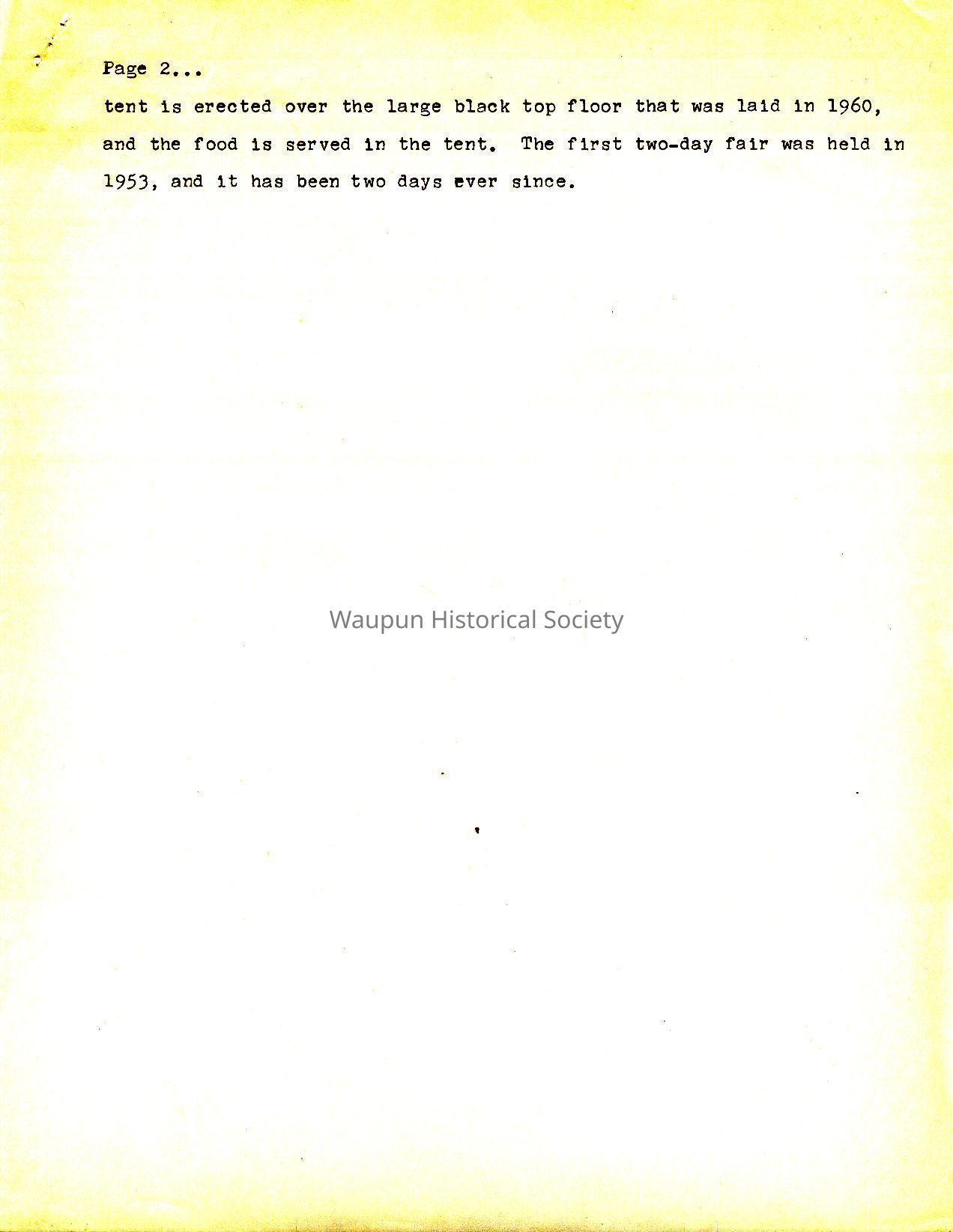 Historical information about Alto Fair for the 1976 Bicentennial Celebration in Waupun, WI