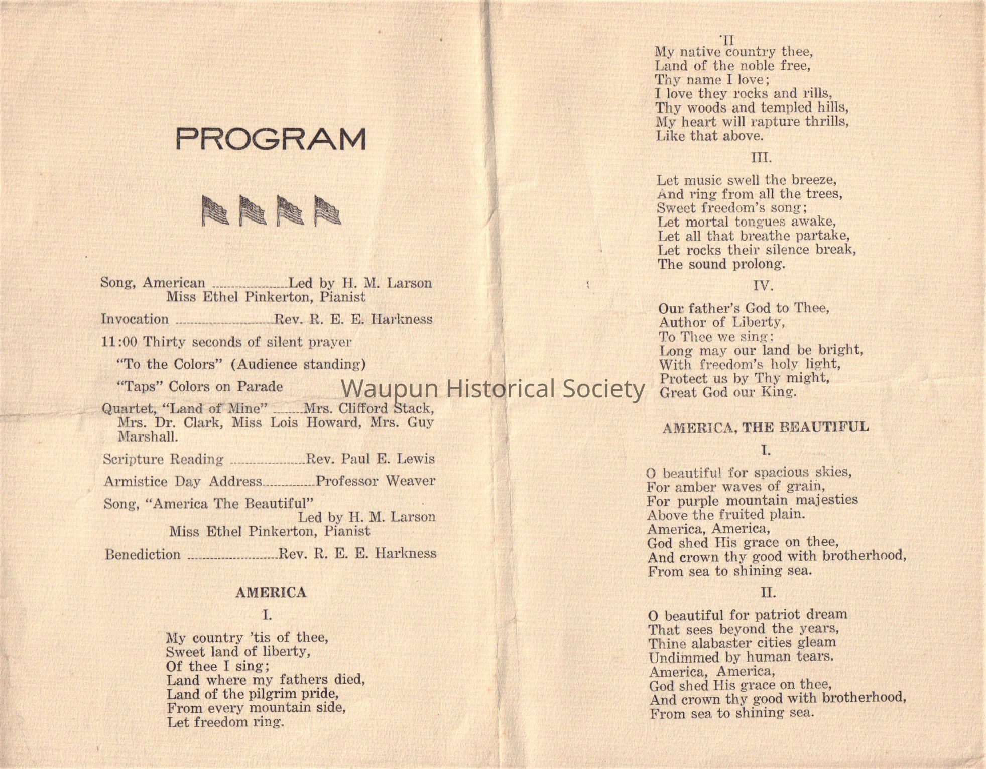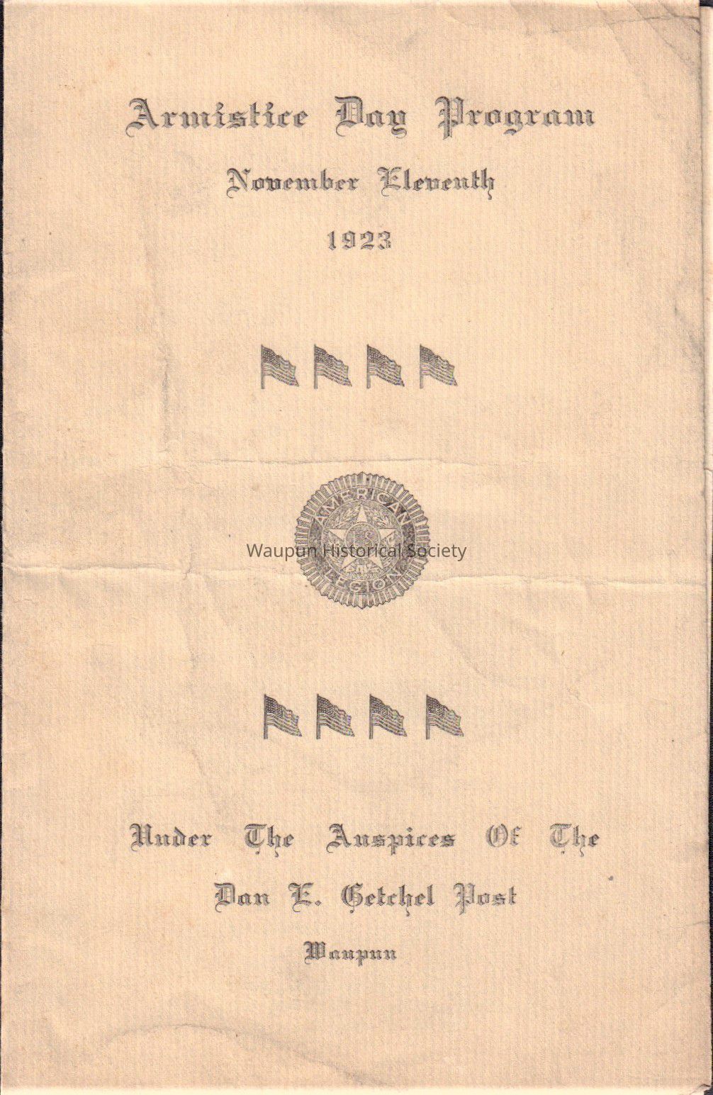 Program, American Legion- Armistice Day Program, 1923, WWIEntry/Object ID