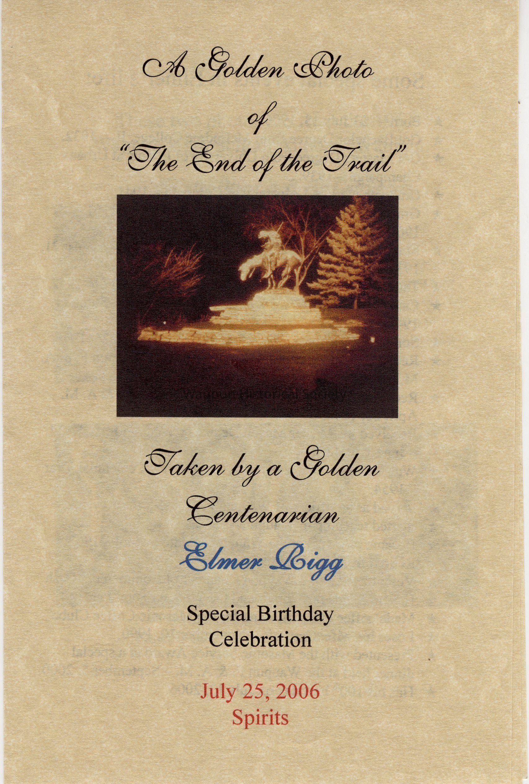 Elmer Rigg Special Birthday Celebration, A Golden Photo of the End of the Trail, 2006Entry/Object ID
