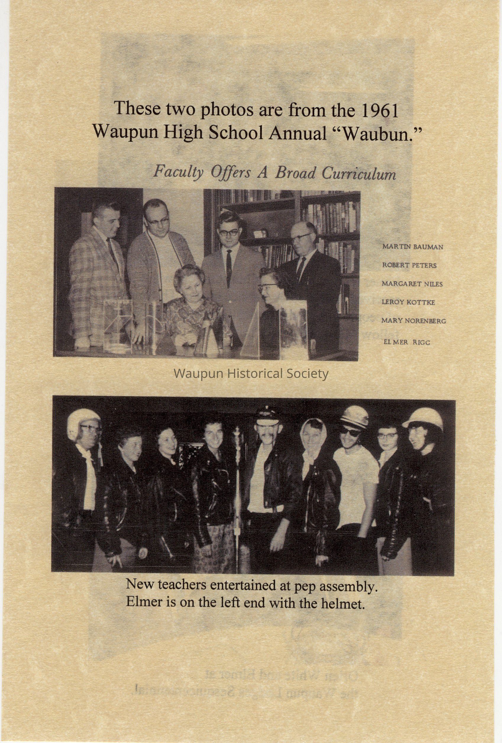 These two photos are from the 1961 Waupun High School Annual "Waubun."
