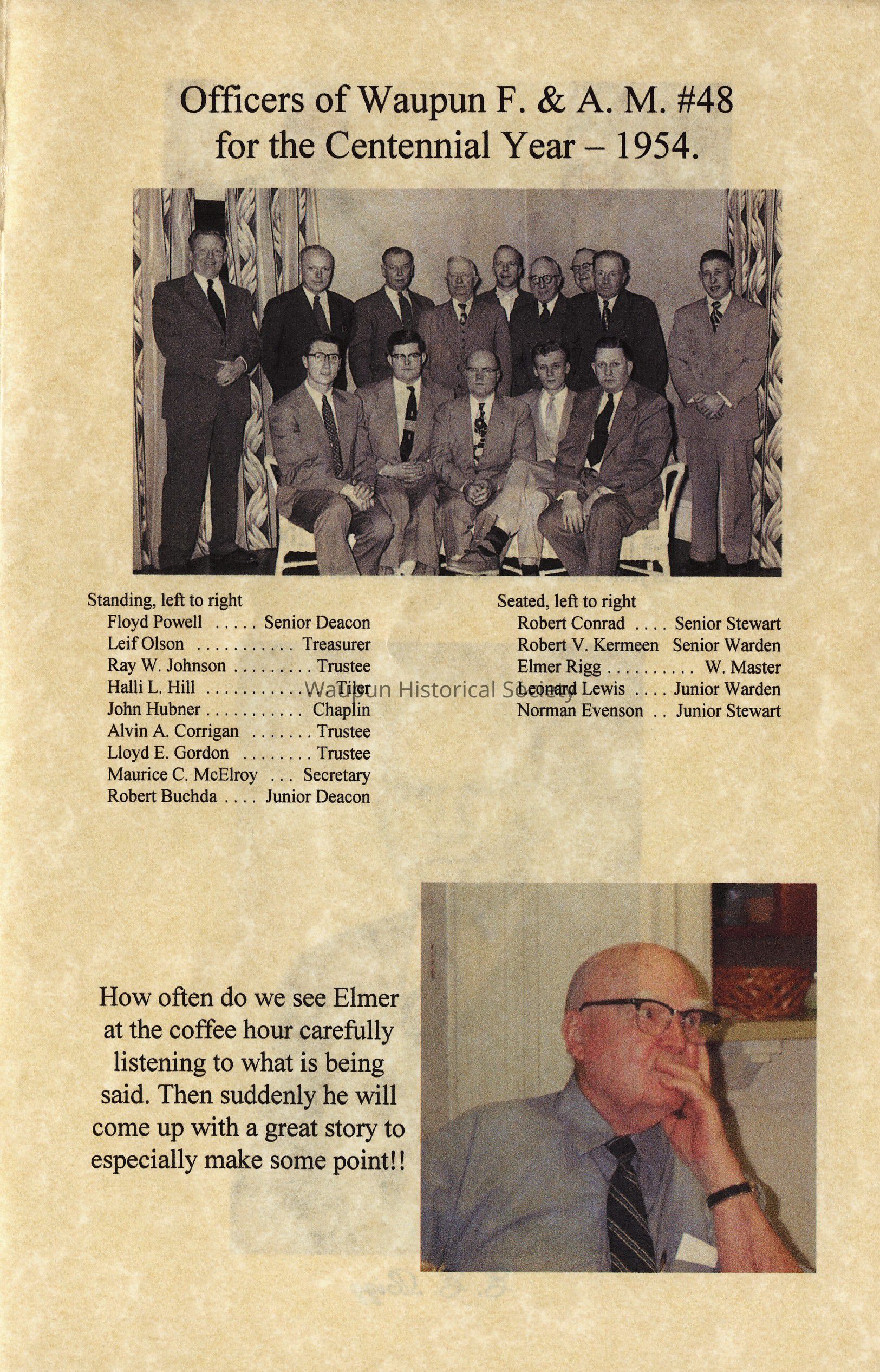 Officers of Waupun F. & A. M. #48 for the Centennial Year - 1954