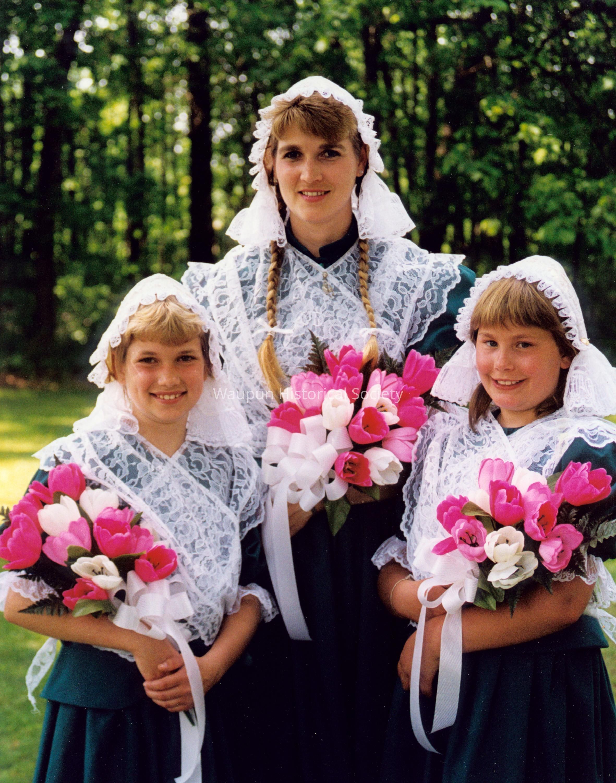 Picture of the 1997 Klompenfest Queen, Sue Reichhoff, and Princesses Melinda Reichhoff and Tiffany Flier. Klompenfest was a local festival that operated from 1992 to 1998. In 1998 the committee disbanded and converted their funds to build the Wind Mill on Brandon Street.Acquisition