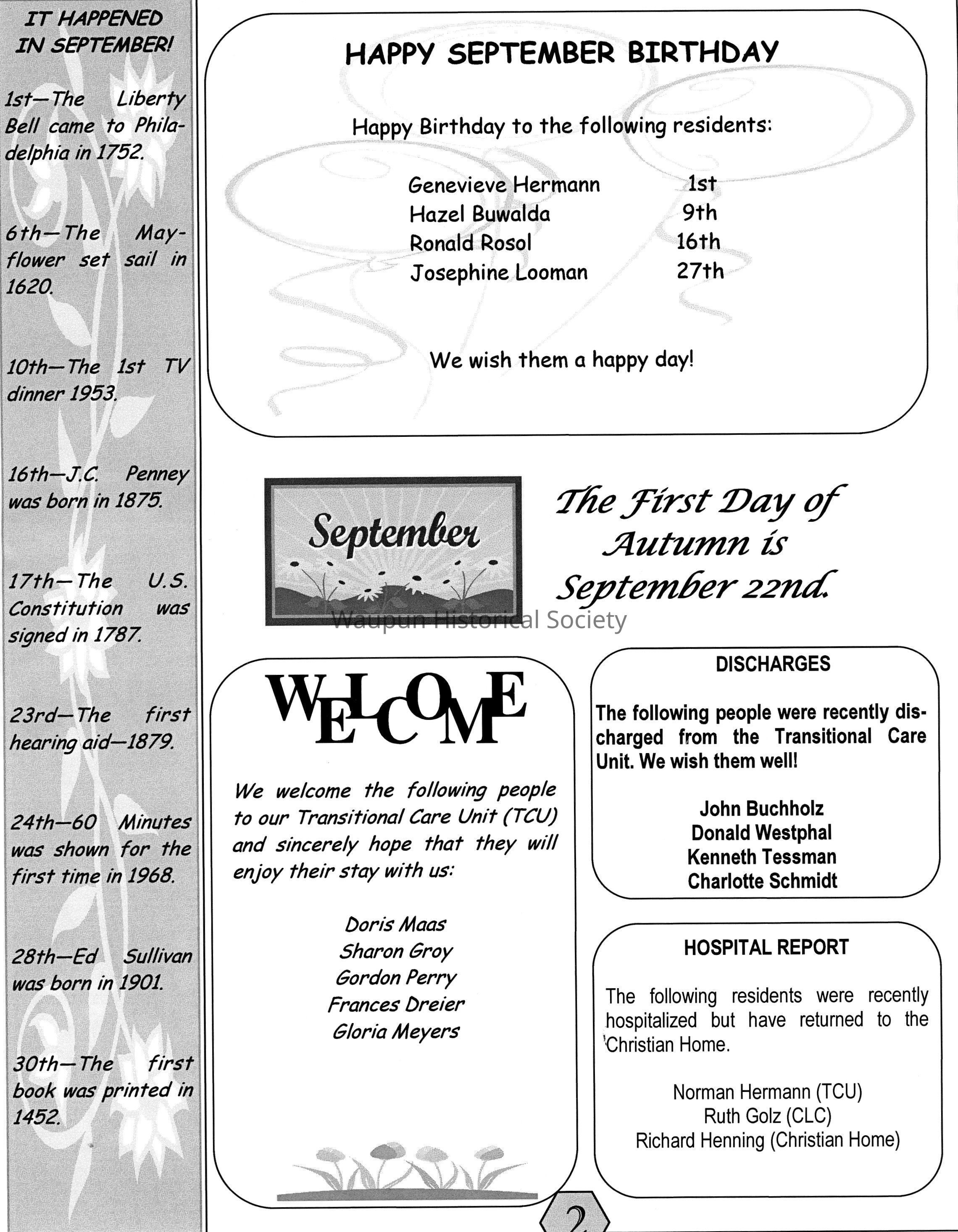 The following residents were recently hospitalized but have returned to the 'Christian Home.