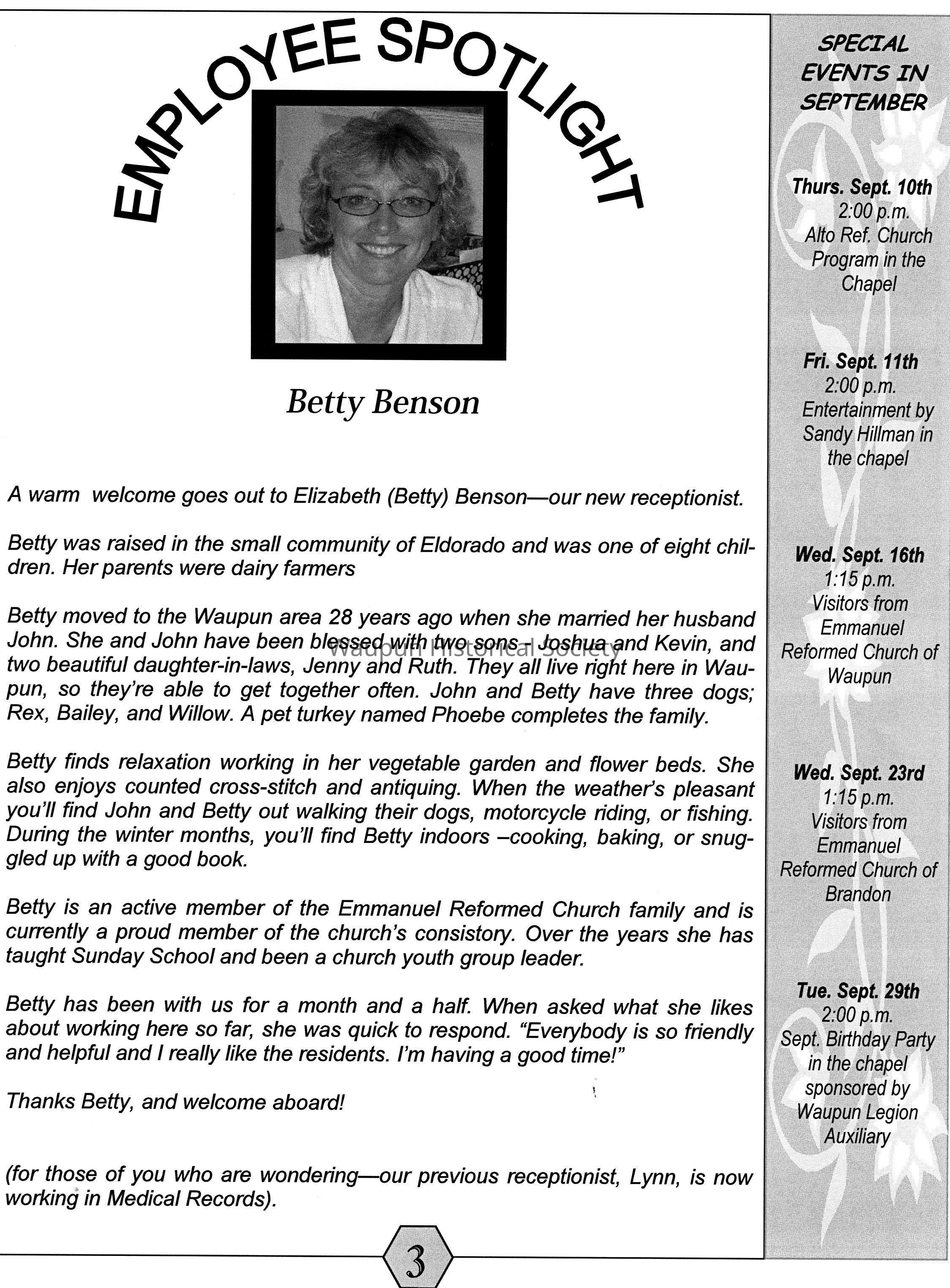 A warm welcome goes out to Elizabeth (Betty) Benson—our new receptionist.