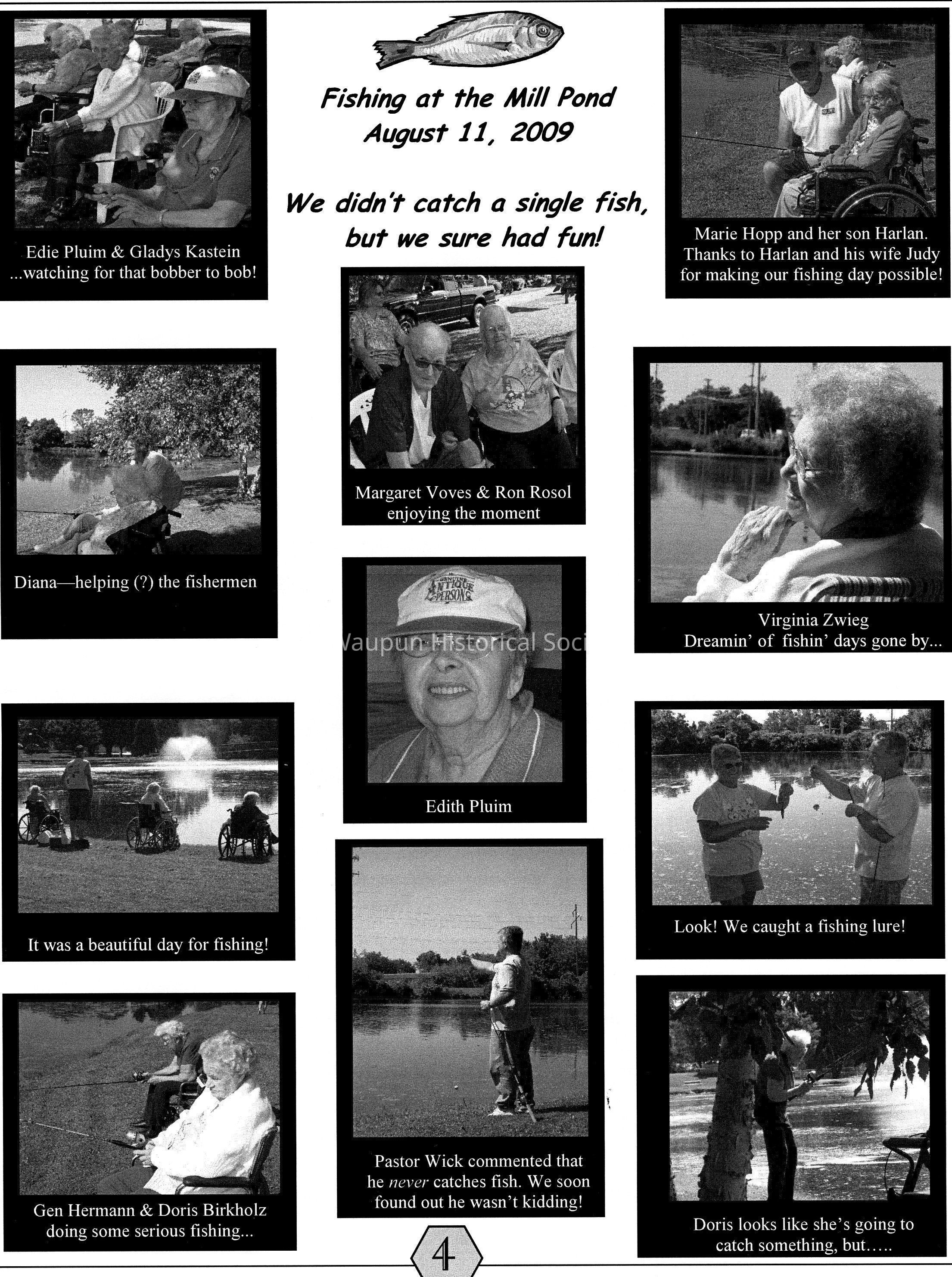 Pictured here are the faithful fisherman, Edie Pluim and Gladys Kastein, Marie Hopp and son Harlan, Diana, Margaret Voves and Ron Rosol, Virginia Zwieg, Edith Pluim, Gen Hermann, Doris Birkholz, Pastor Wick, Doris.