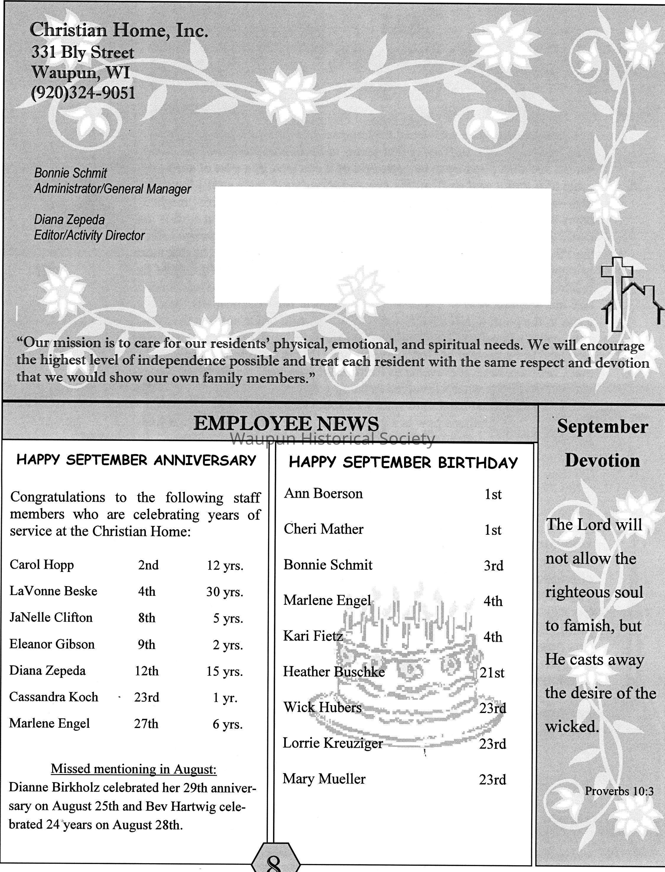 The Christian Home & Rehabilitation Center, Inc. 331 Bly St., Waupun, WI. 53963 (920)324-9051
