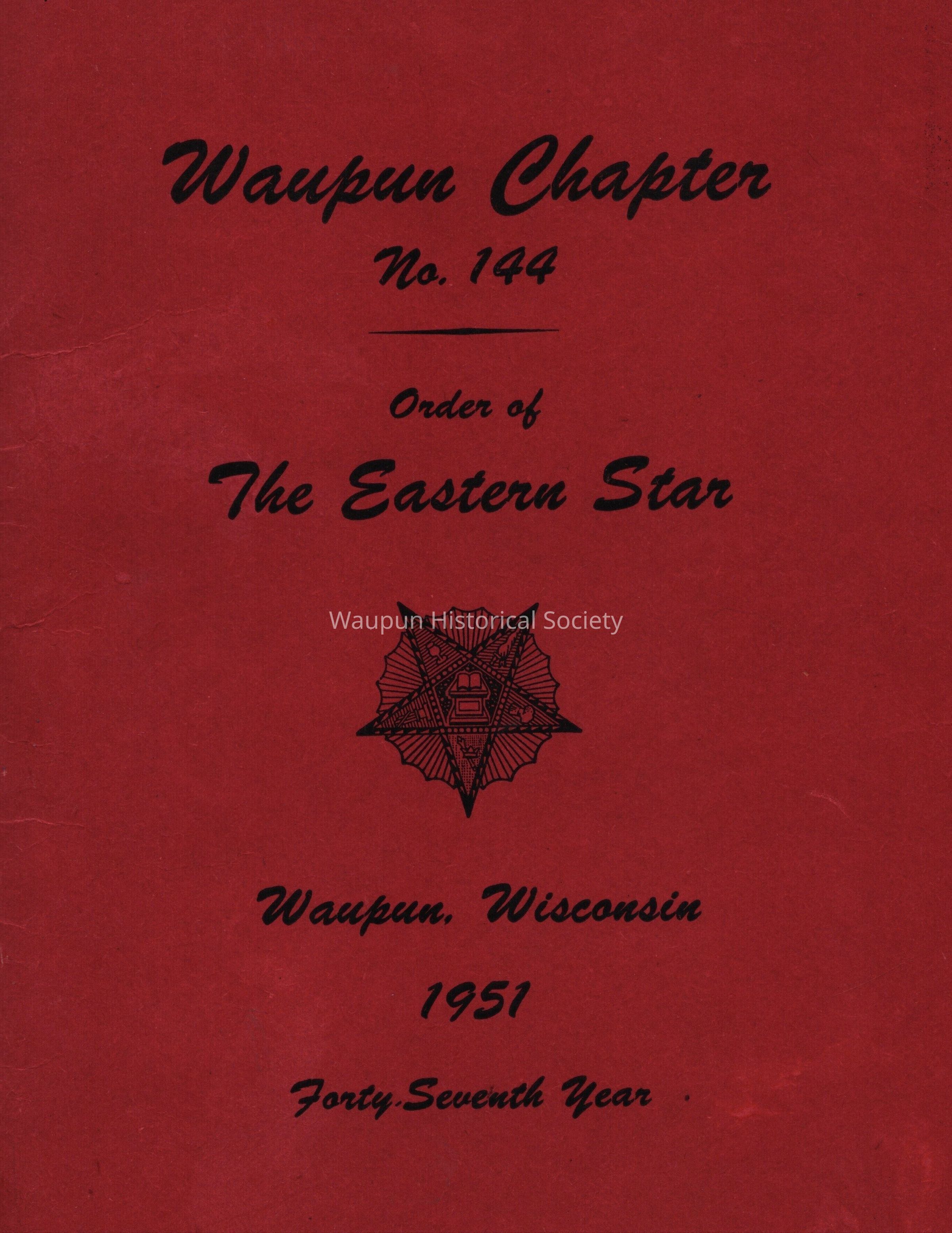 Program, Order of Eastern Star, Waupun Chapter #144, 1951Acquisition