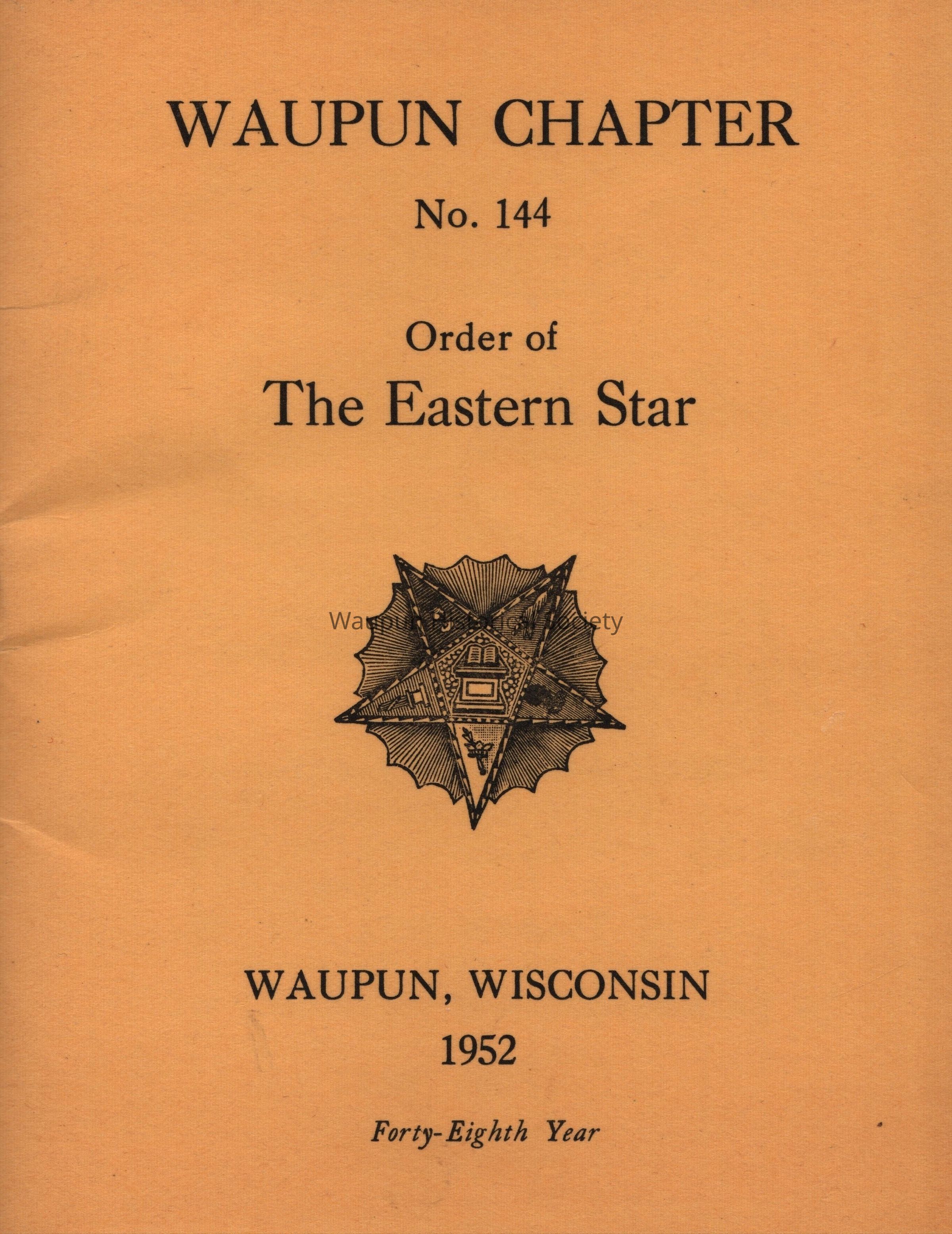 Program, Order of Eastern Star, Waupun Chapter #144, 1952Acquisition