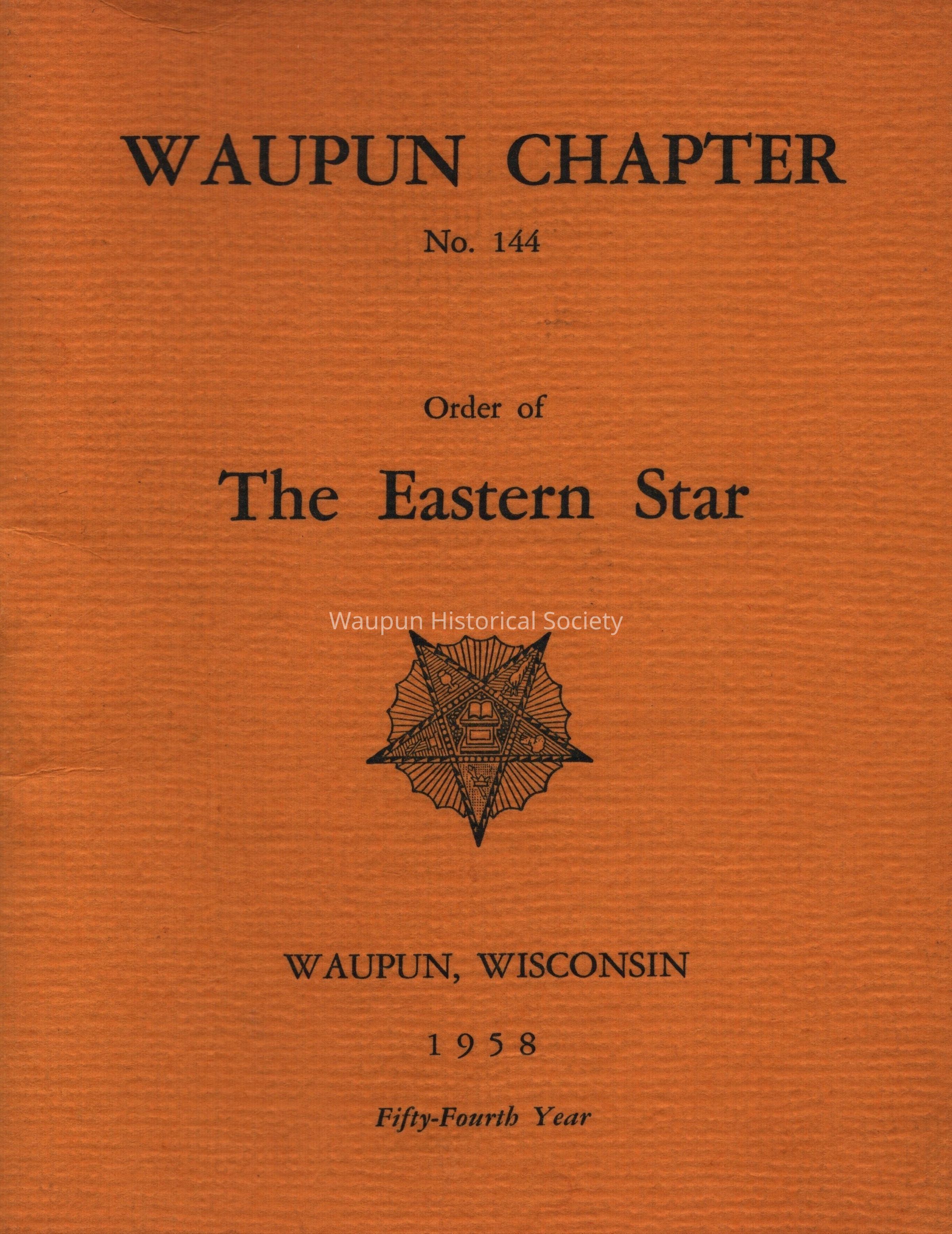 Program, Order of Eastern Star, Waupun Chapter #144, 1958Acquisition