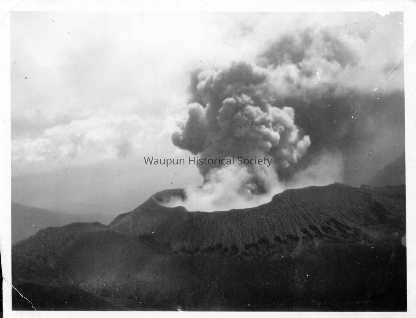 Mr. Walter Riel was a Sergeant with the 38th Photo Reconnaissance Squadron, 13th Air Force from 1942-1946. The Riel Collection is a series of photos that were collected by Mr. Riel during this time. This photo shows a volcano in the Halmaheras.Acquisition