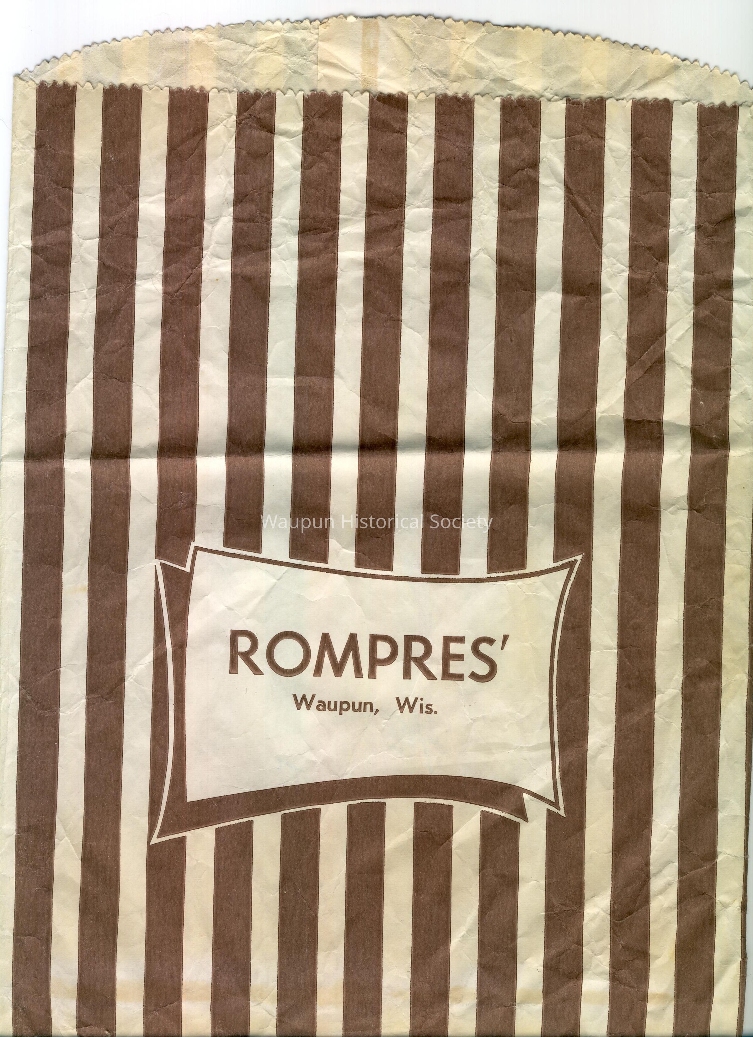 Striped bag from Rompres', Waupun, WI No date.