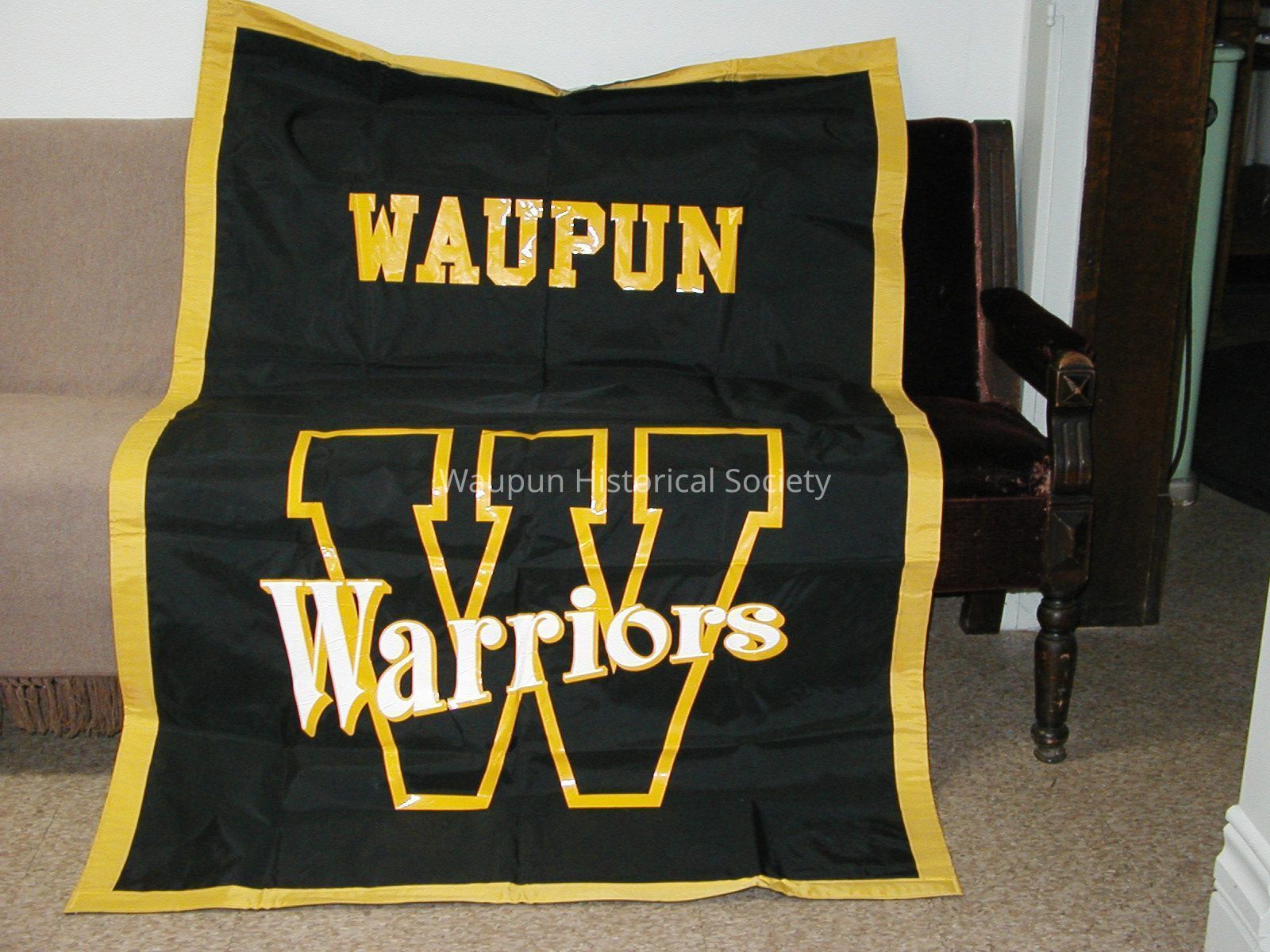 Waupun School Sports Banner used as a wallhanging usually in the school gym or on other walls in the school.Acquisition