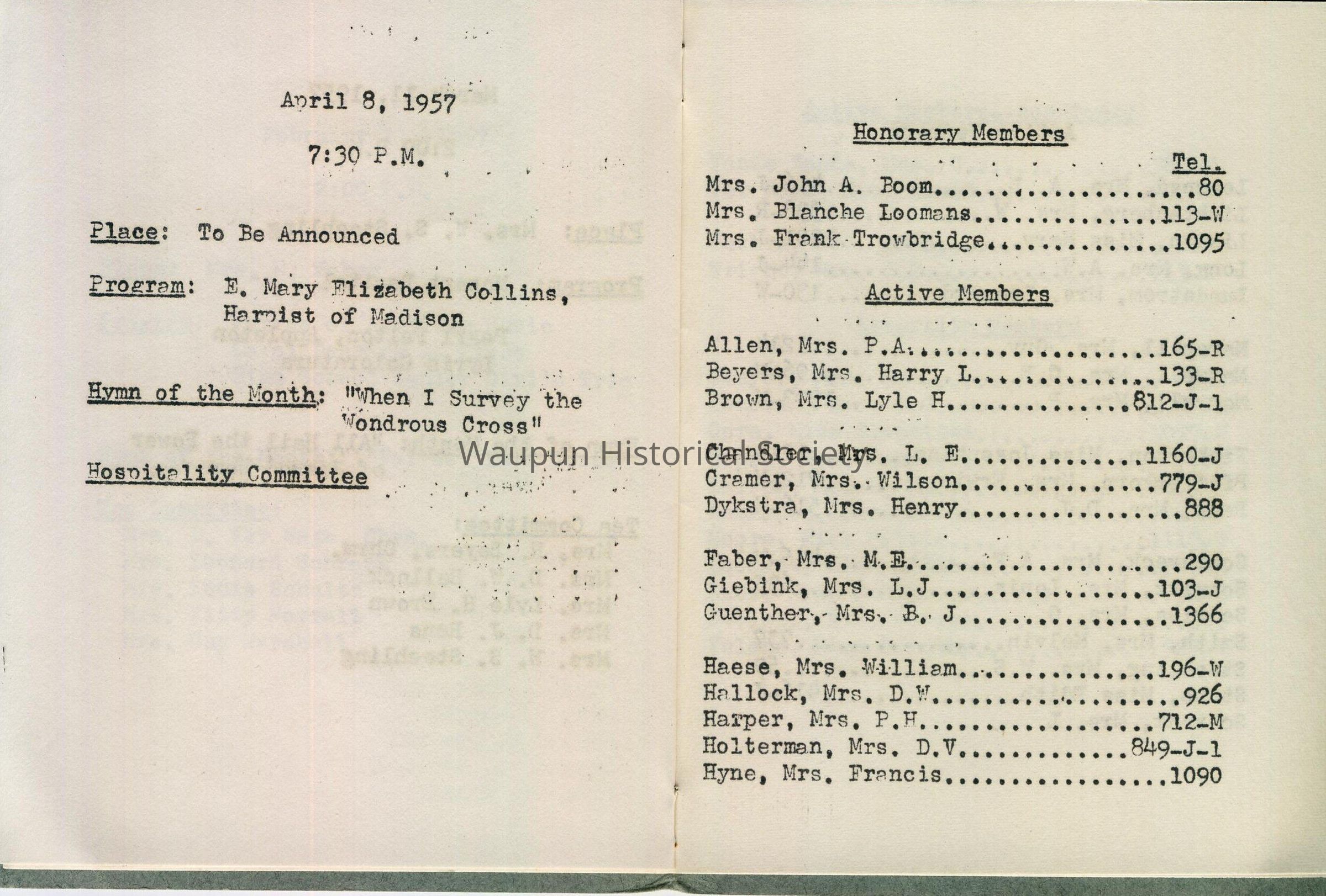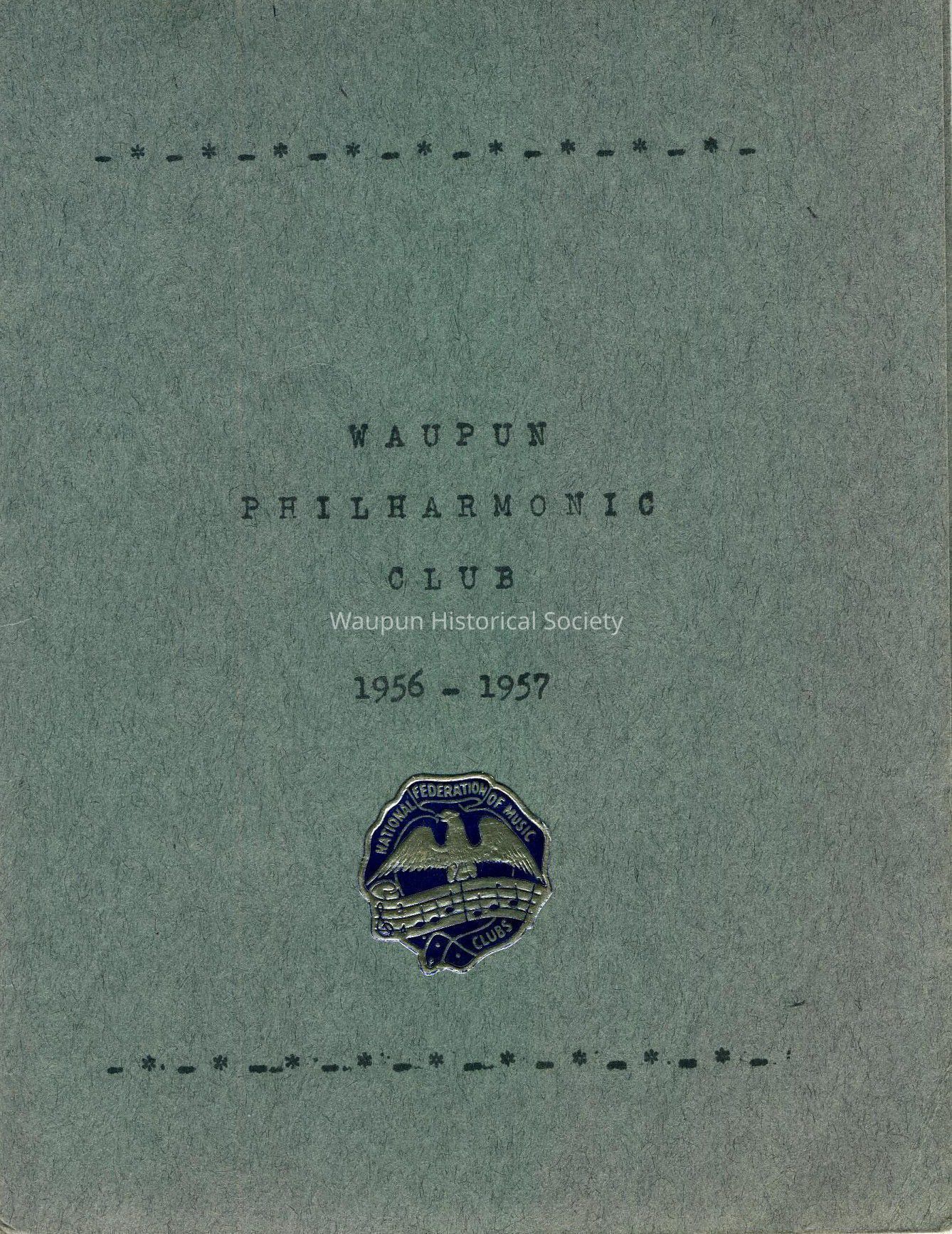 Waupun Philharmonic Club 1956-1957 membership booklet. Stamped with National Federation of Music Clubs.