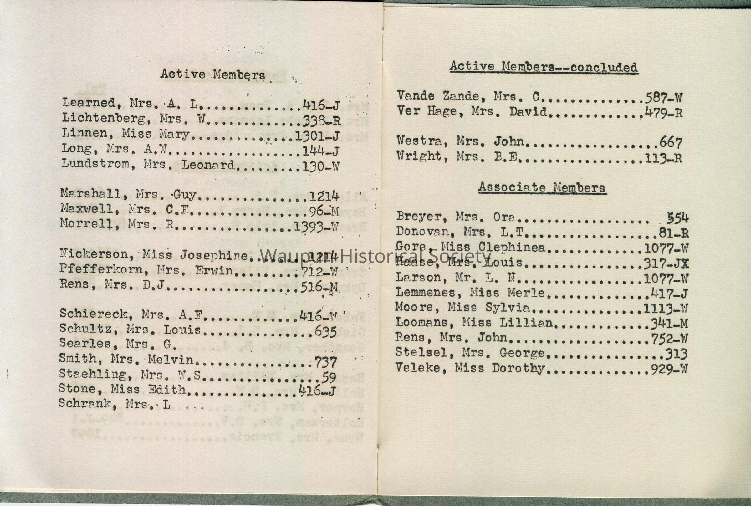 Honorary Members: Mrs. John A. Boom, Mrs. Blanche Loomans, Mrs. Frank Trowbridge [Agatha, husband was an insurance agent].