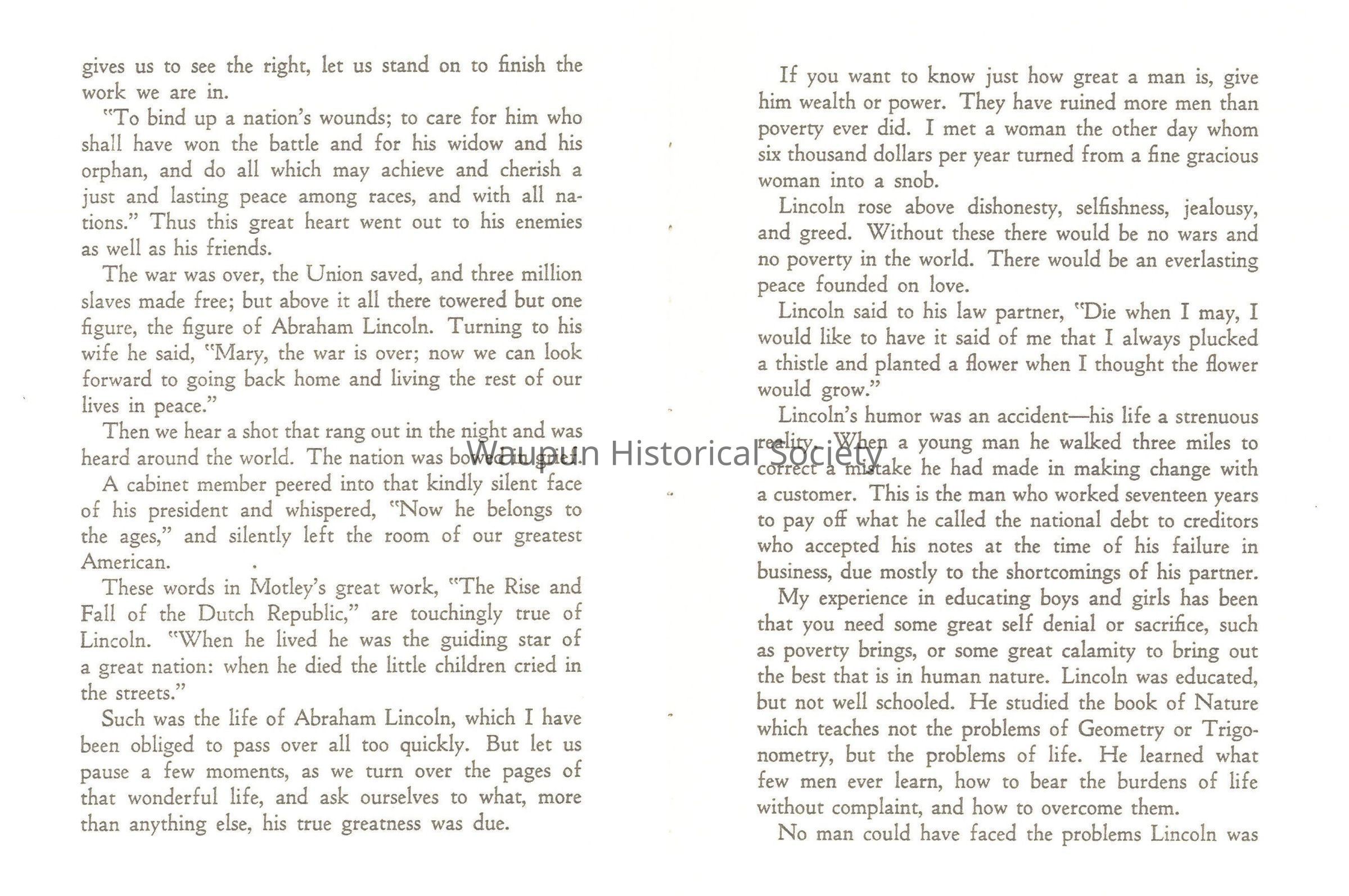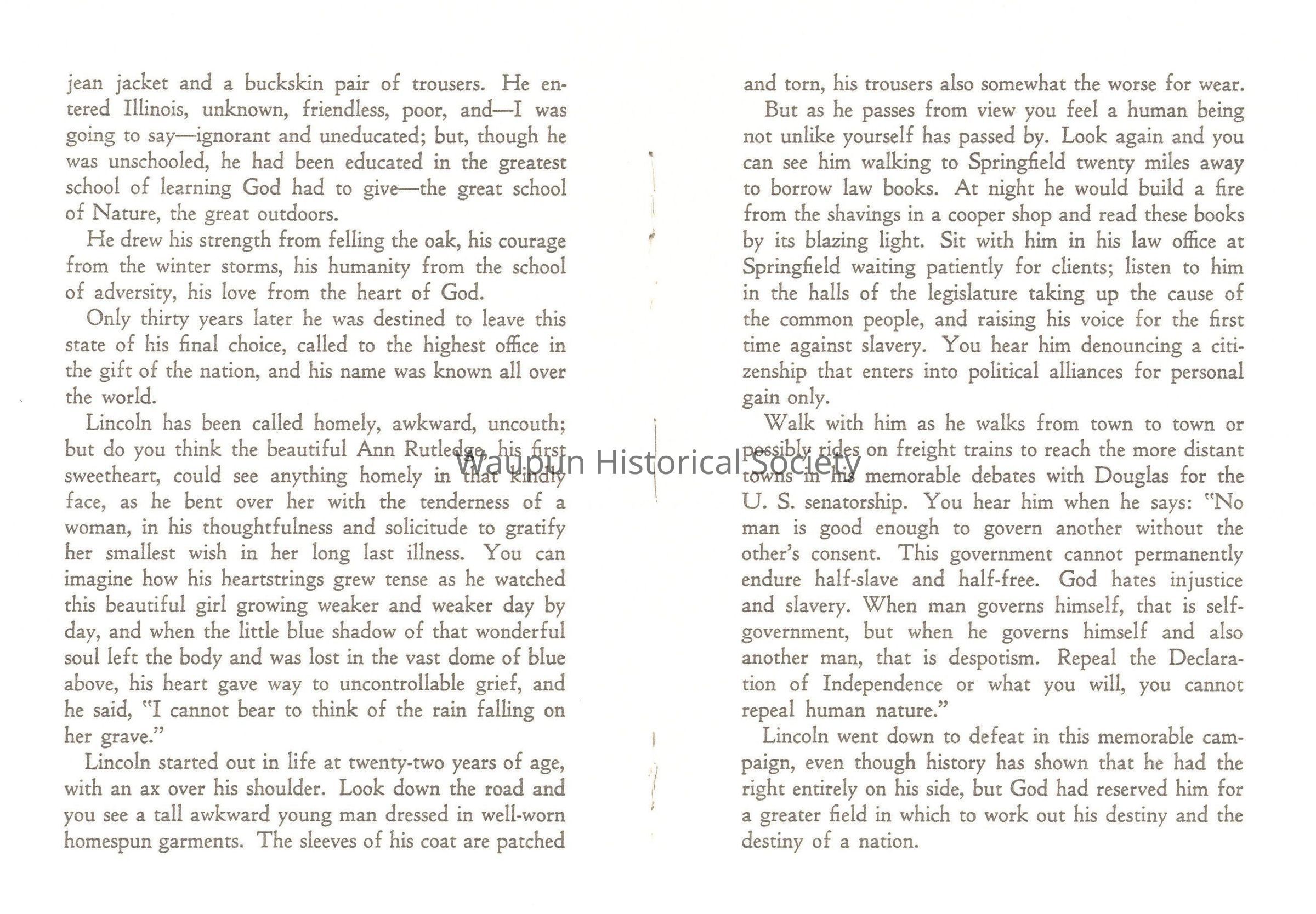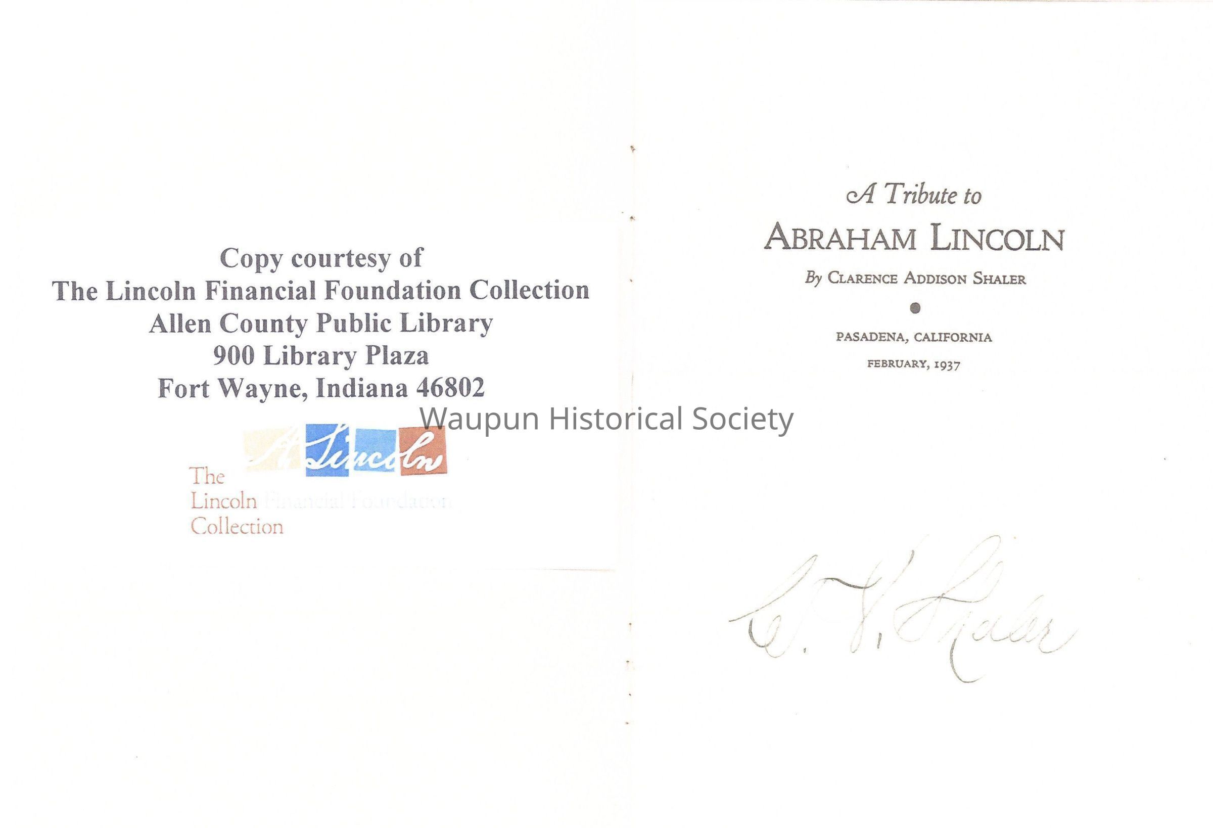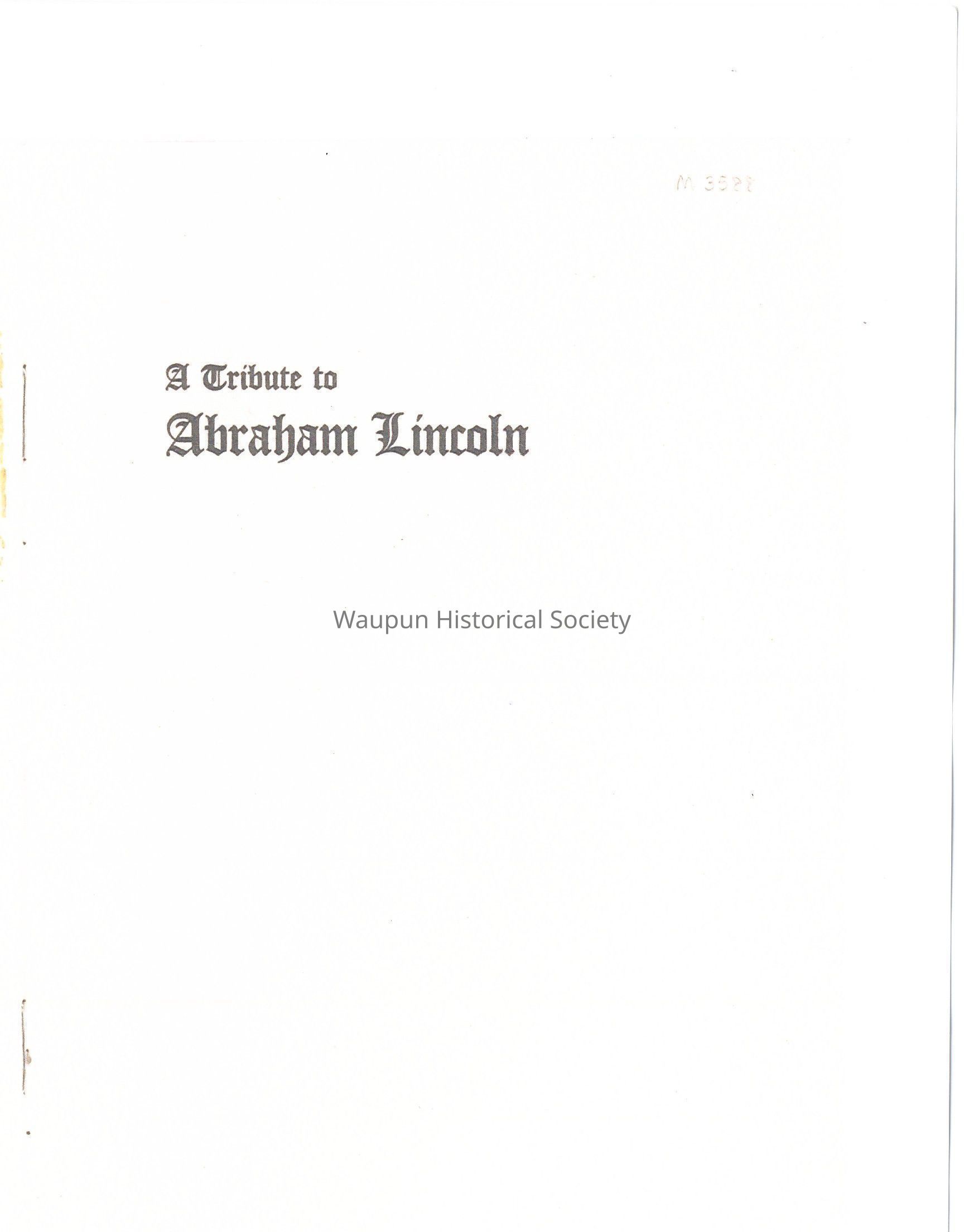 Copy of a book, A Tribute to Abraham Lincoln from the Allen County Public Library, Indiana, copied for Paul Nelson.Acquisition