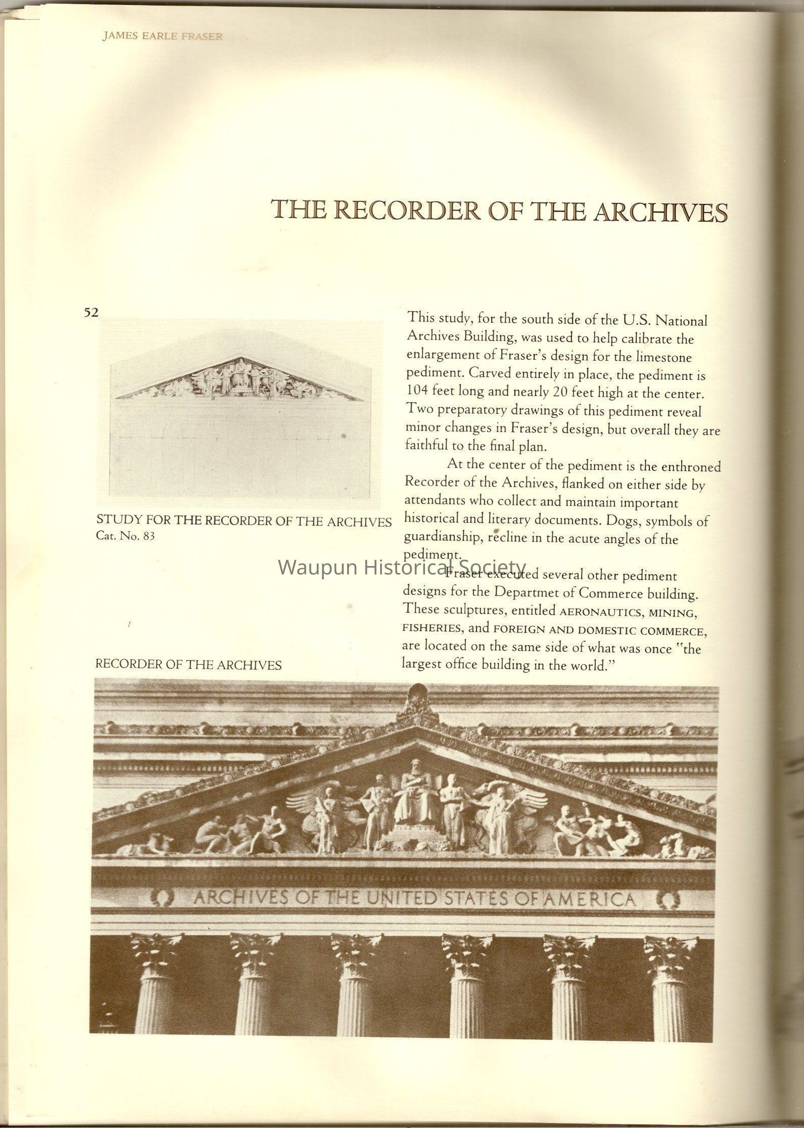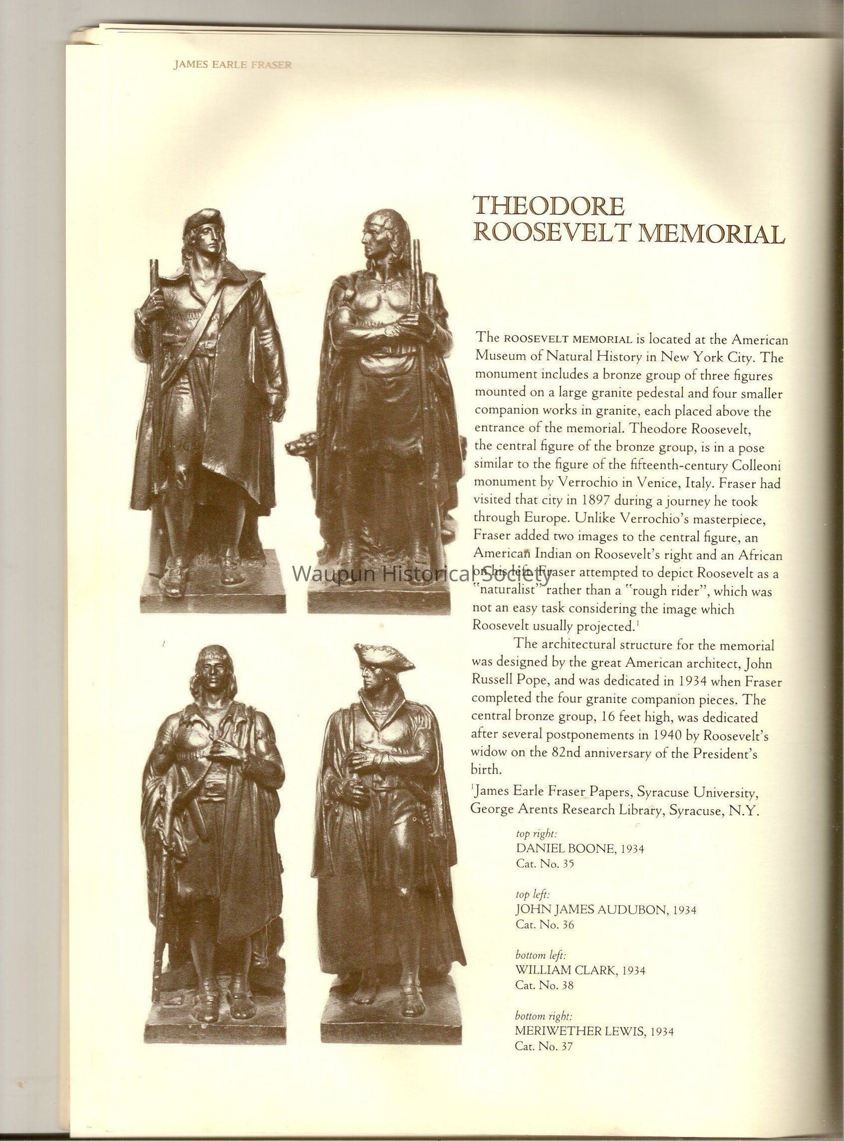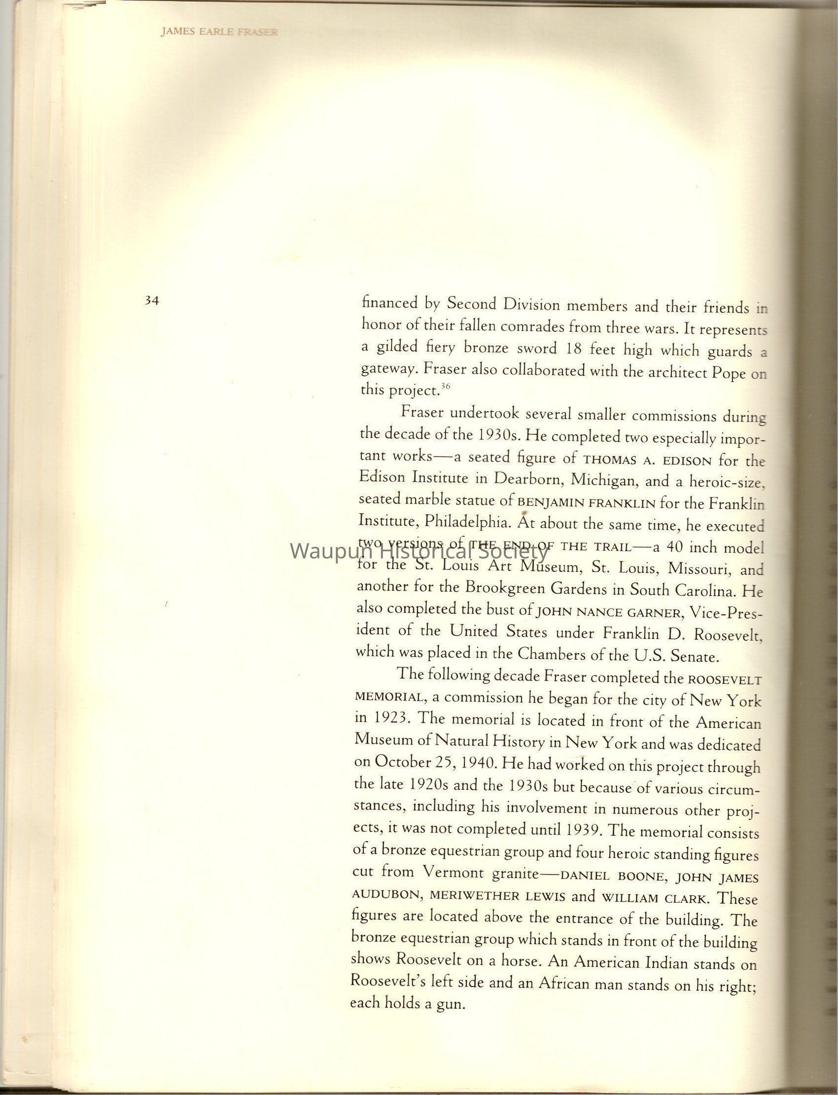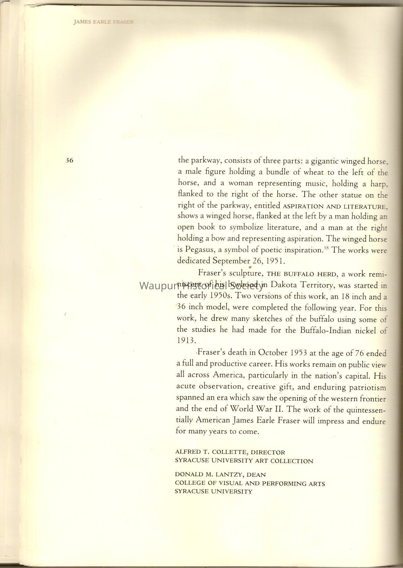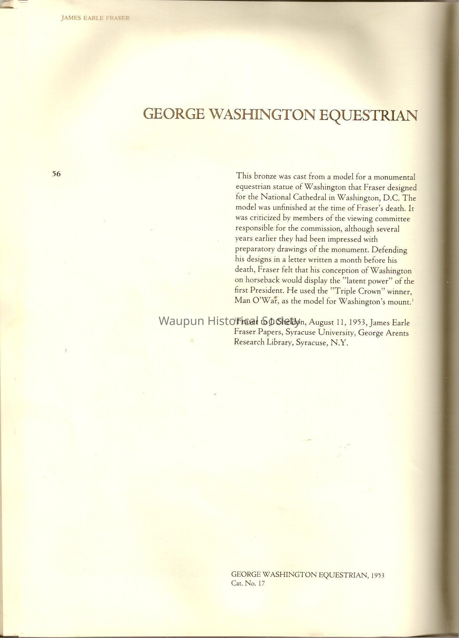 A Book of James, Earle Fraser is a American sculptor whose name was seldom associated with the many outstandinding public monuments and other work which are seen every day by millions of people in Washington D.C., New York and other city thought out the united states.Acquisition