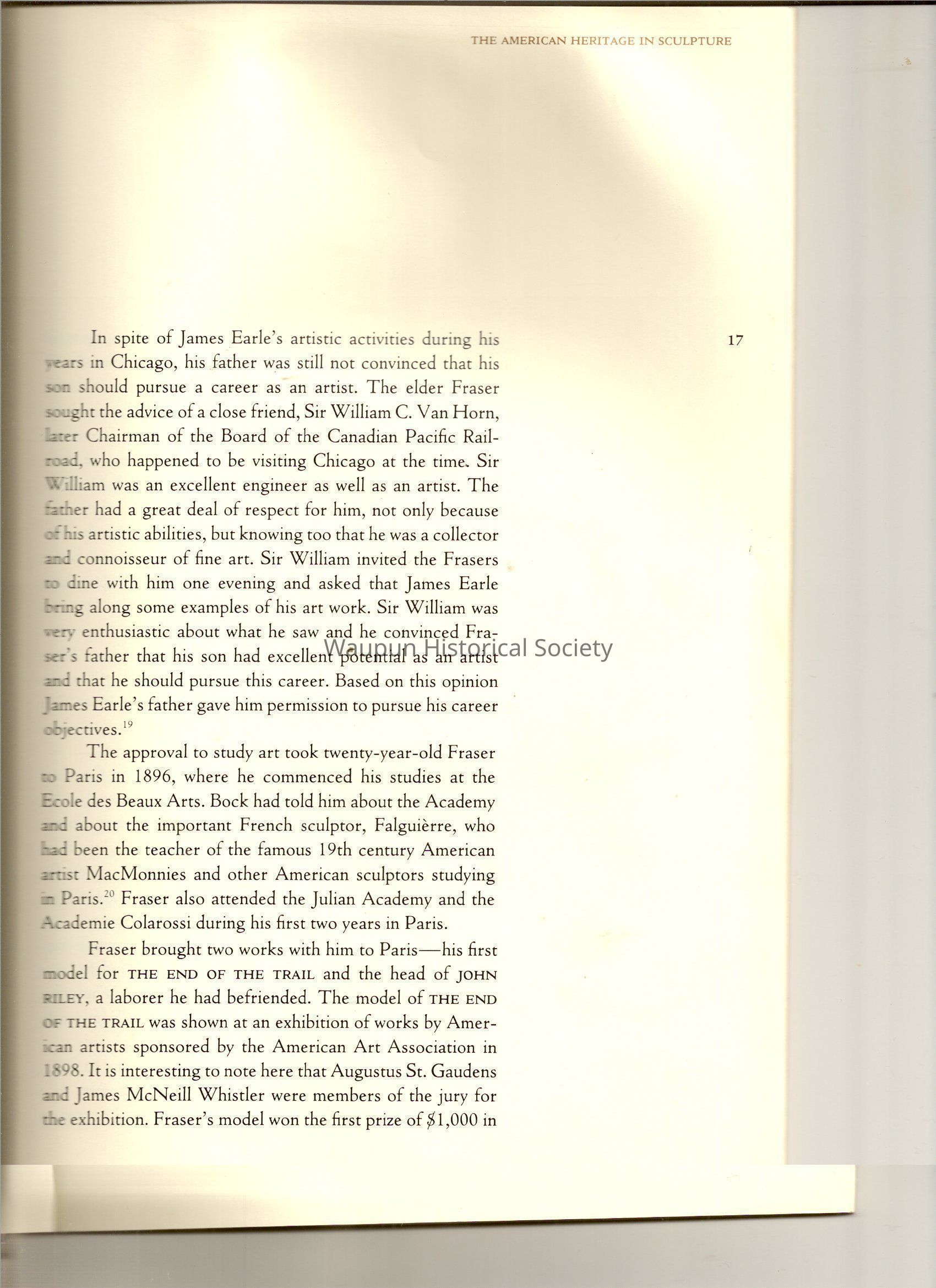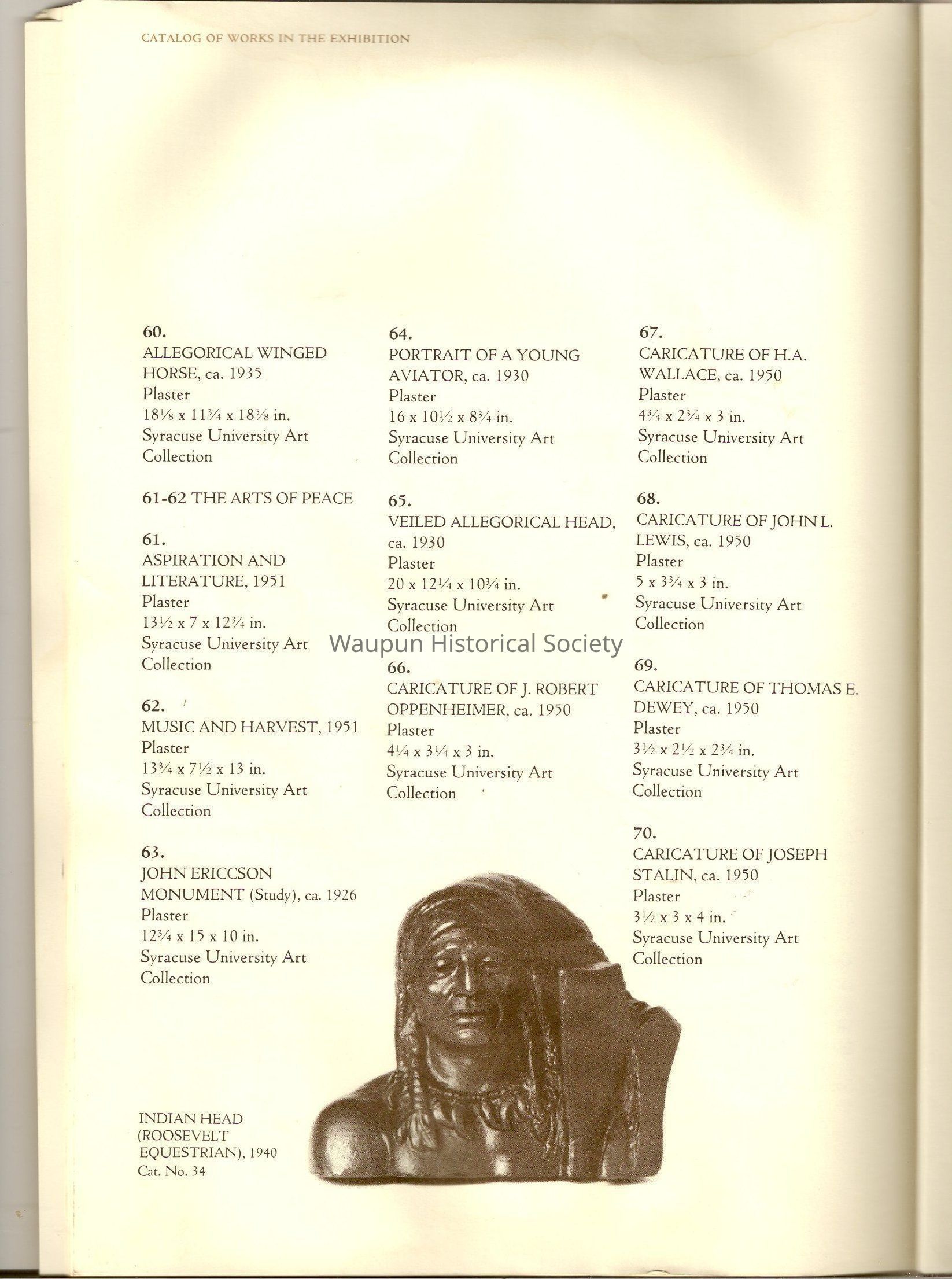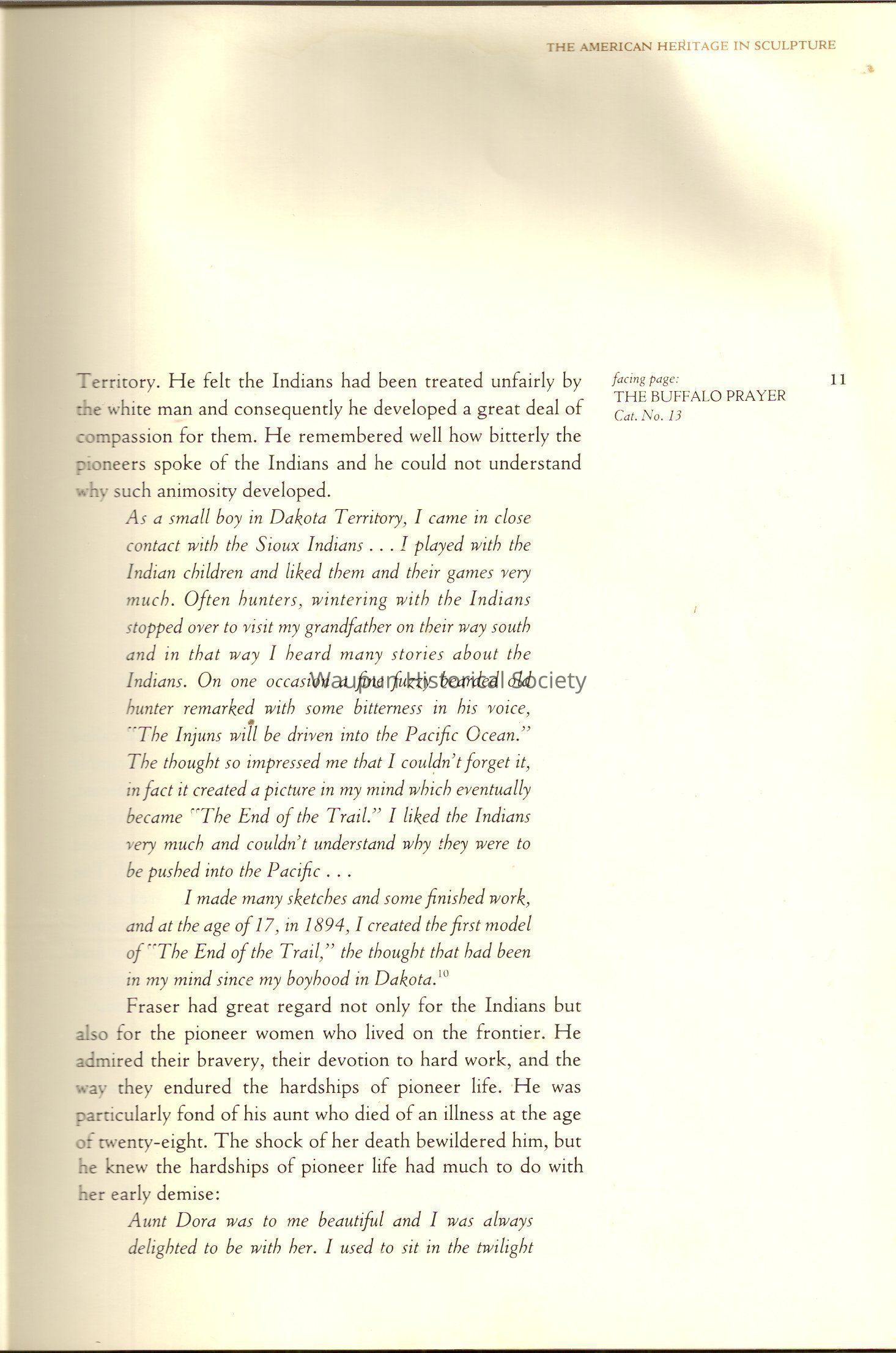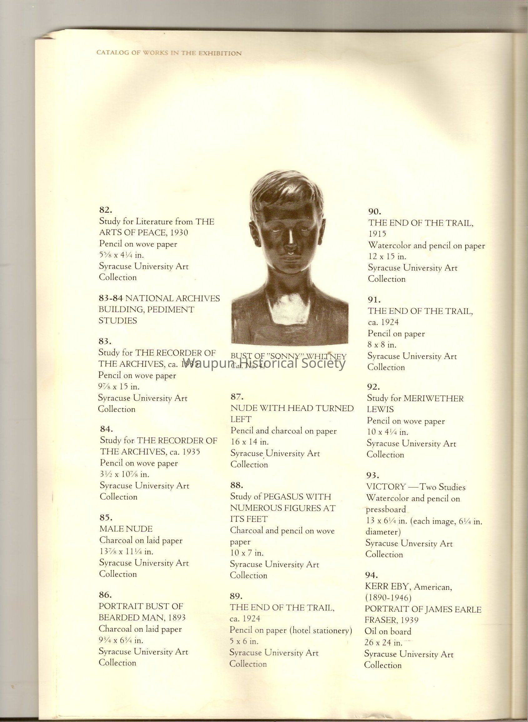 A Book of James, Earle Fraser is a American sculptor whose name was seldom associated with the many outstandinding public monuments and other work which are seen every day by millions of people in Washington D.C., New York and other city thought out the united states.Acquisition