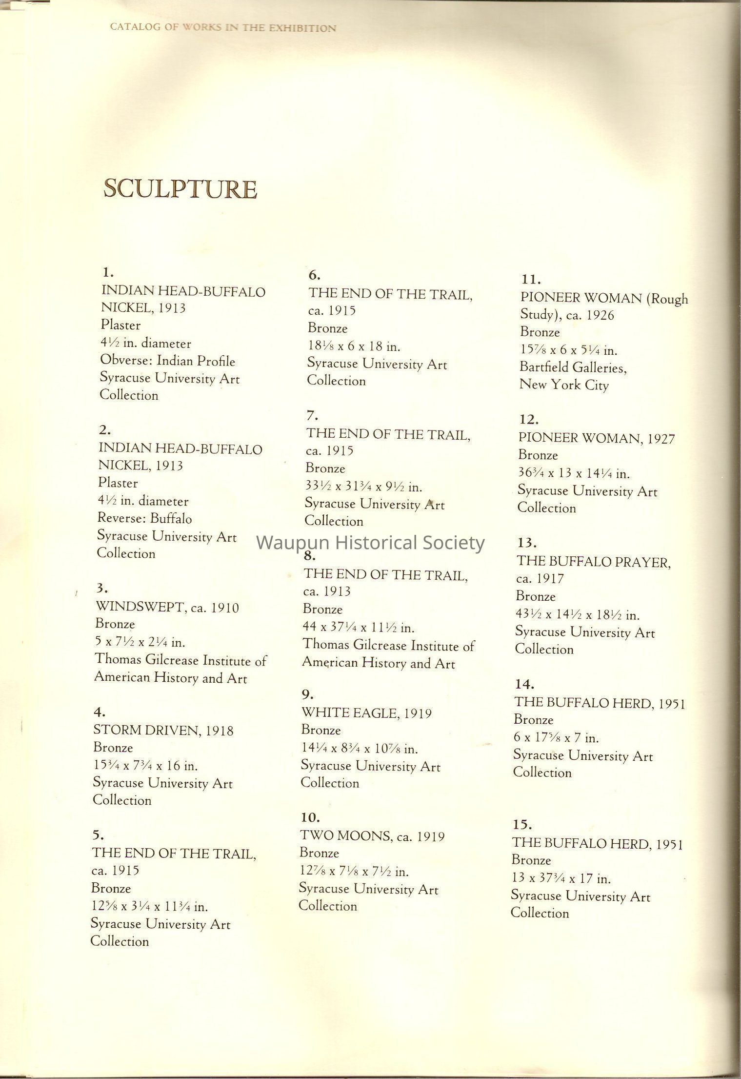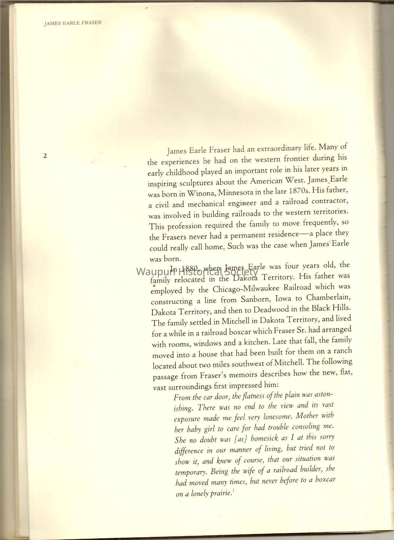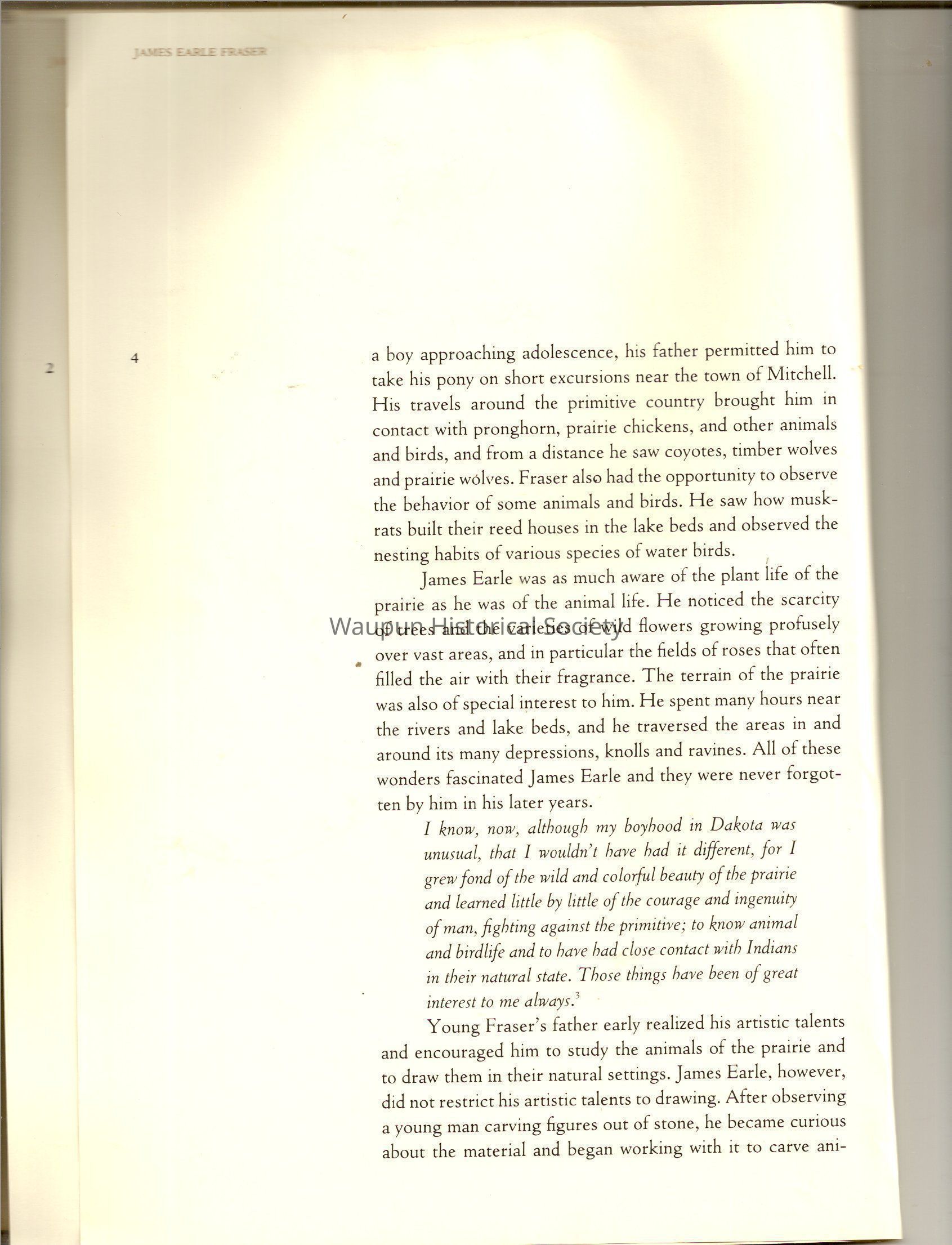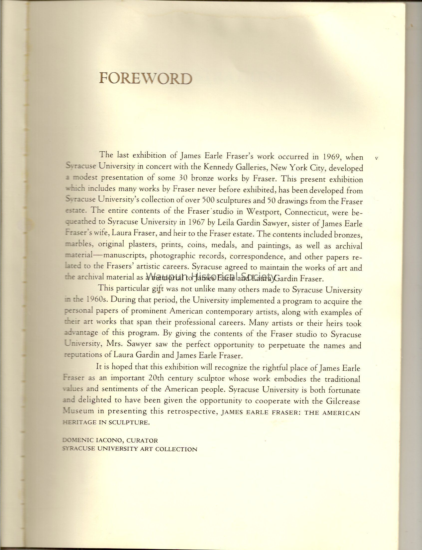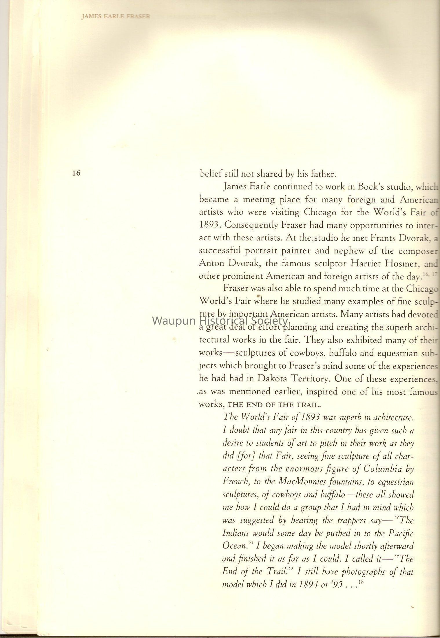 A Book of James, Earle Fraser is a American sculptor whose name was seldom associated with the many outstandinding public monuments and other work which are seen every day by millions of people in Washington D.C., New York and other city thought out the united states.Acquisition