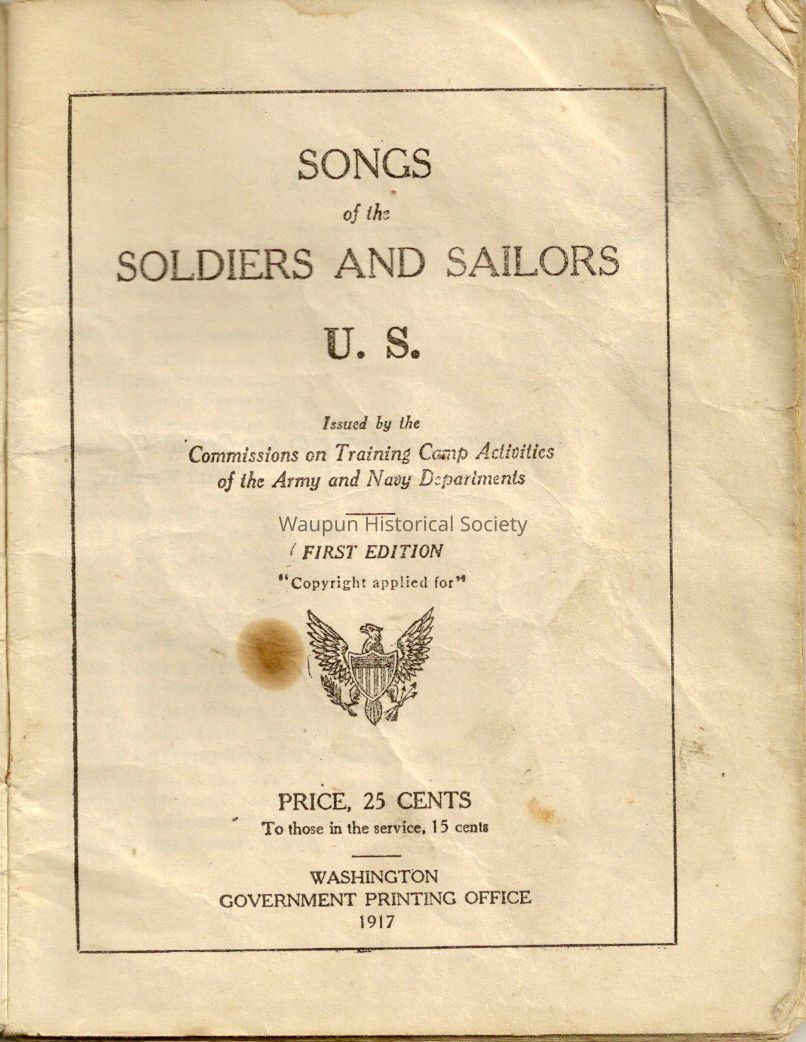 Book, WWI, Songs of the Soldiers and Sailors, U.S., WWIEntry/Object ID