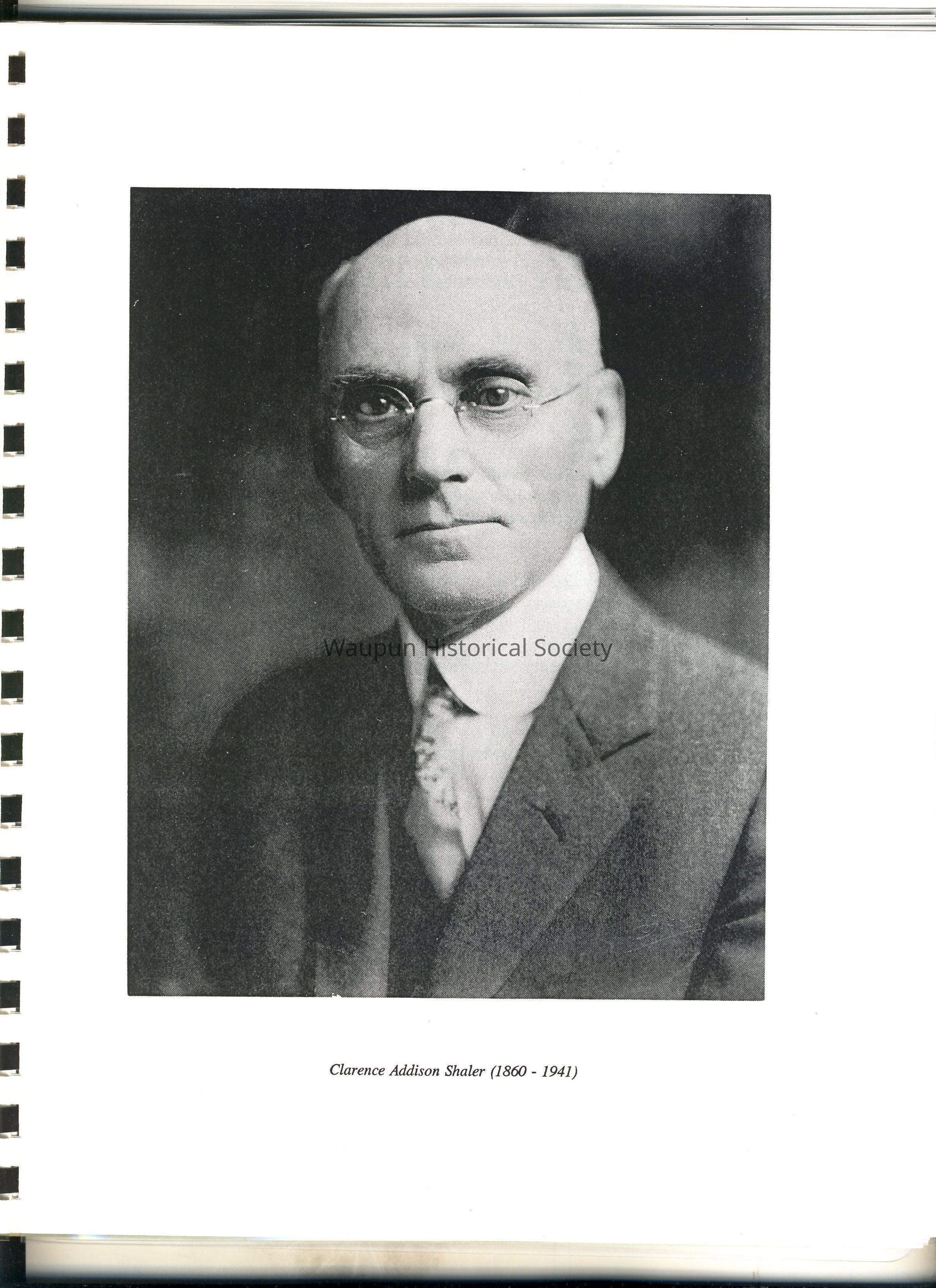 Clarence Addison Shaler, a son of Wisconsin pioneer parents, was born May 29, 1860, five years before President Abraham Lincoln was assassinated. His birthplace was on a homestead farm in the township of Mackford Prairie, Green Lake County, Wisconsin. Born a twin, his siste