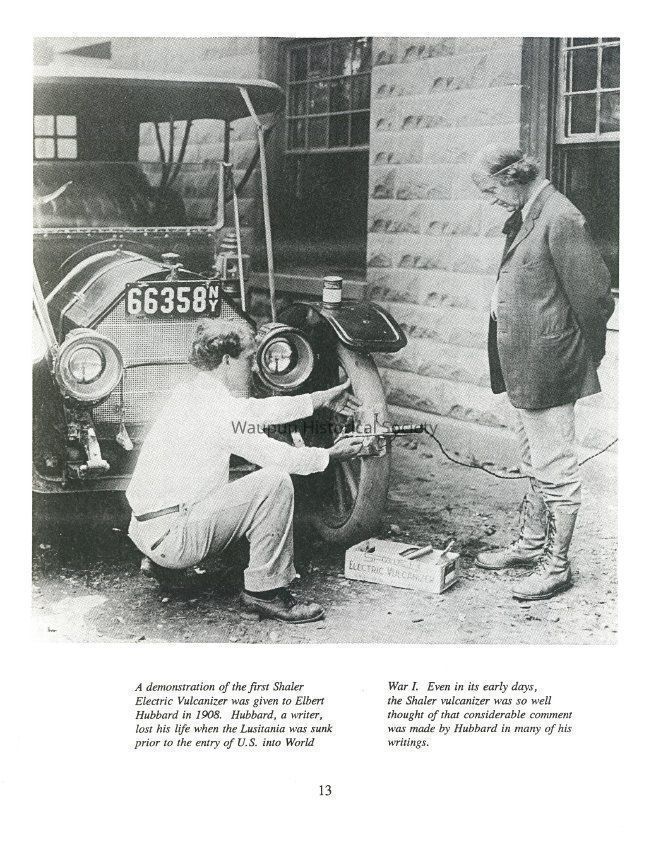 A demonstration of the first Shaler Electric Vulcanizer was given to Elbert Hubbard in 1908. Hubbard, a writer, lost his life when the Lusitania was sunk prior to the entry of U.S. into World War I. Even in its early days, the Shaler vulcanizer was so well thought of that considerable comment was made by Hubbard in many of his writings.