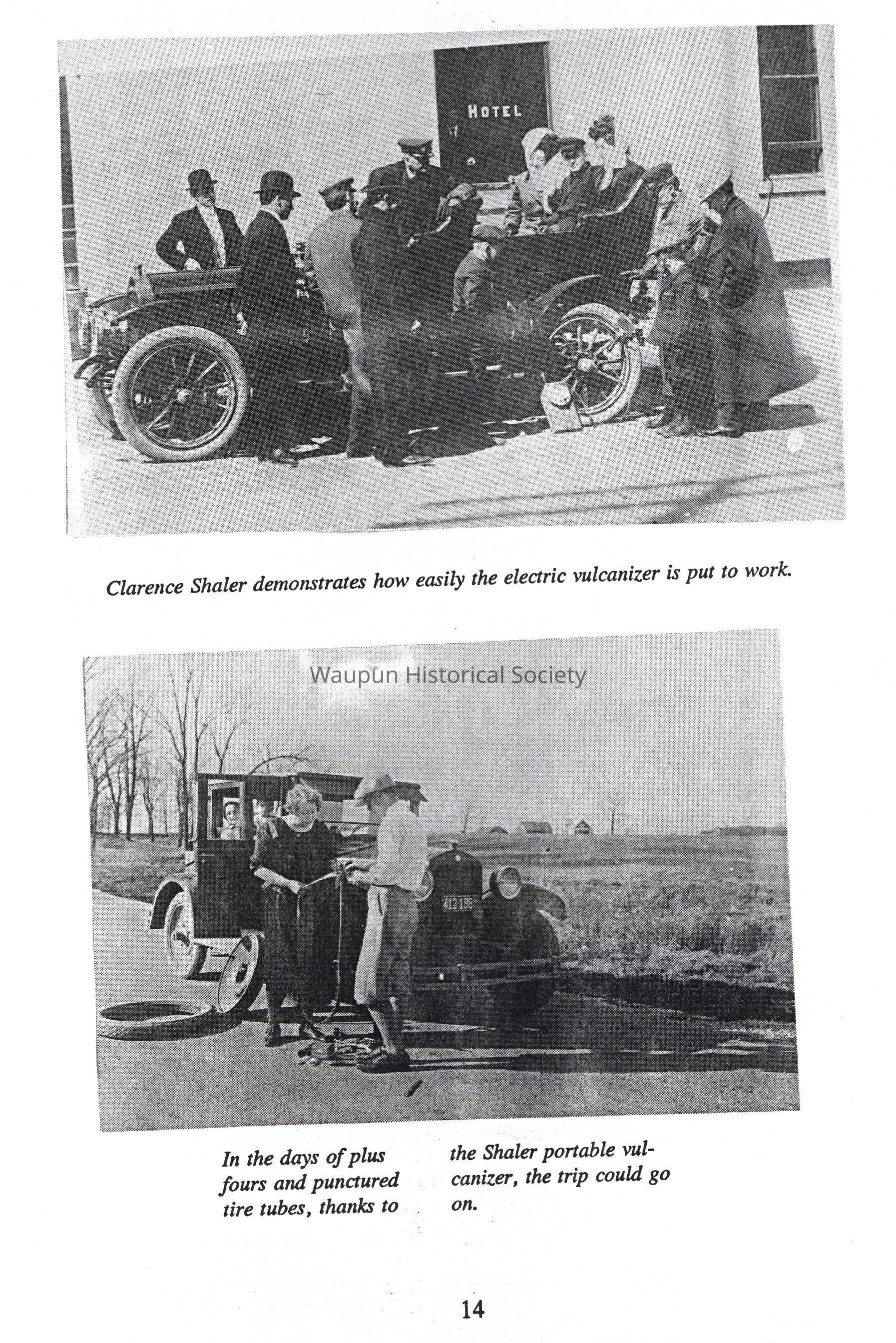 The Shaler Company continued to manufacture electric, steam and alcohol vulcanizers, electro-pads and electro-stoves. They made electric models of the vulcanizers for private garages and steam roadside models (alcohol heated). Their motto was "Seal the Cut and Save the Tire." The models sold for about $15.