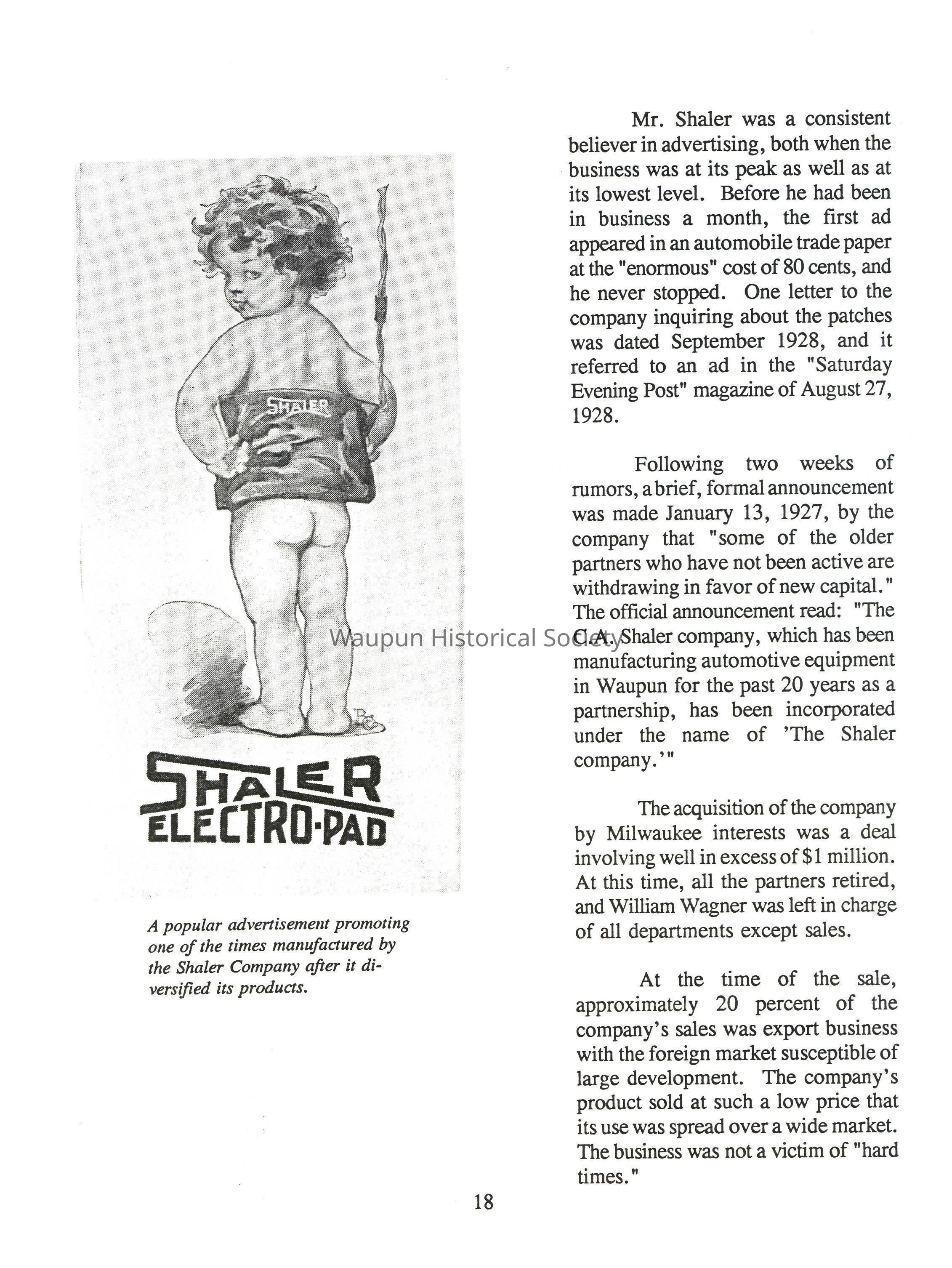 Mr. Shaler was a consistent believer in advertising, both when the business was at its peak as well as at its lowest level. Before he had been in business a month, the first ad appeared in an automobile trade paper at the "enormous" cost of 80 cents, and he never stopped. One letter to the company inquiring about the patches was dated September 1928, and it referred to an ad in the "Saturday Evening Post" magazine of August 27, 1928.