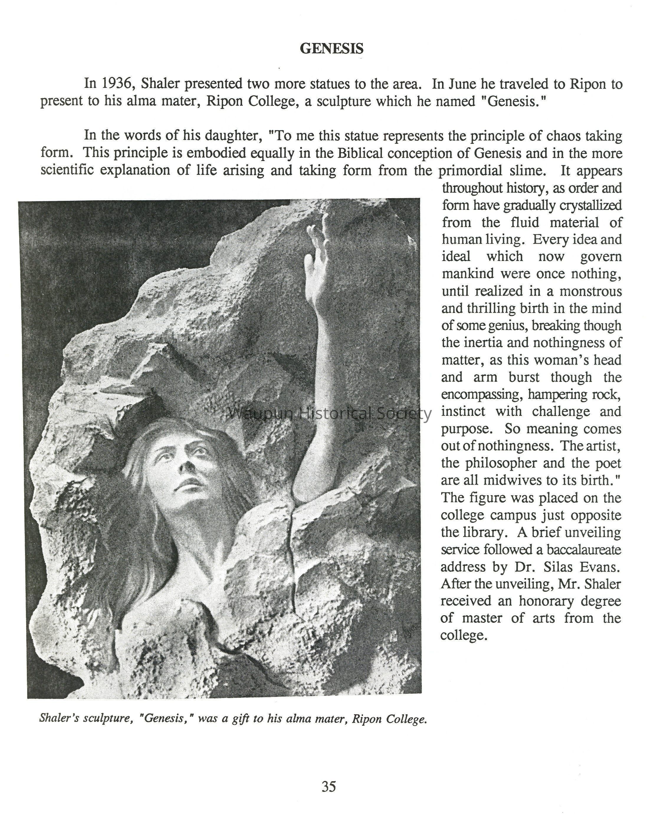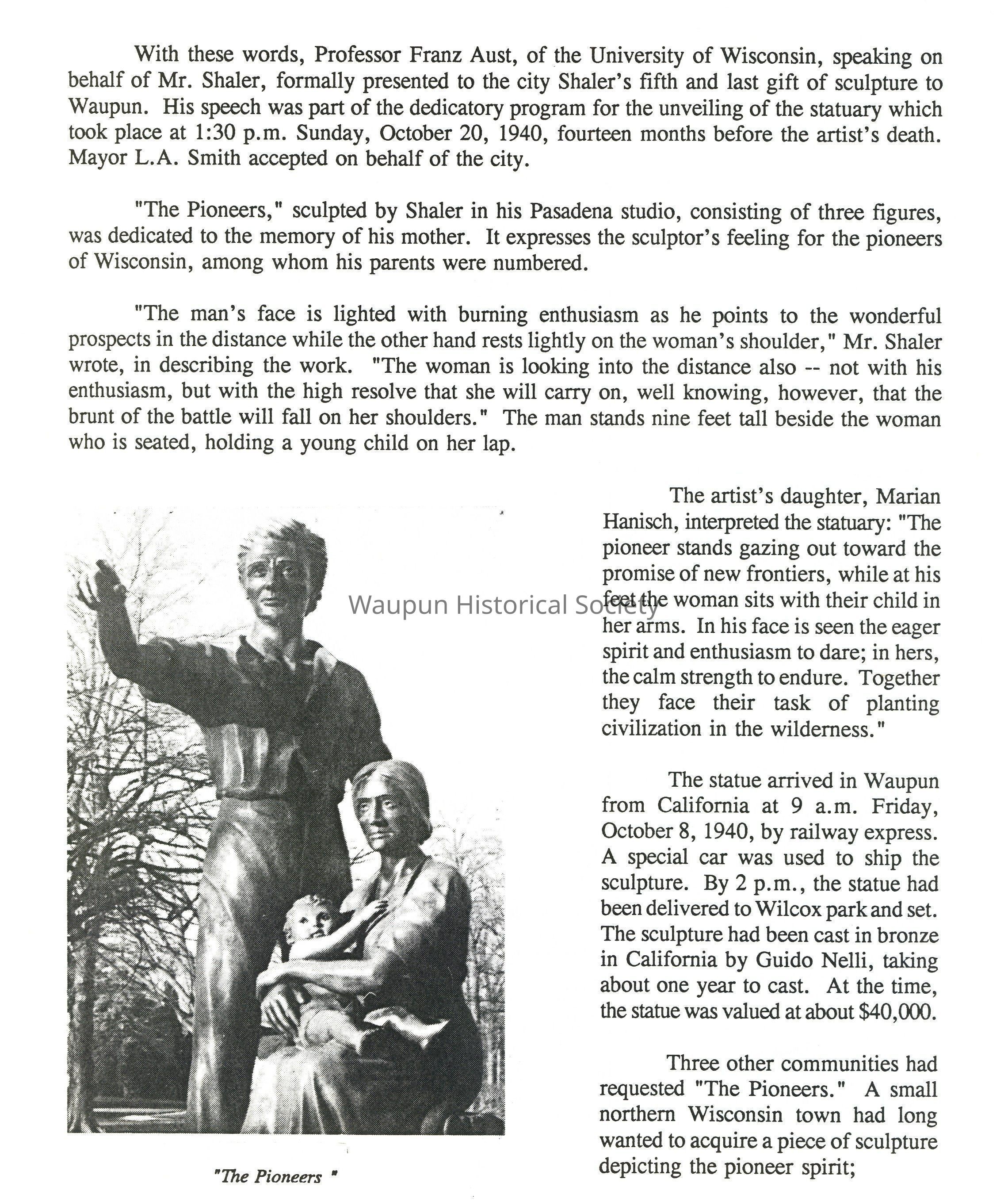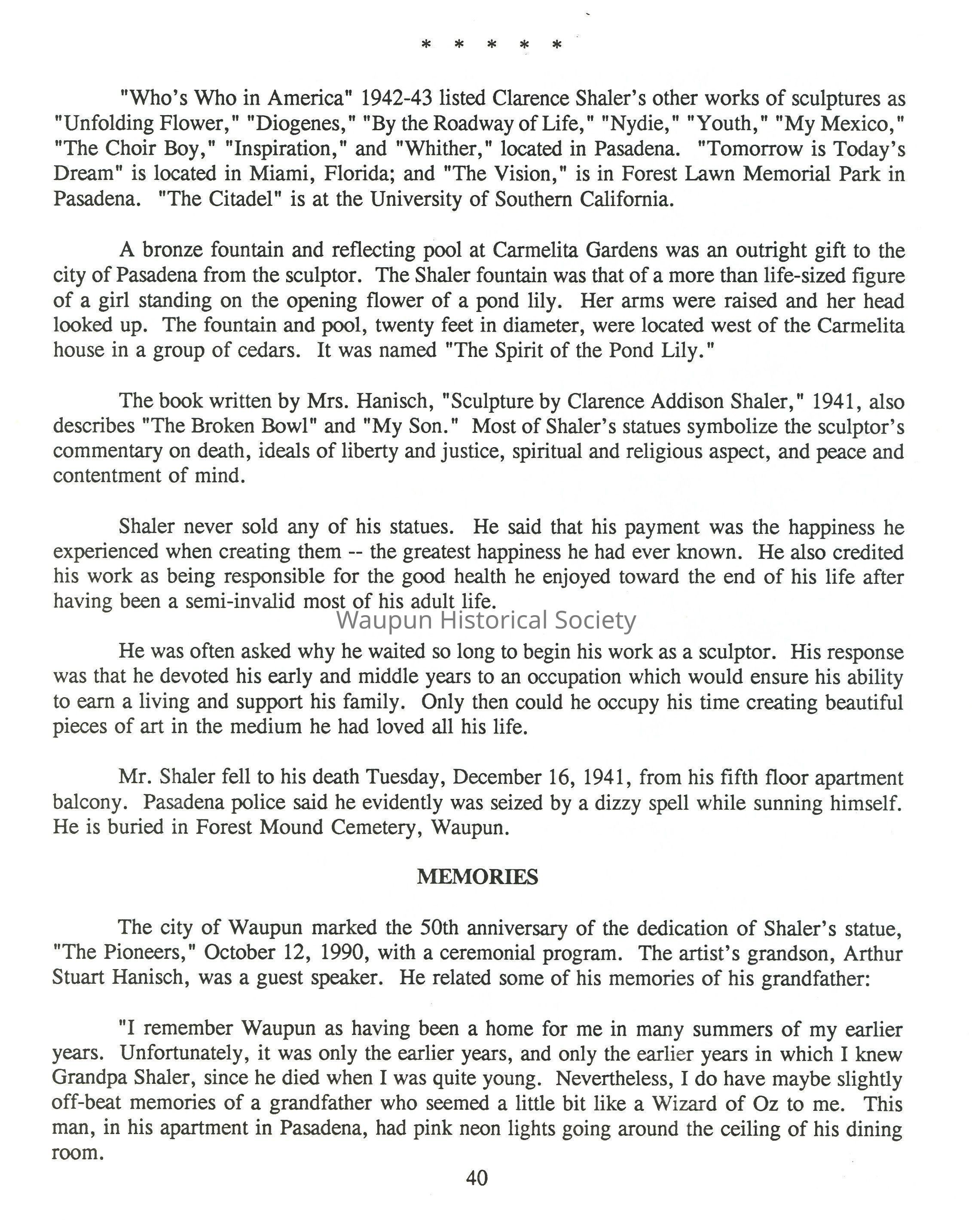 "We became friends instantly and were friends until his death, "Mr. Shaler said. "Since that day in Chicago I have always been interested in art in general and sculpture in particular. But then we did not suspect that my young friend would become one on the greatest sculptors of the nation or that I would become a sculptor myself, after waiting almost 50 years to take up the art seriously."