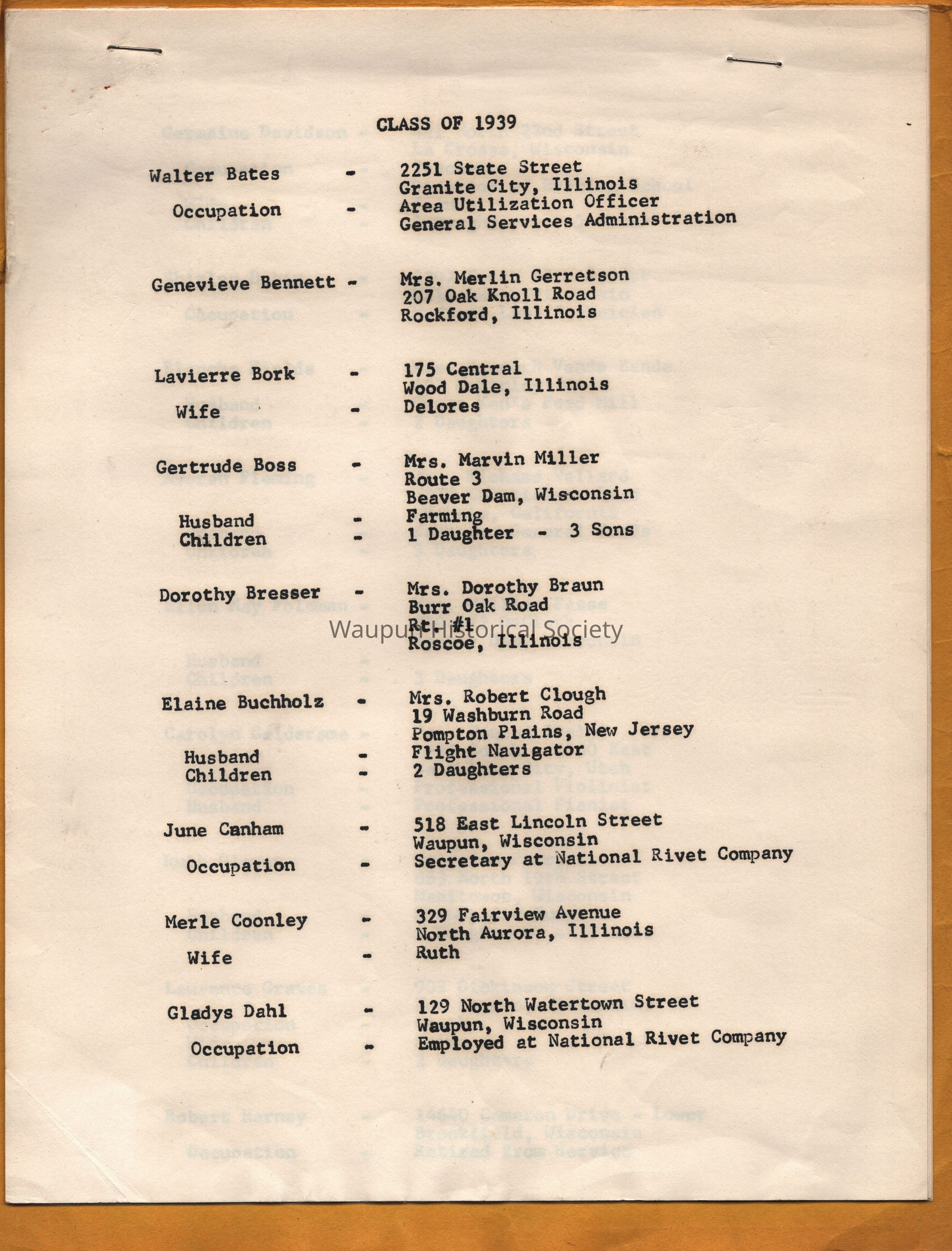 Booklet, Class of 1939, Waupun High School 50th Reunion