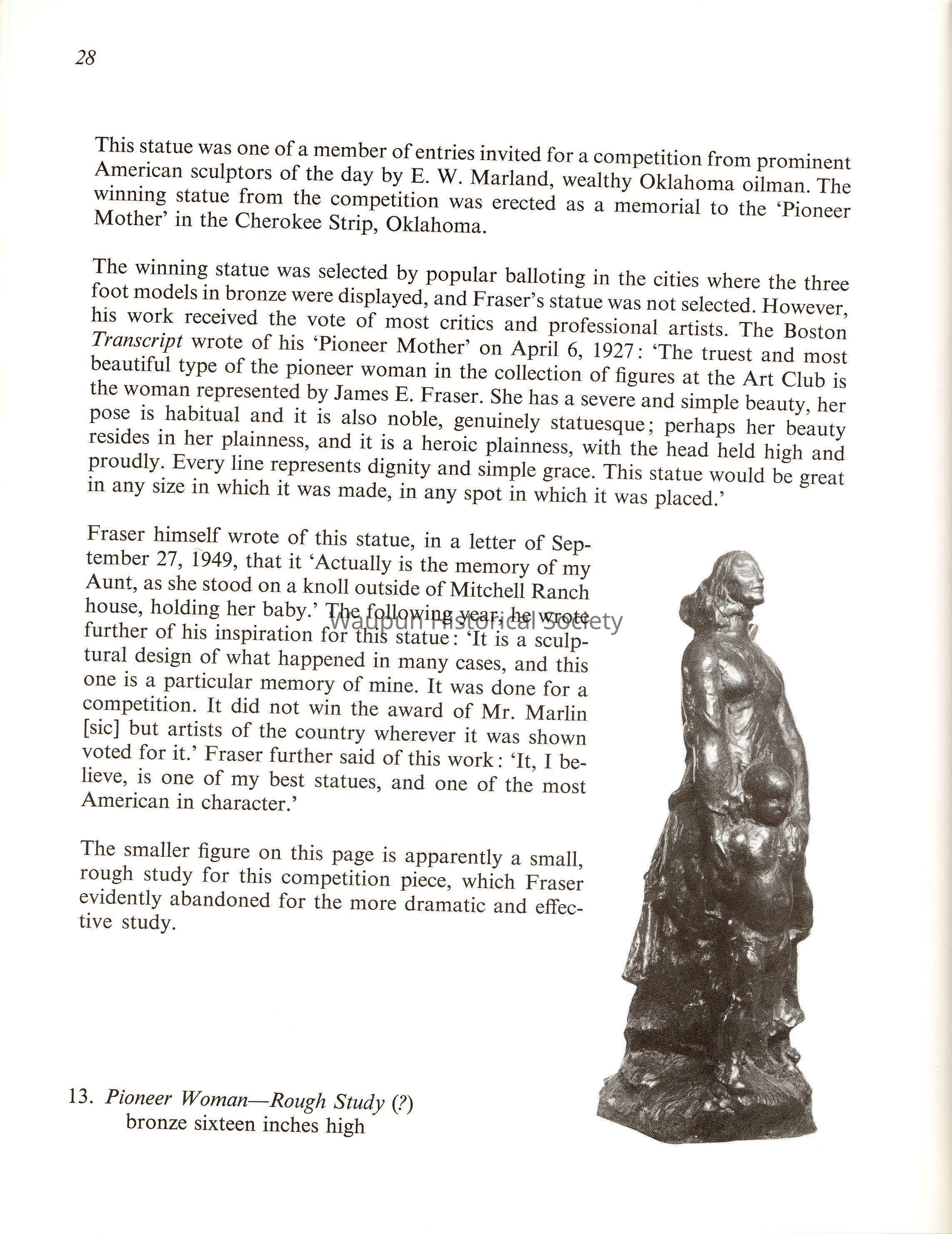 Like Frederic Remington and Charles Russell, Fraser created many extraordinary sculptures drawn from pioneer life on America's vanishing frontier. Unfortunately these pieces remained in the relative obscurity of his studio during his lifetime and for more than a decade after his death. It was not until Syracuse University acquired the artistic contents of the Fraser estate in 1967 that the existence of some of his greatest work became known. Now they are being presented to the public for the first time with this exhibition and catalogue.