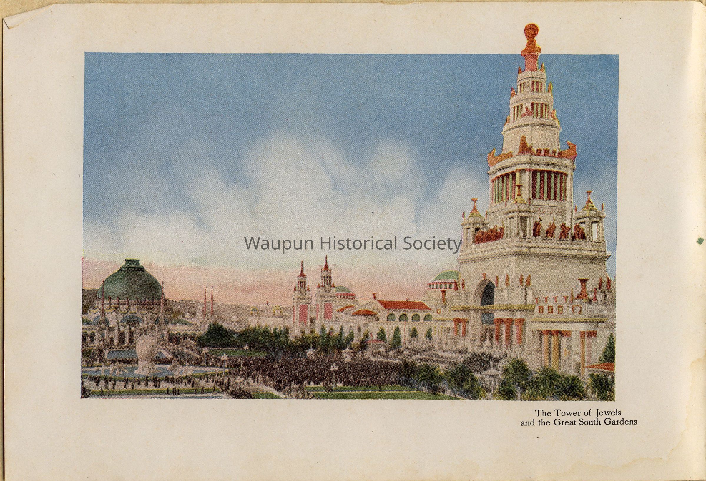 Booklet of the Panama Pacific Exposition. "Colortypes of the Panama Pacific International Exposition at San Francisco 1915. Robert A. Reid, Publisher of Official View Books, San Francisco. Official Publication." Copyright, 1915, by Panama Pacific International Exposition Company." The Panama Pacific exposition was where Mr. Clarence Addison Shaler saw the "End of the Trail" by James Earle Fraser. At some point he decided to buy the statue for Waupun, it was placed in 1929.