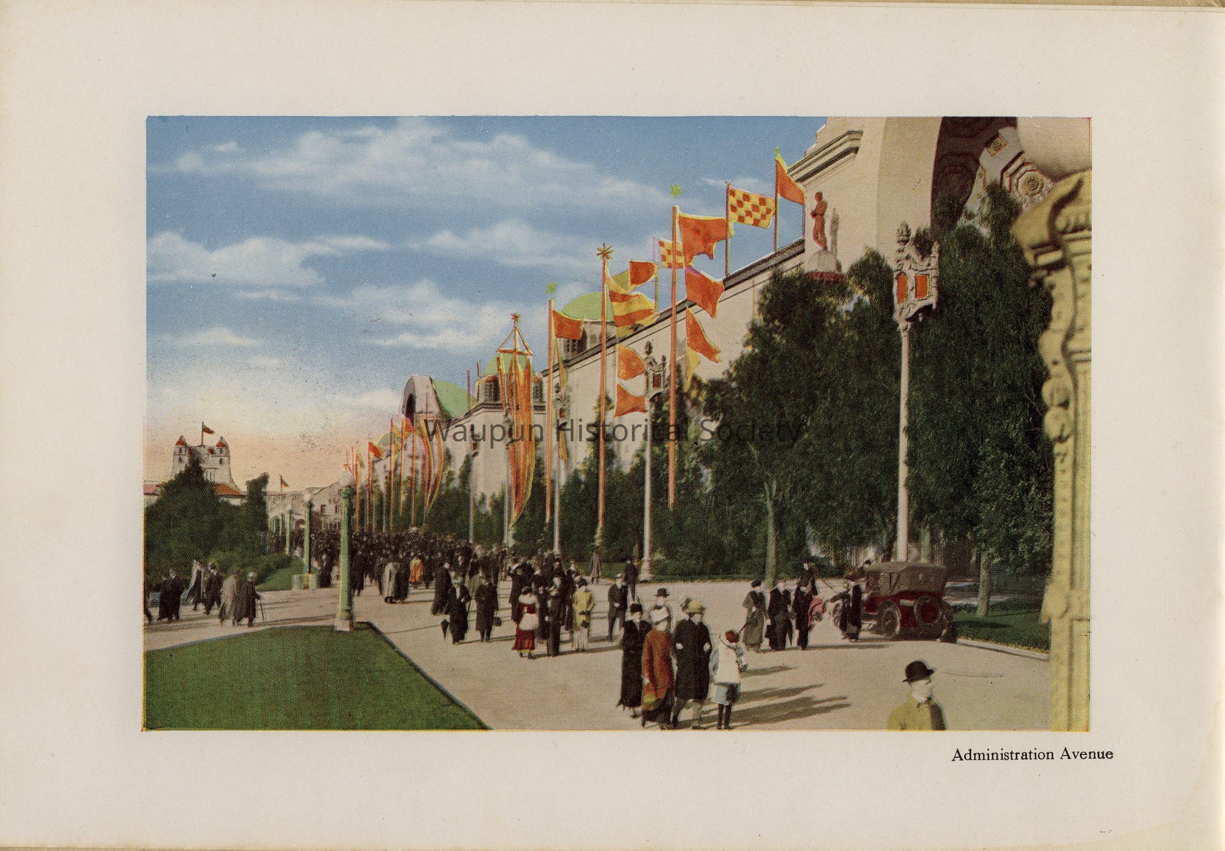 Booklet of the Panama Pacific Exposition. "Colortypes of the Panama Pacific International Exposition at San Francisco 1915. Robert A. Reid, Publisher of Official View Books, San Francisco. Official Publication." Copyright, 1915, by Panama Pacific International Exposition Company." The Panama Pacific exposition was where Mr. Clarence Addison Shaler saw the "End of the Trail" by James Earle Fraser. At some point he decided to buy the statue for Waupun, it was placed in 1929.