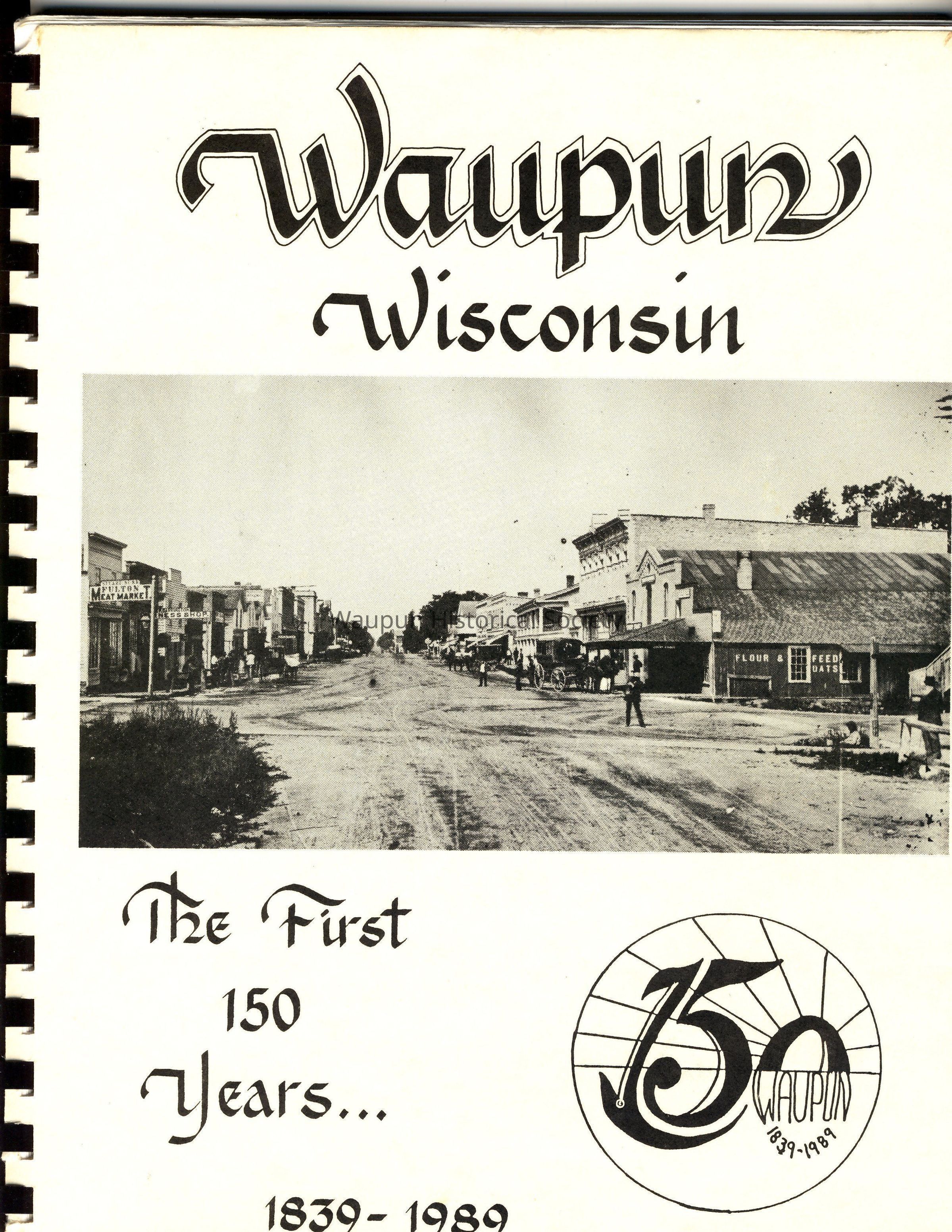 Paper-back book entitled, "WAUPUN WISCONSIN The First 150 Years" with a photo of Main Street in the mid to late 1870s as indicated in print.