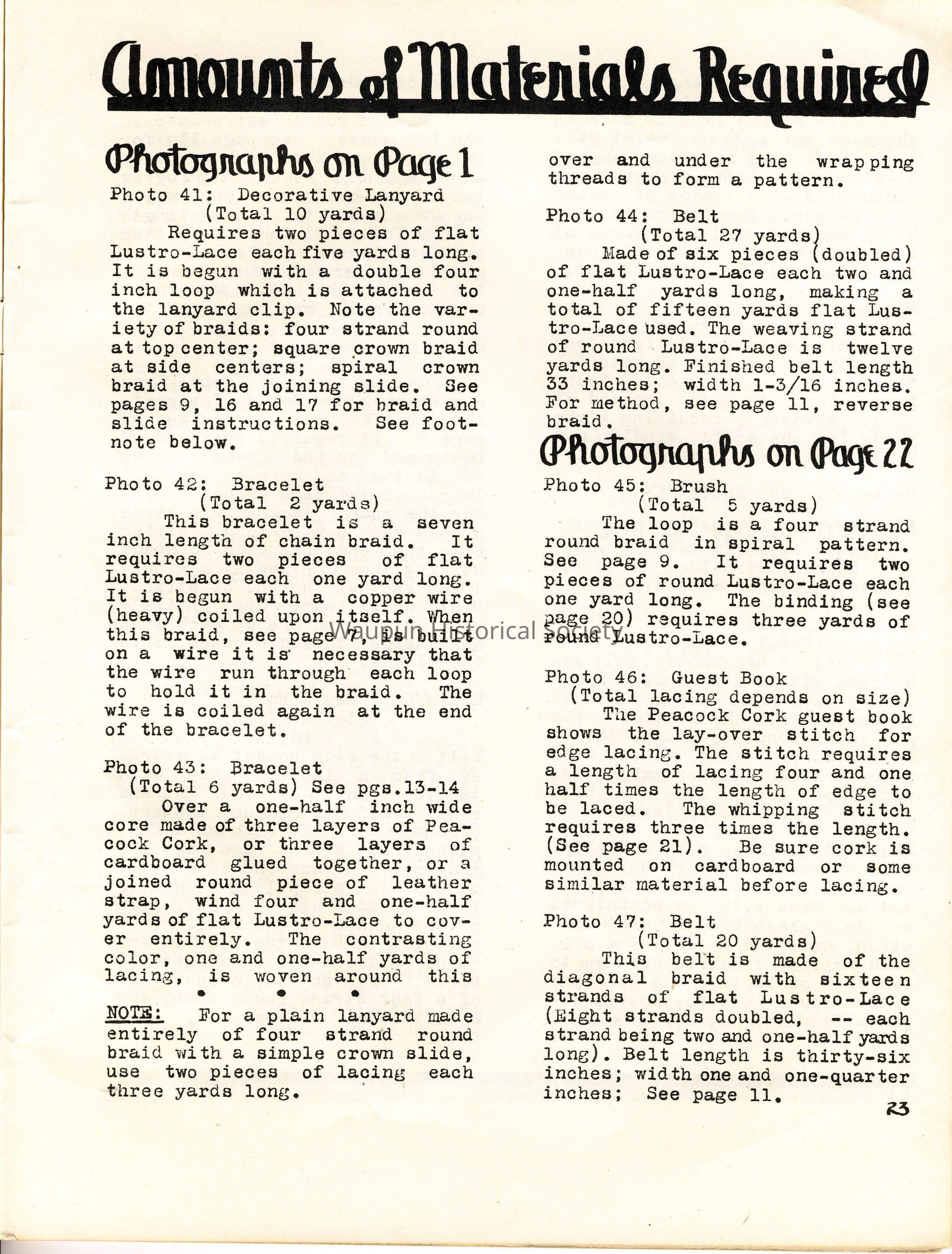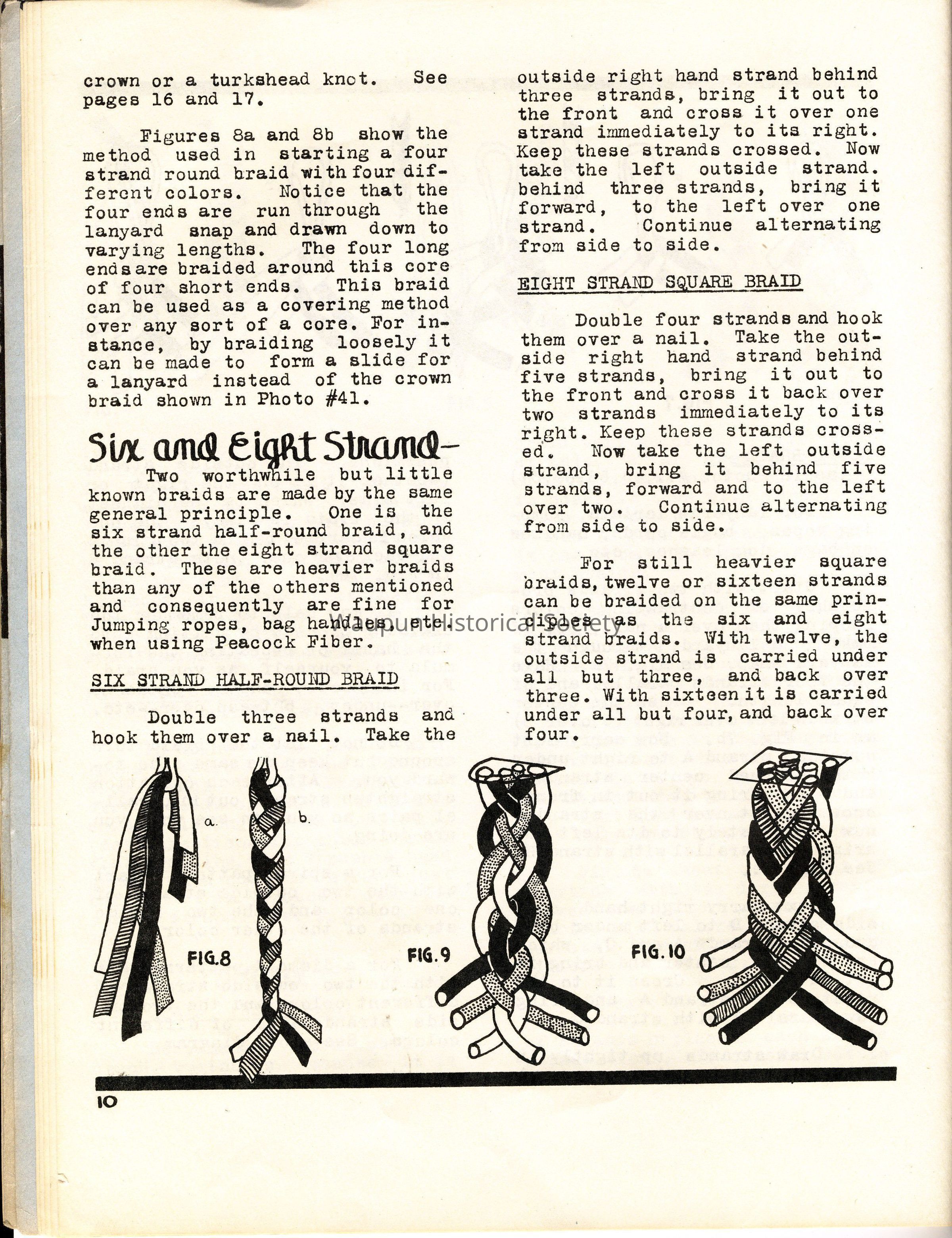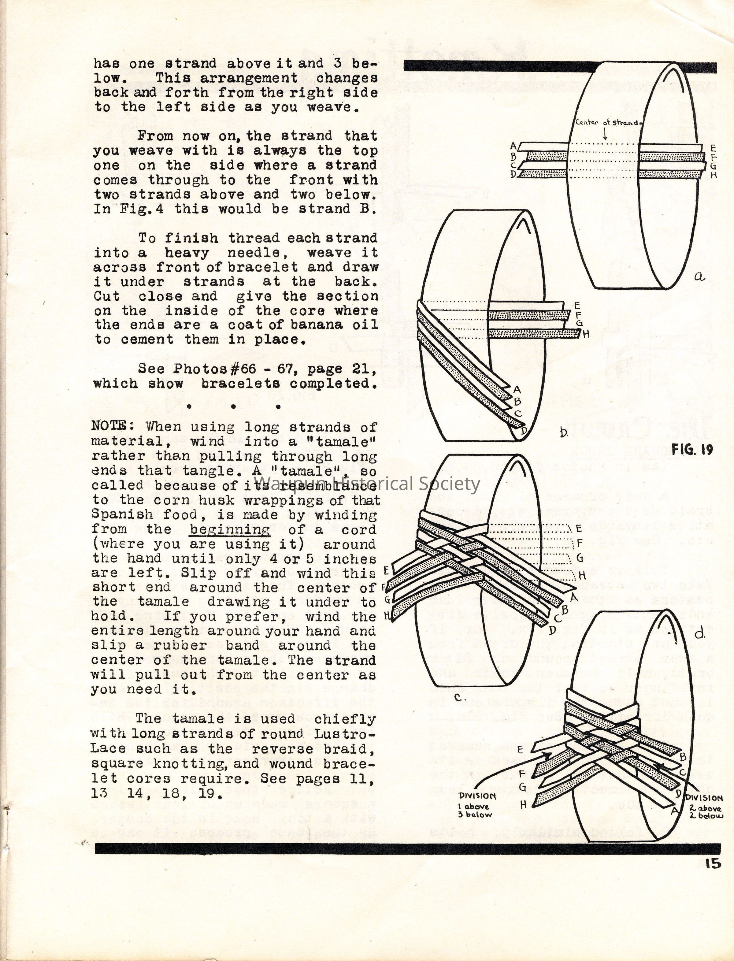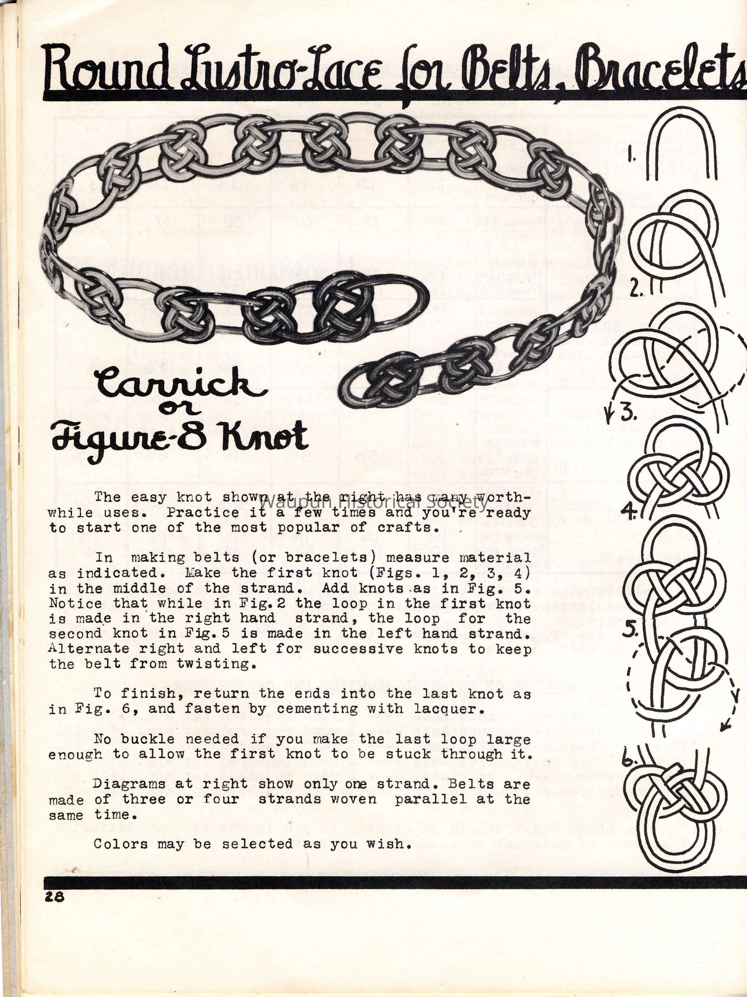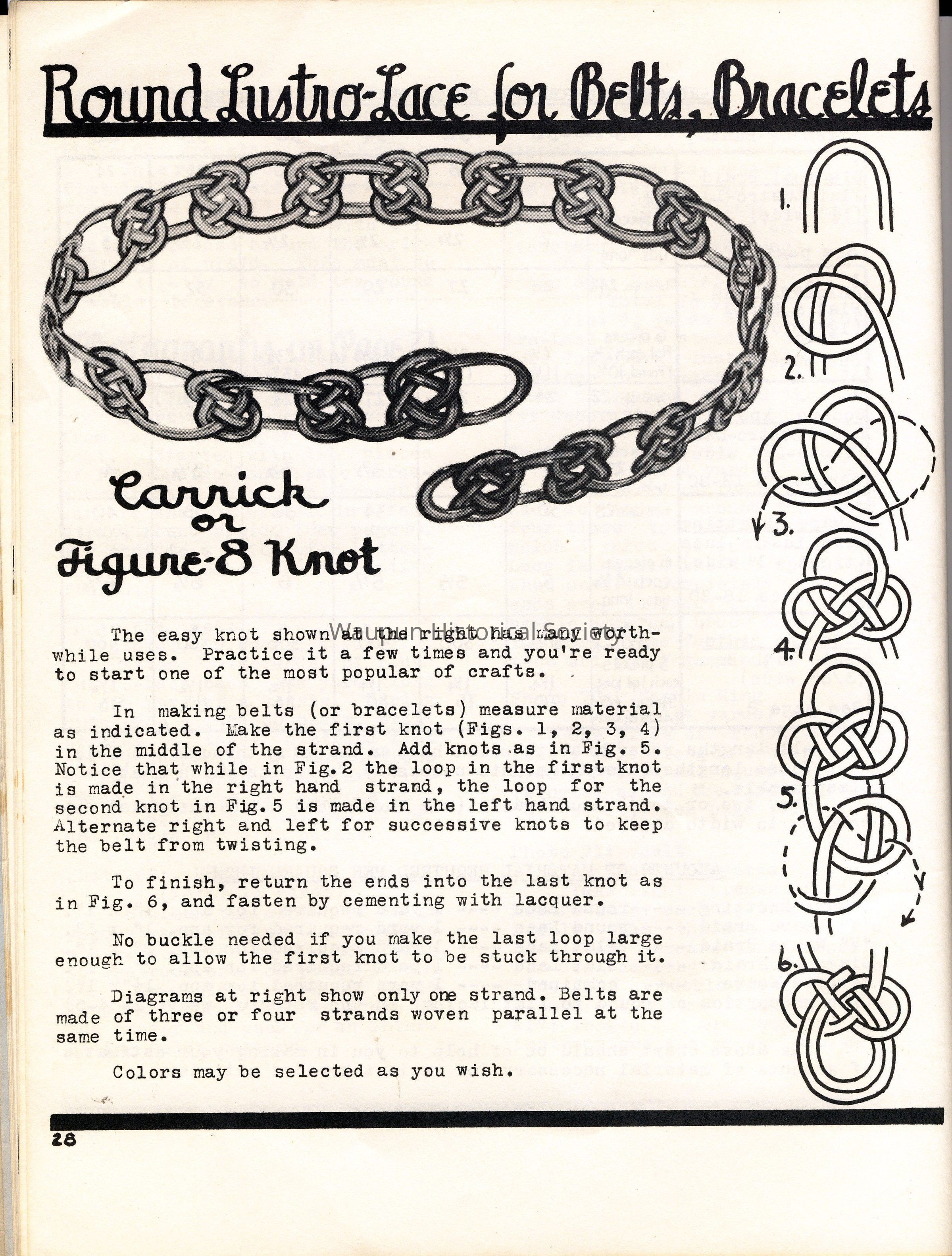Booklet published by Handcrafters of Waupun. This is an instruction booklet for making belts and bracelets or napkin rings. It tells how to braid, knot, bind and lace. Has photos. The book has not been OCRed. When published there was a 50 cents charge.Acquisition