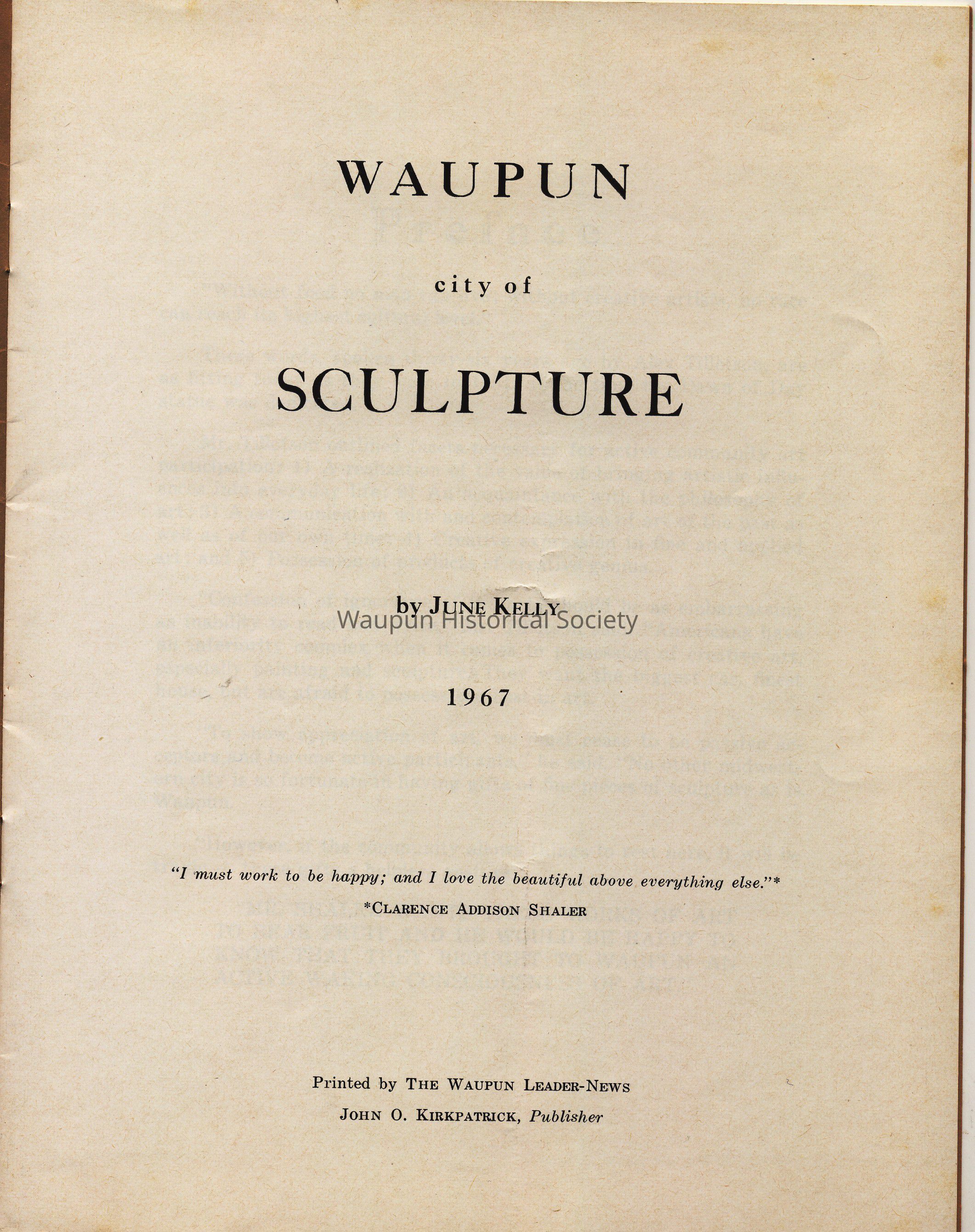 Waupun, City of Sculpture, booklet, June Kelly, 1967.