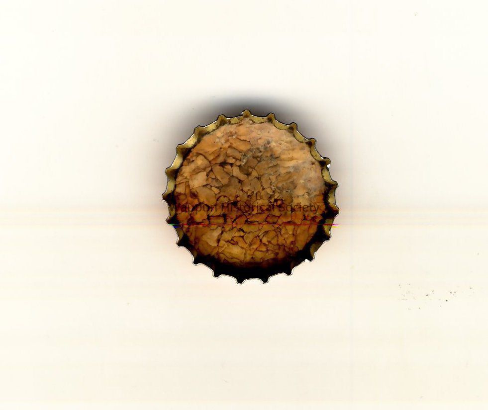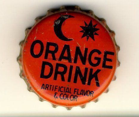 Bottle cap from Waupun Bottling Works, Waupun, Wis., ORANGE DRINK, Artificial Flavor & Color, Crescent moon and Star stamped on top of cap which is orange. The inside of cap is cork.Acquisition