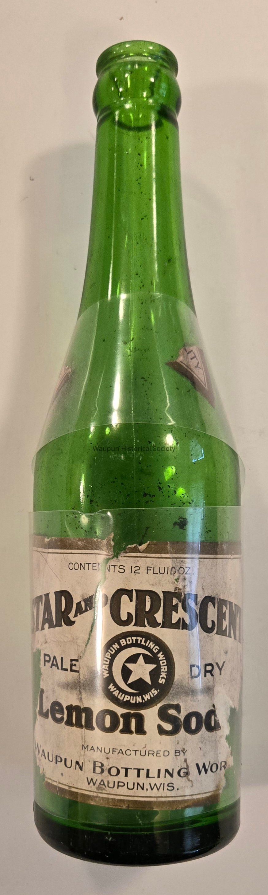 Bottle, Star & Crescent Soda, Green Glass, Lemon