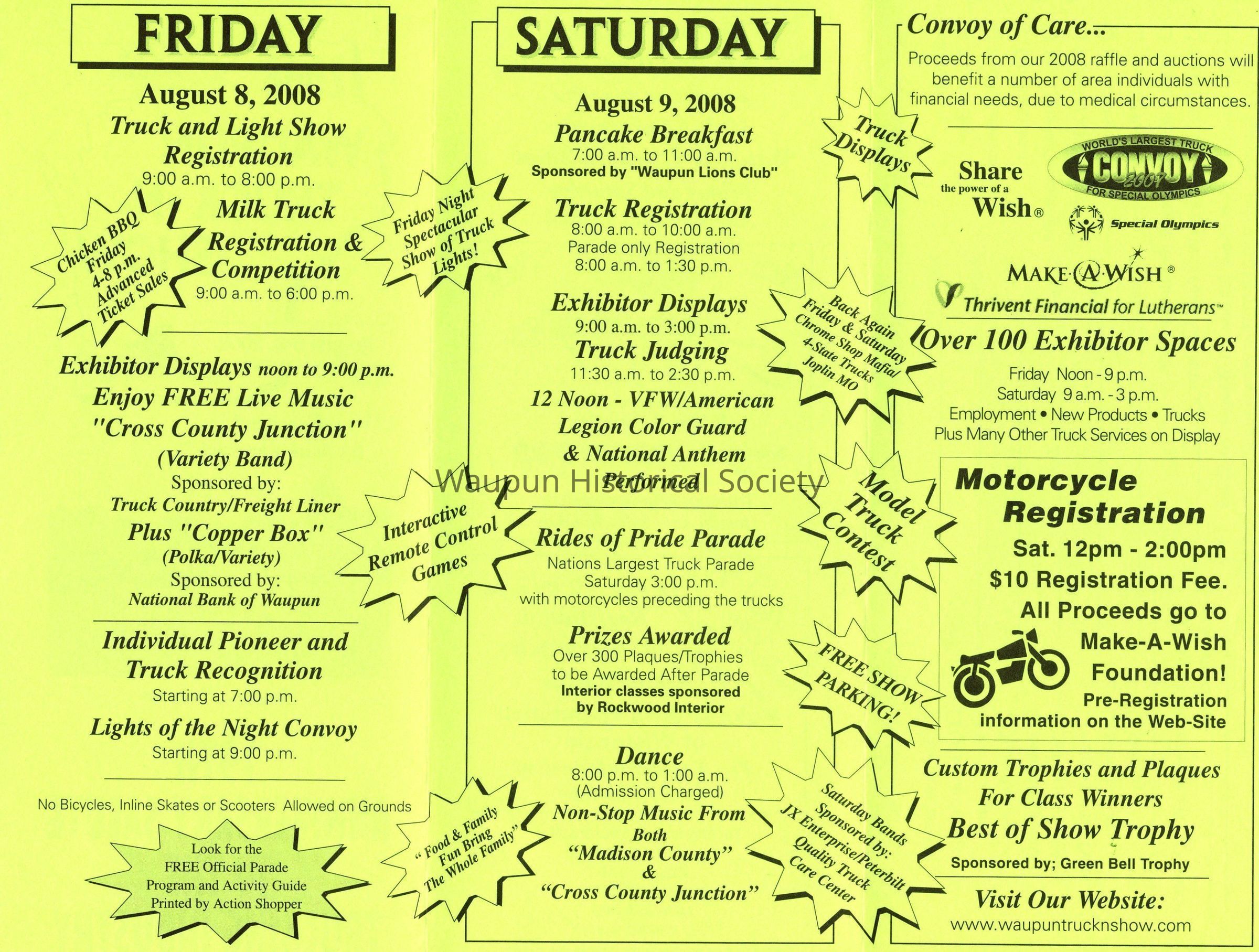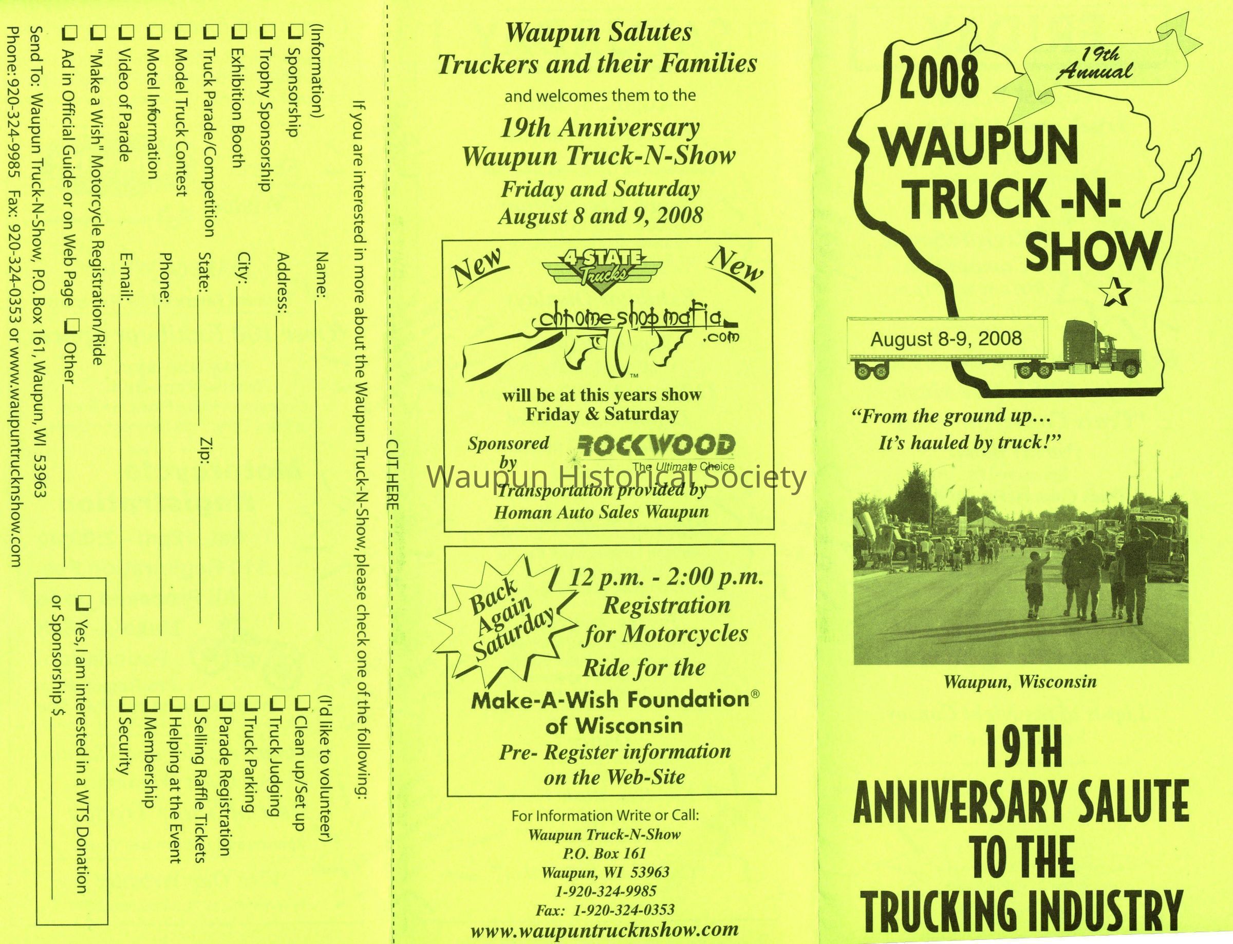 Brochure from the 2008 Waupun Truck-N-Show held August 8-9. this was the 19th anniversary salute to the trucking industry.Acquisition