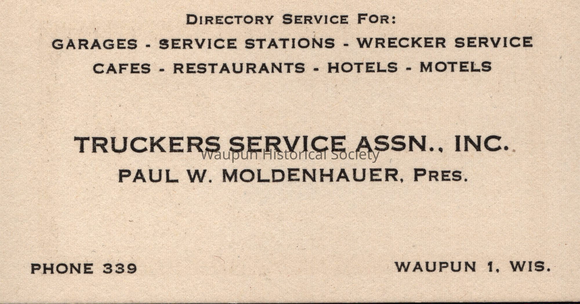 Business Card, Paul Moldenhauer, Truckers Service Association, Inc.Entry/Object ID