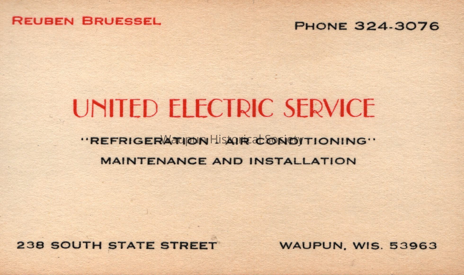 Business Card, Reuben Bruessel, United Electric Service
