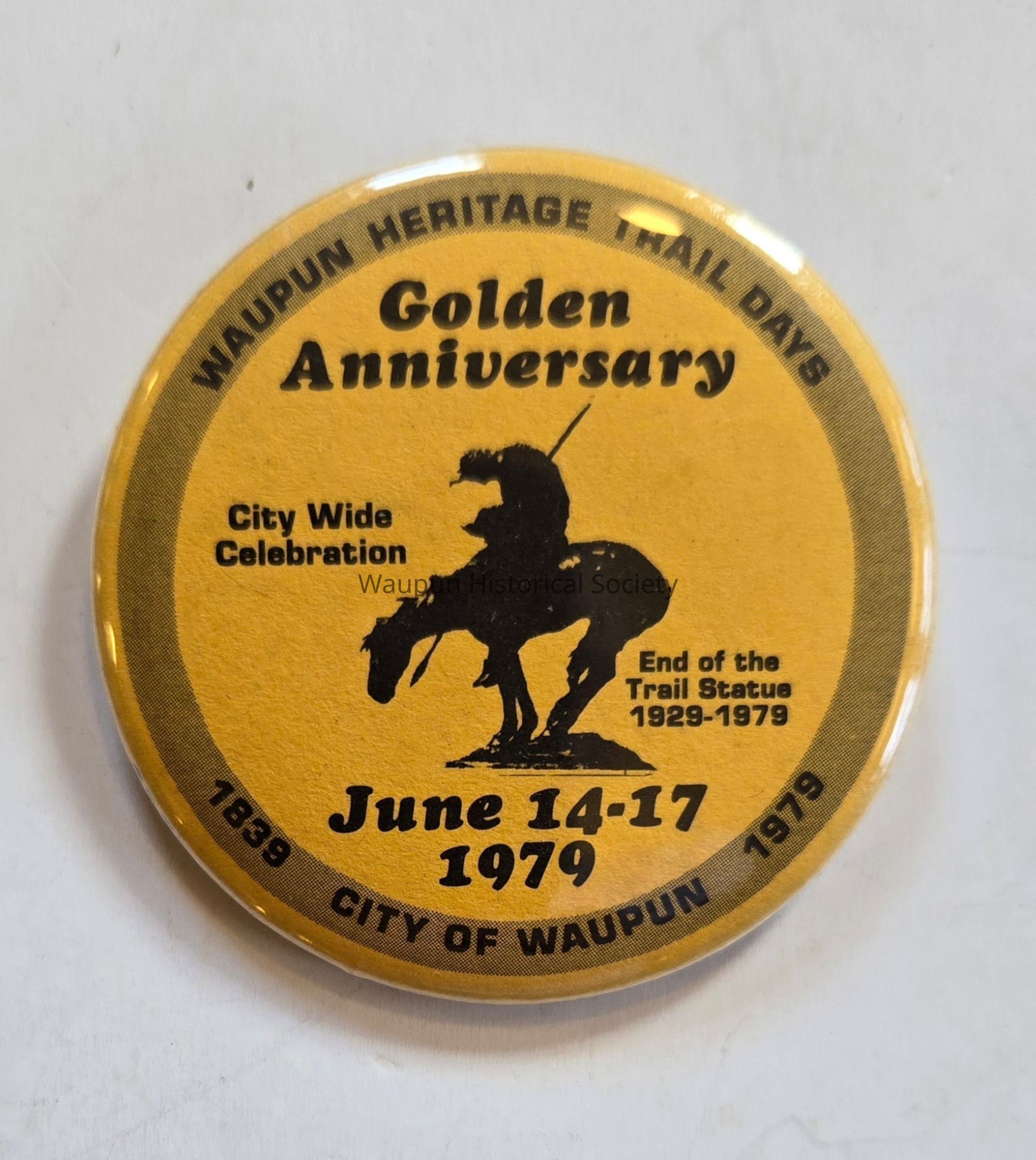 Button, Waupun Heritage Trail Days, Founding Family Descendant, Golden Anniversary, 1979