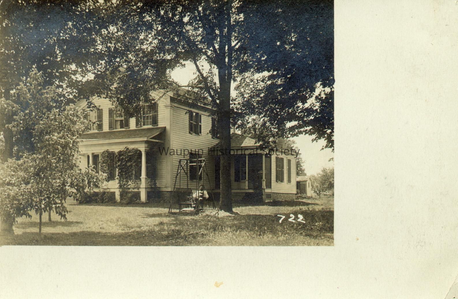 Postcard, Houses, 529 East Lincoln Street, #722. This is a Johnson postcard picture of the home at 529 E Lincoln. At various times it was owned by the Robinsons, H. M. Larson, D. J. Hutchinson, Dr. Miller, Disbrow, and Parish.