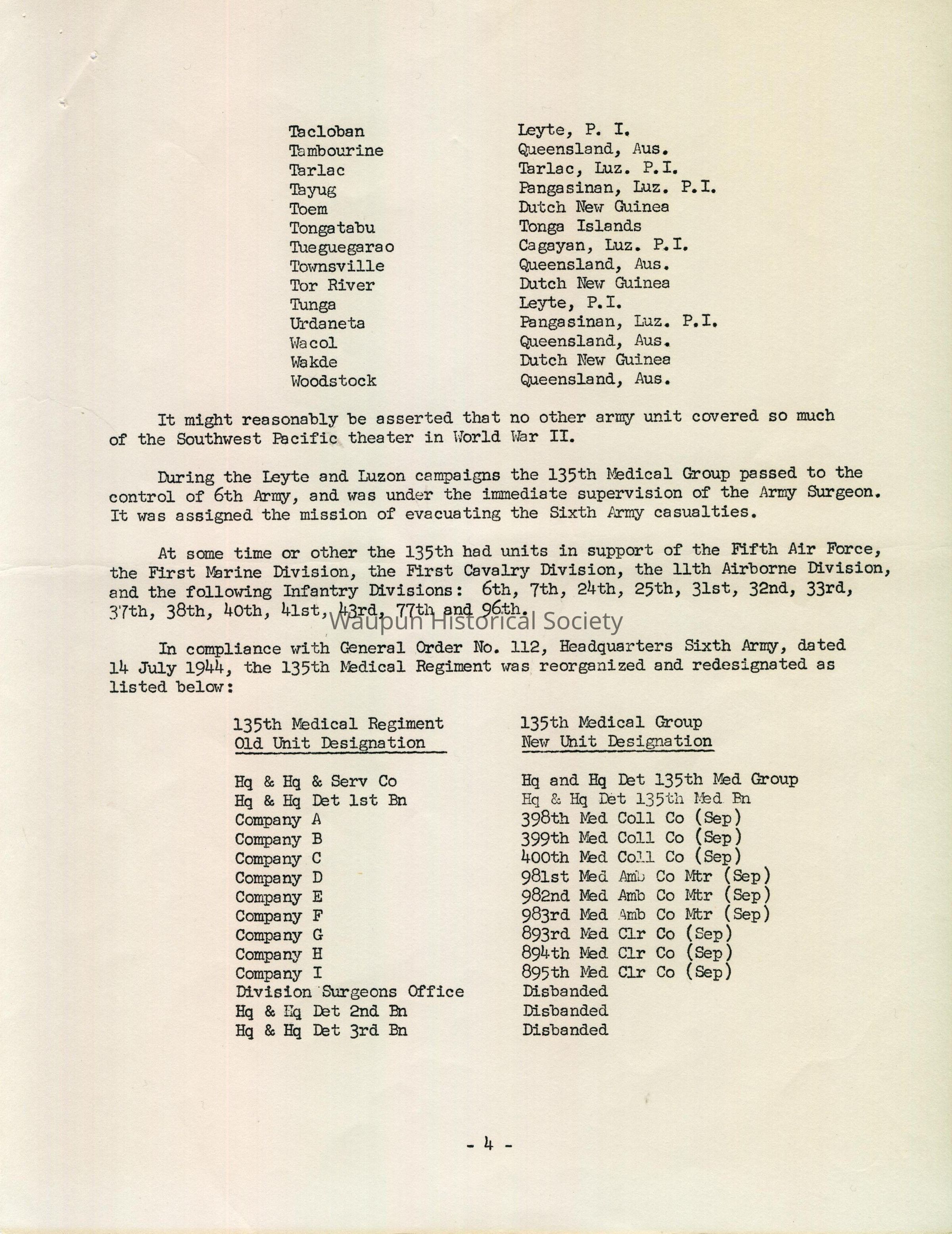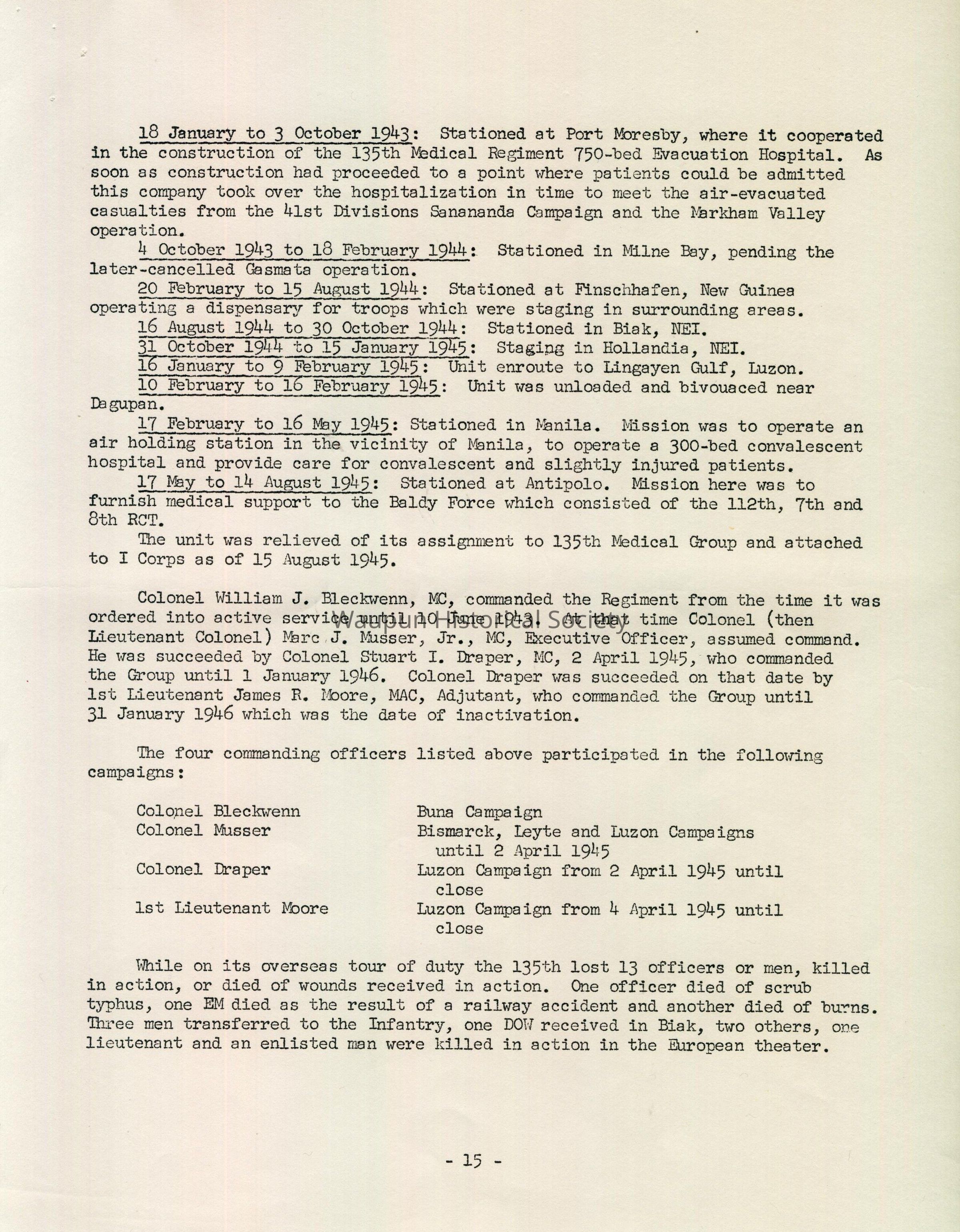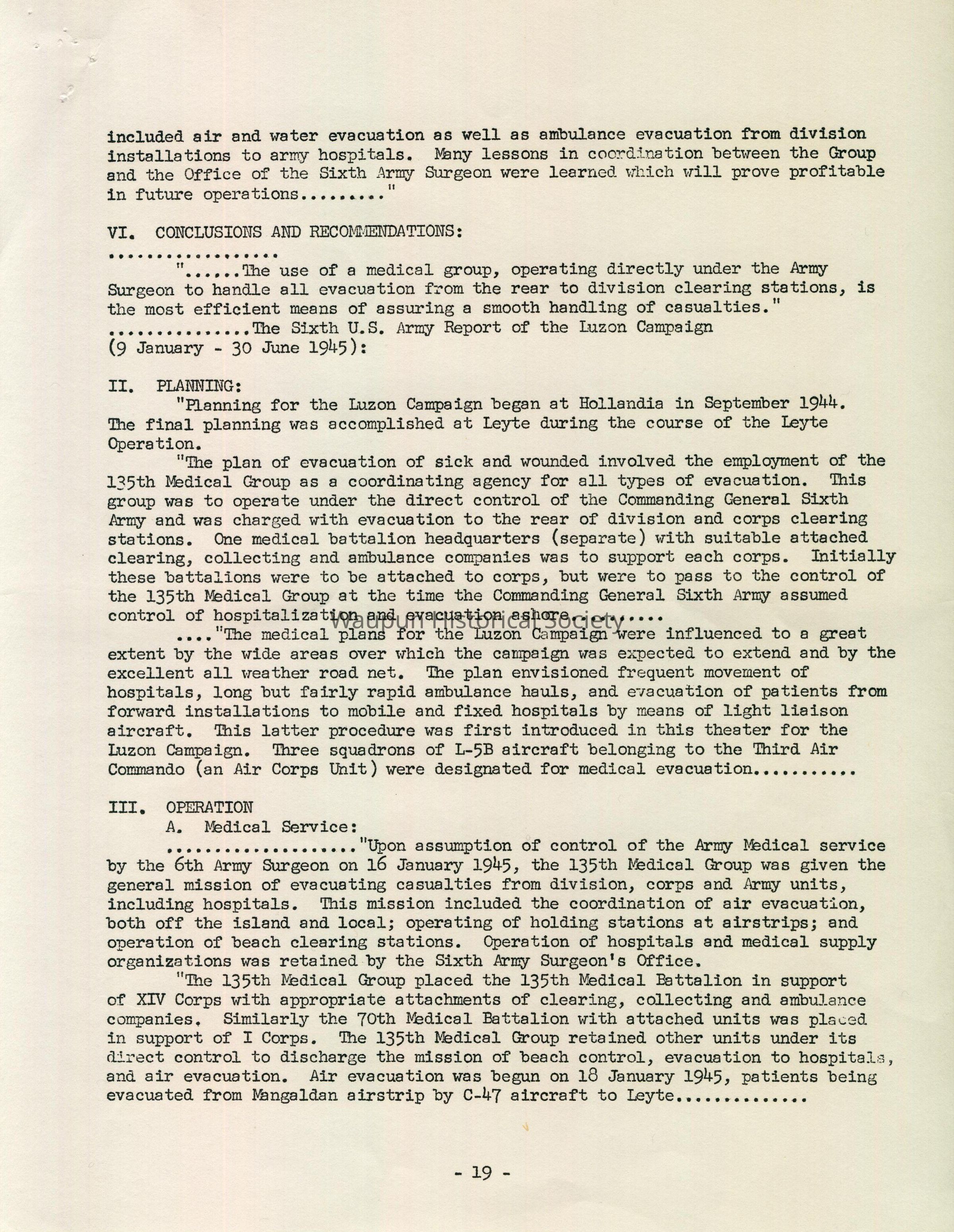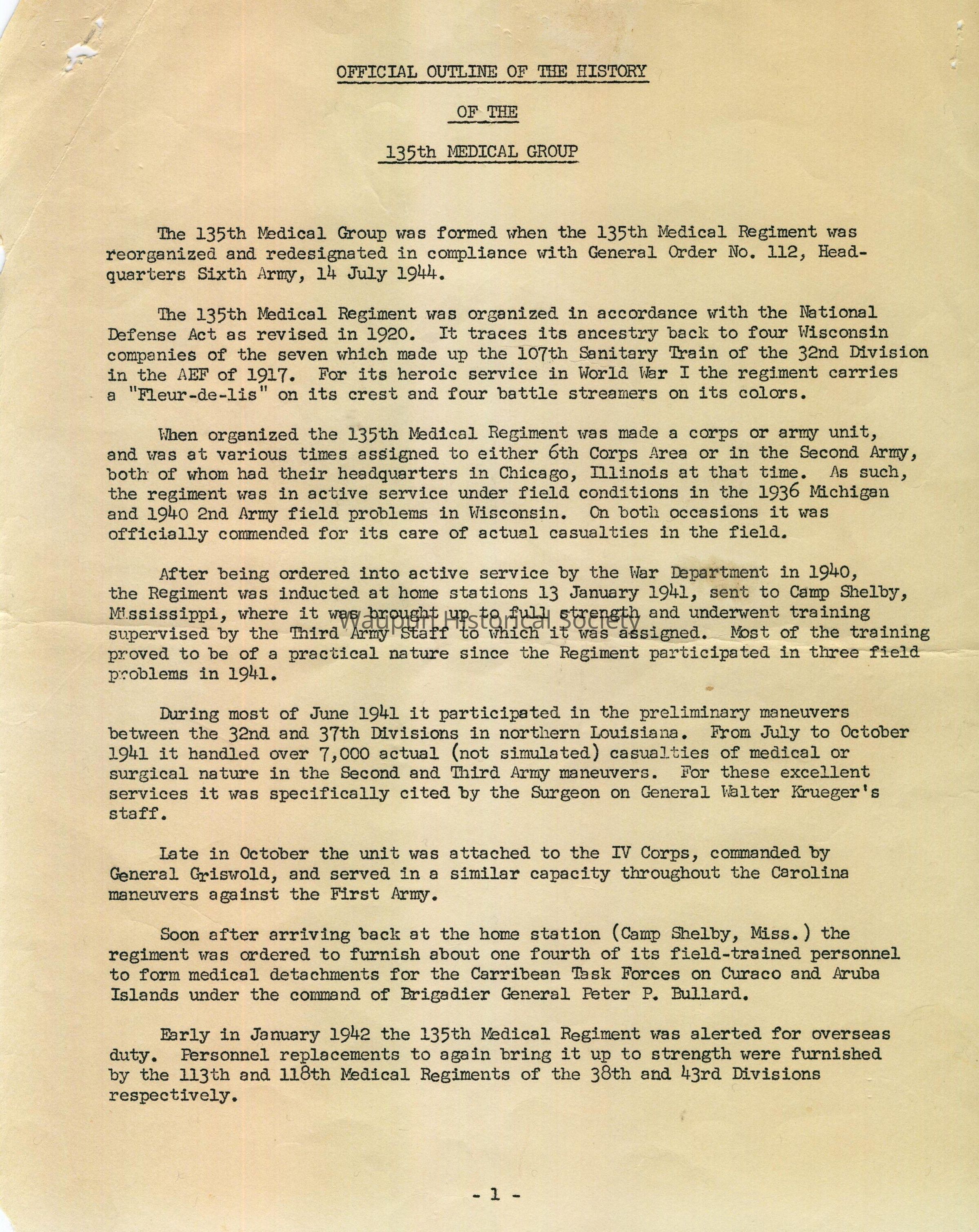 Military, Outline of the History of the 135th Medical GroupEntry/Object ID