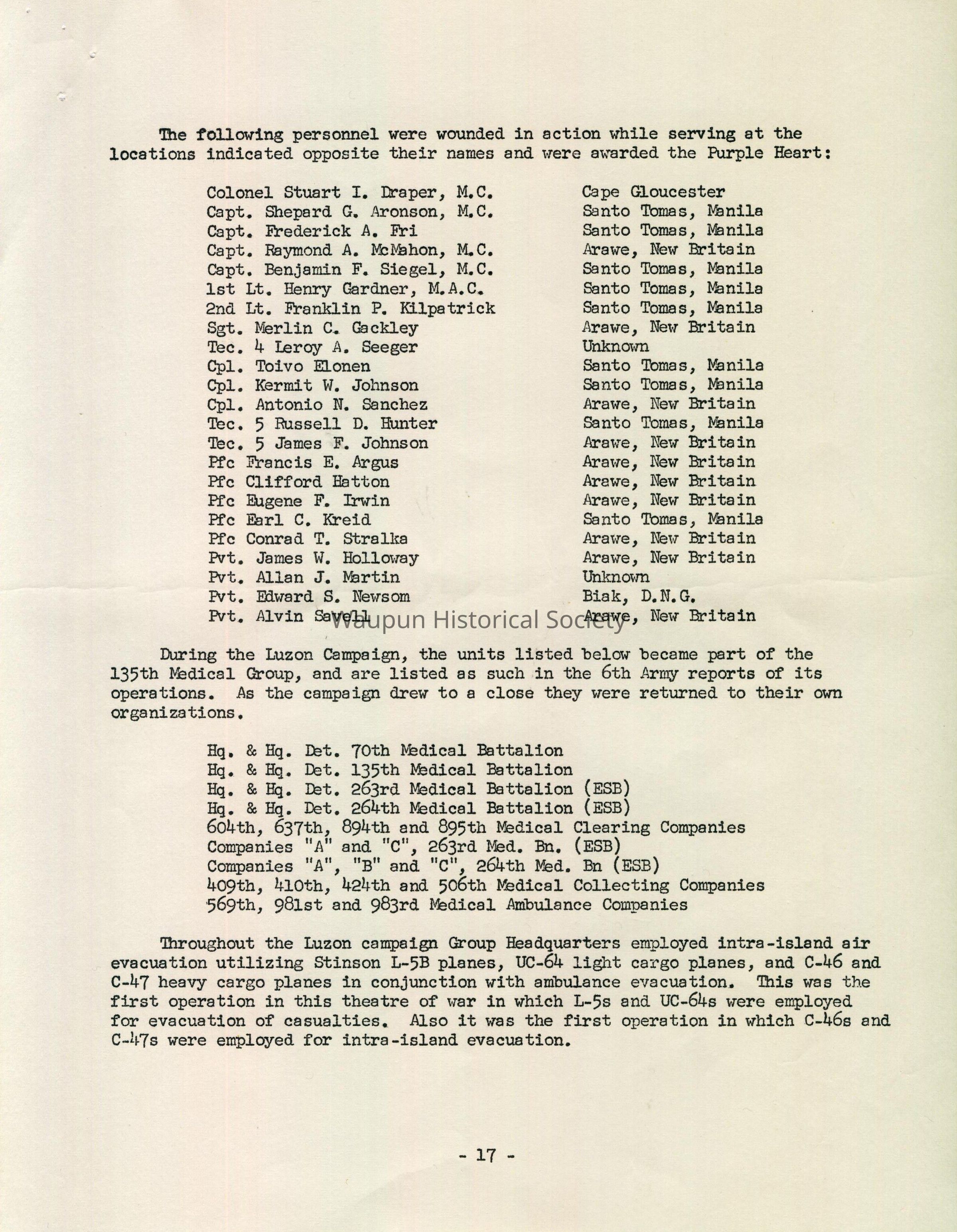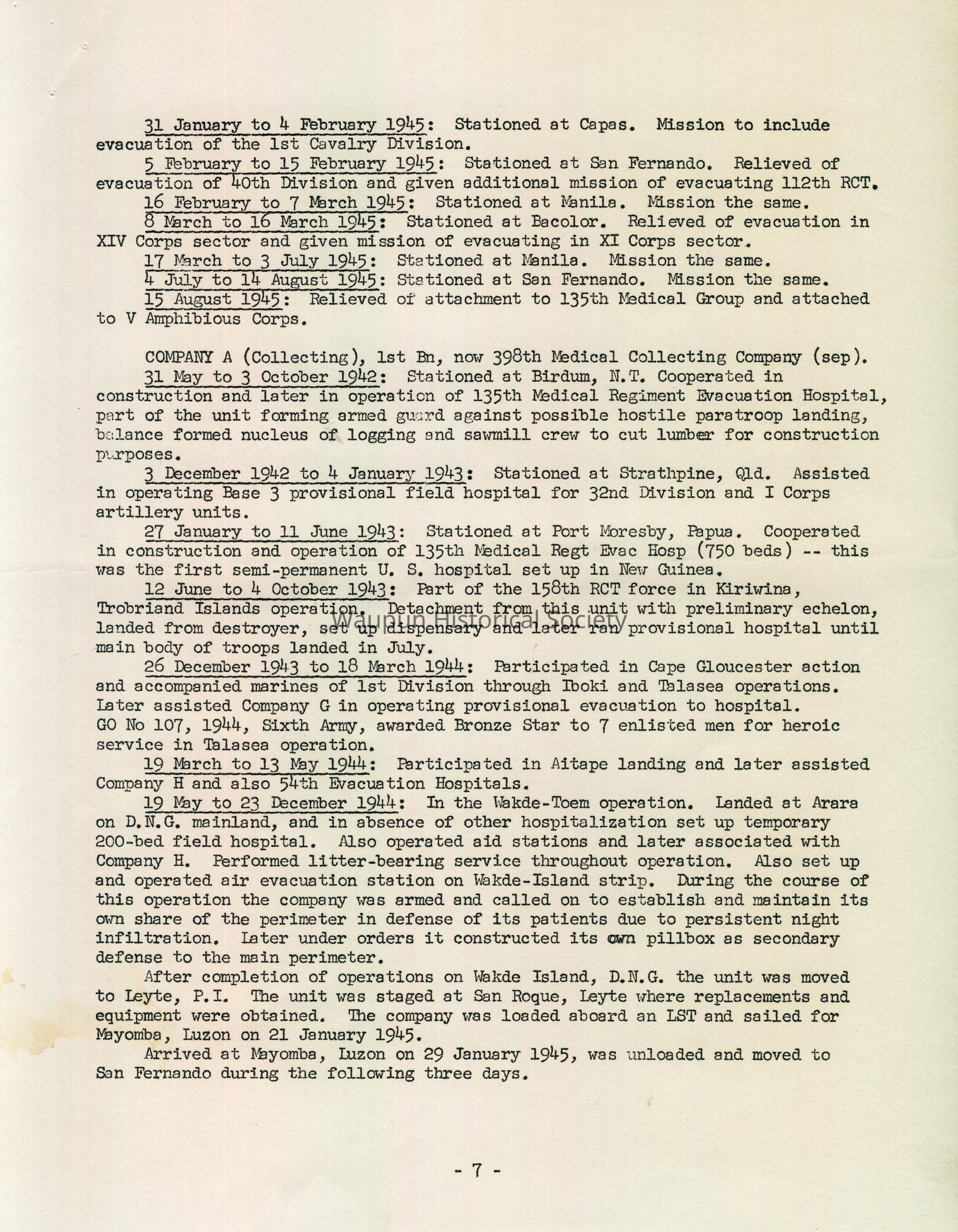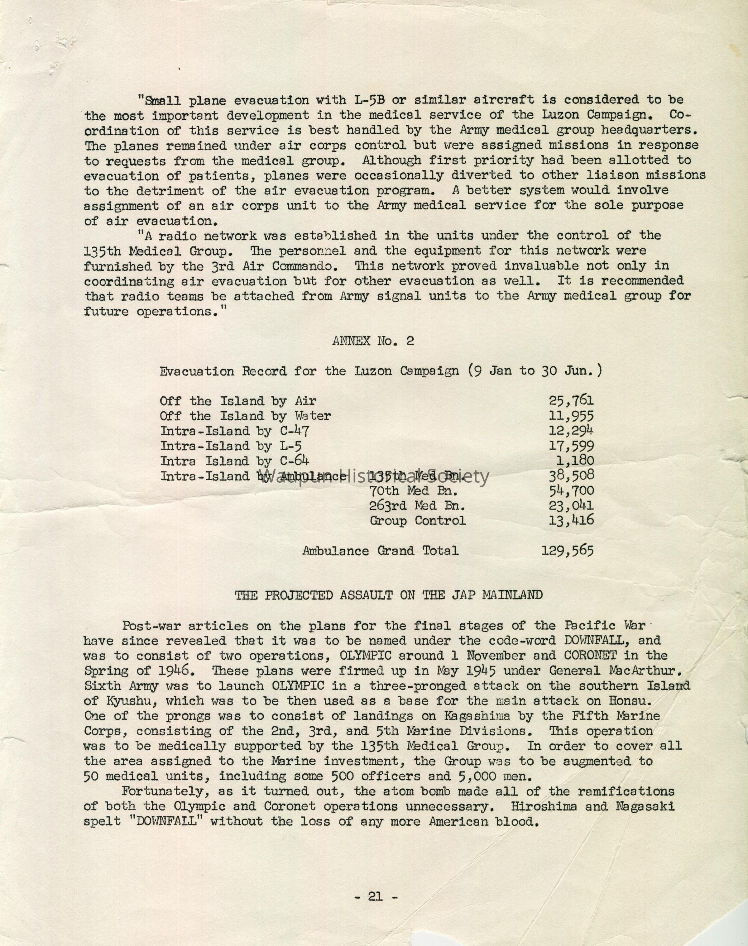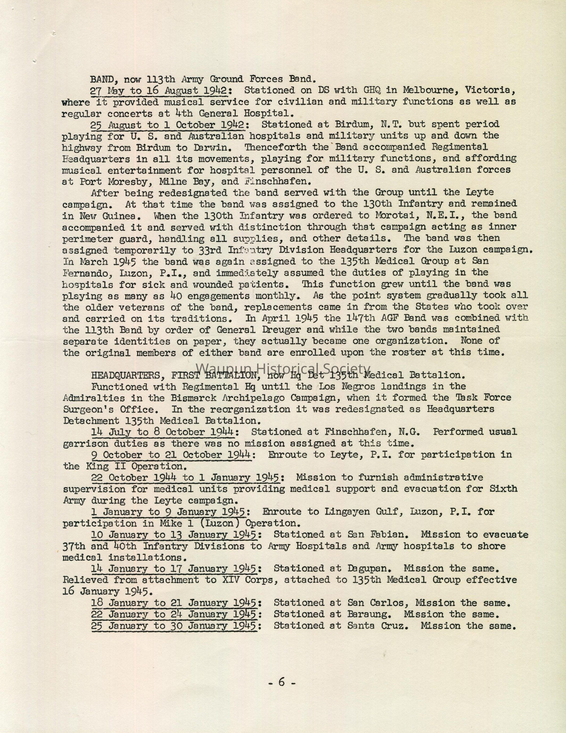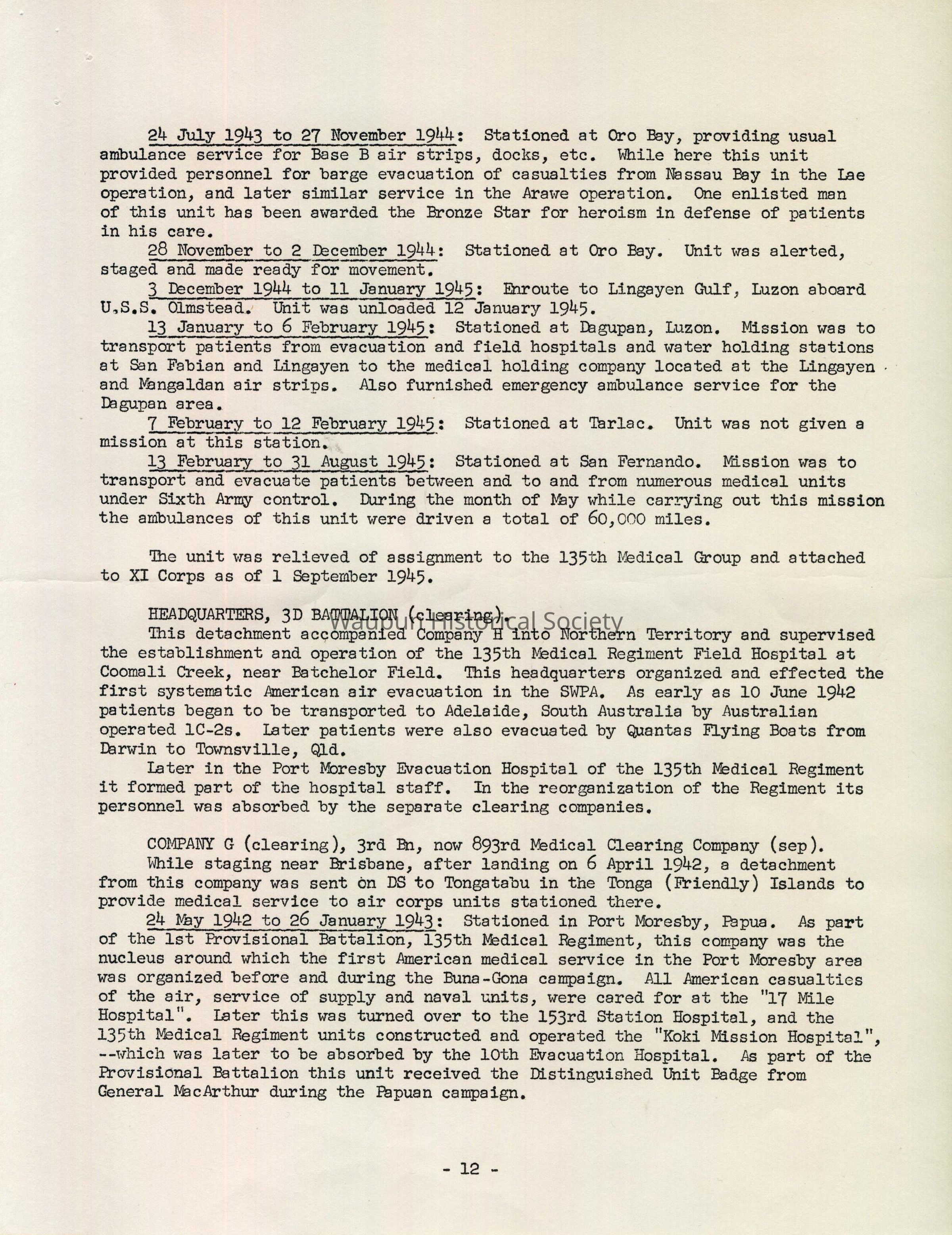 Military, Outline of the History of the 135th Medical GroupEntry/Object ID