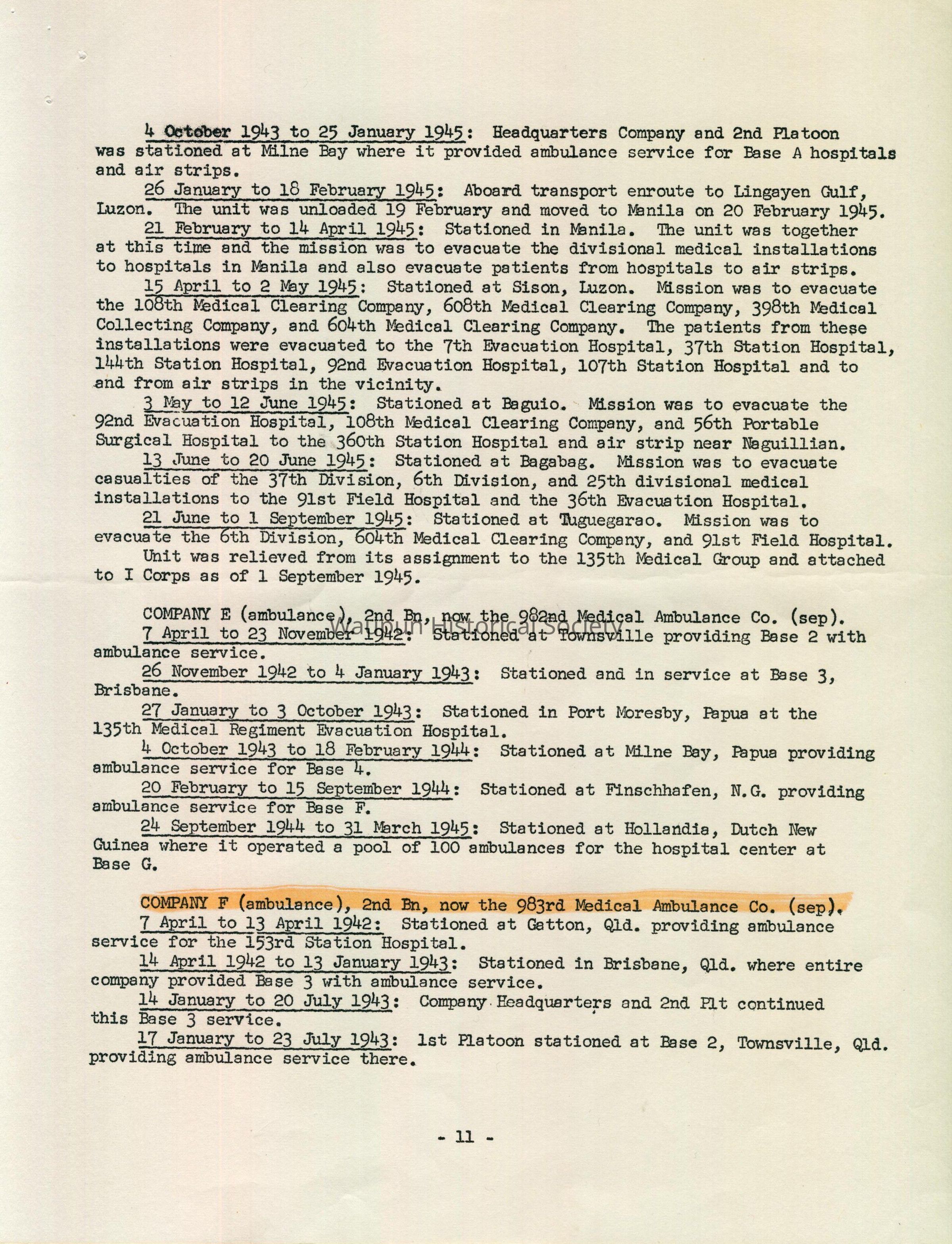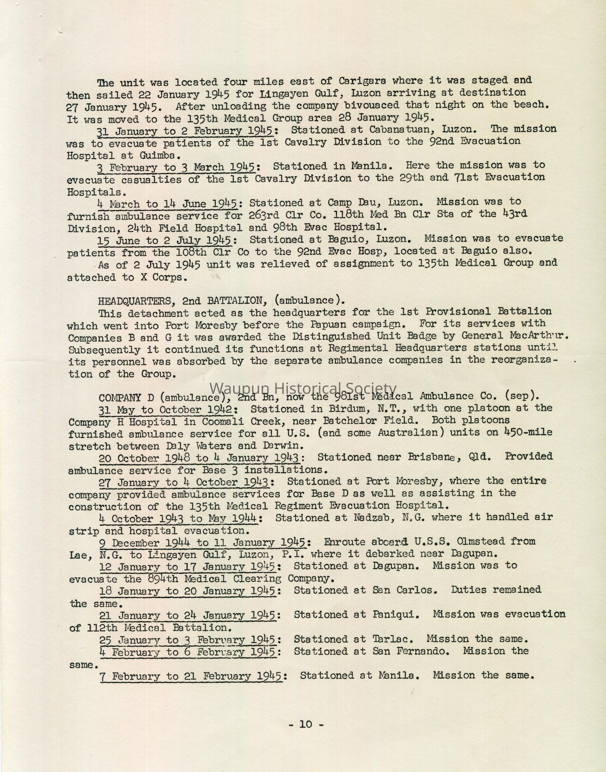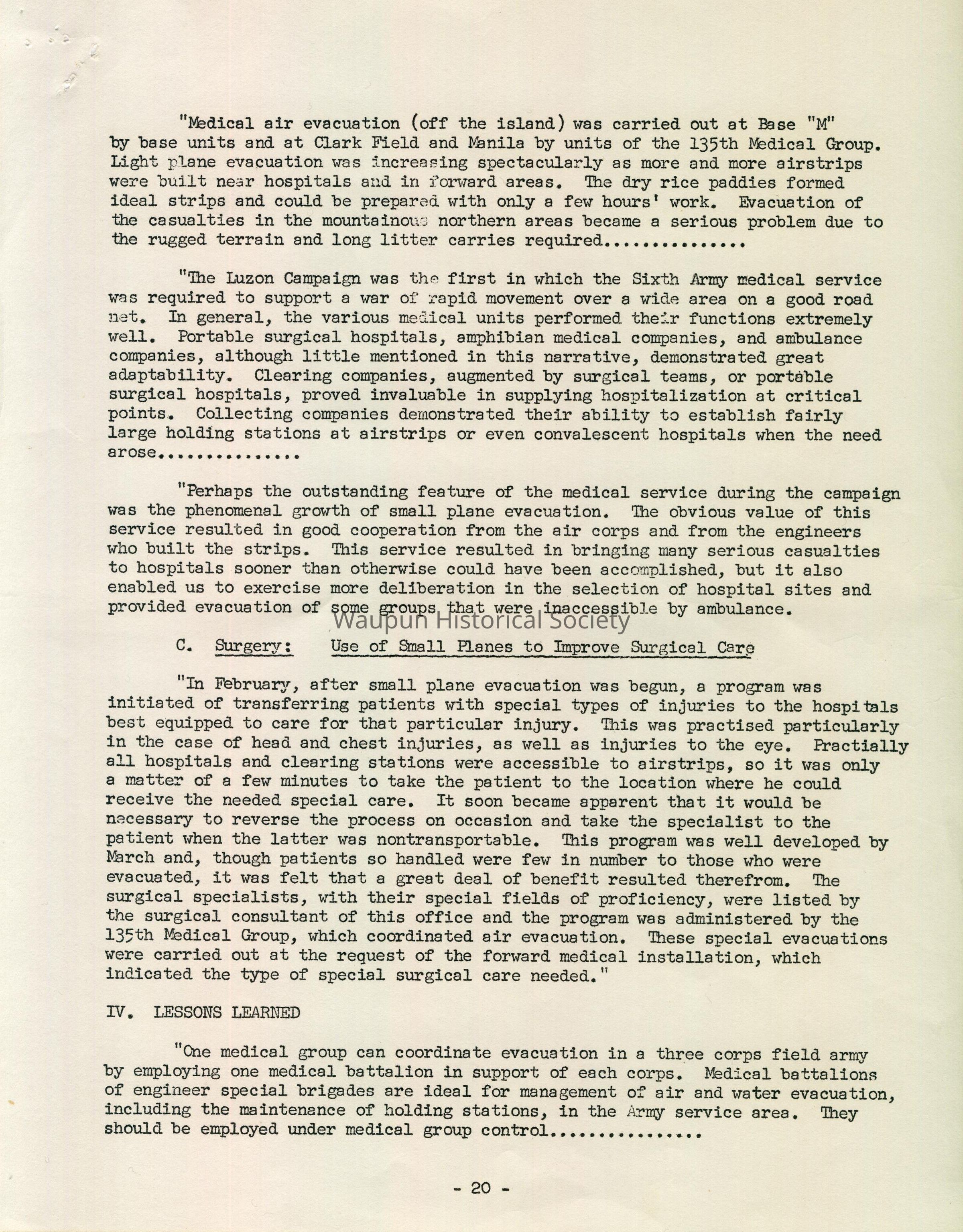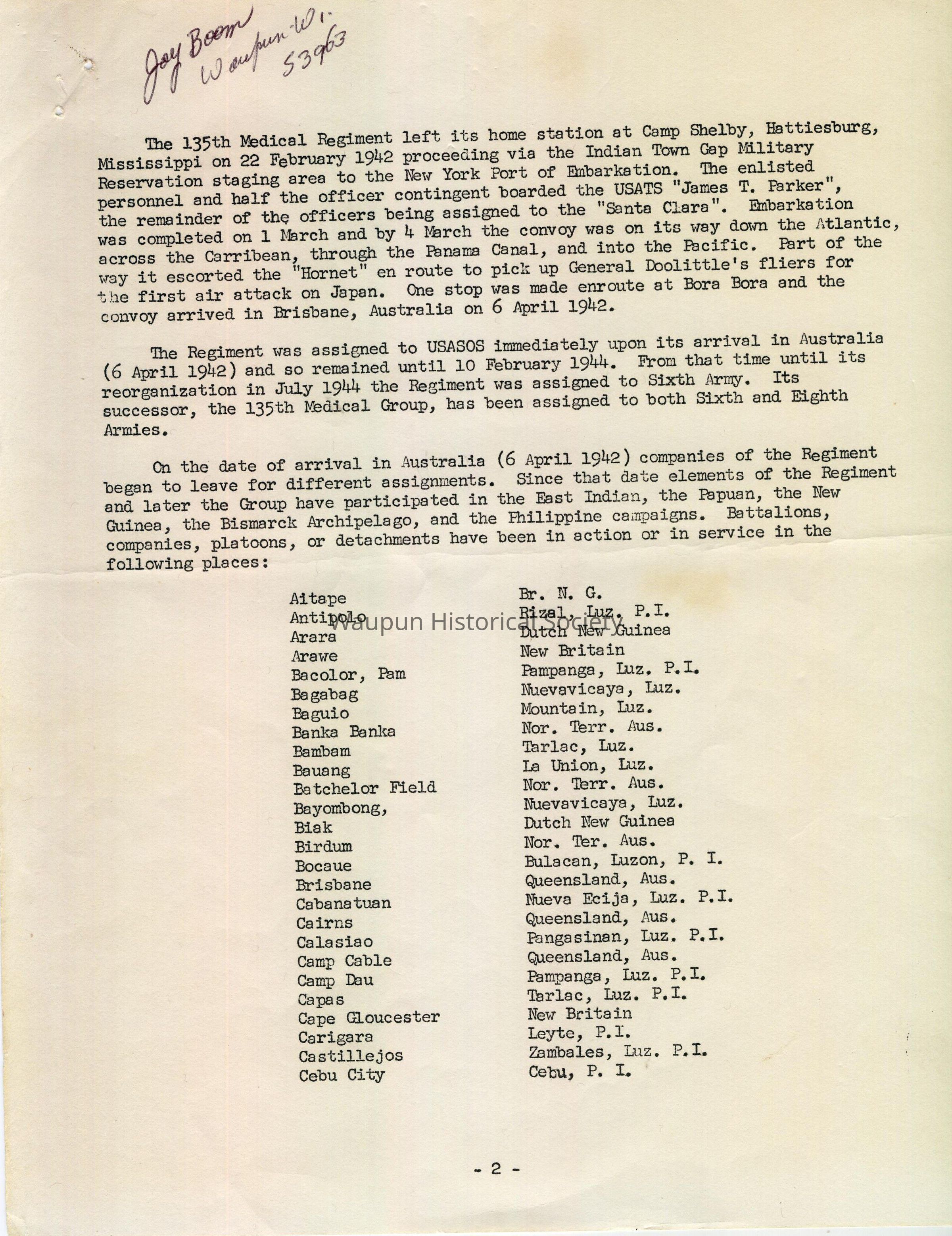Military, Outline of the History of the 135th Medical GroupEntry/Object ID