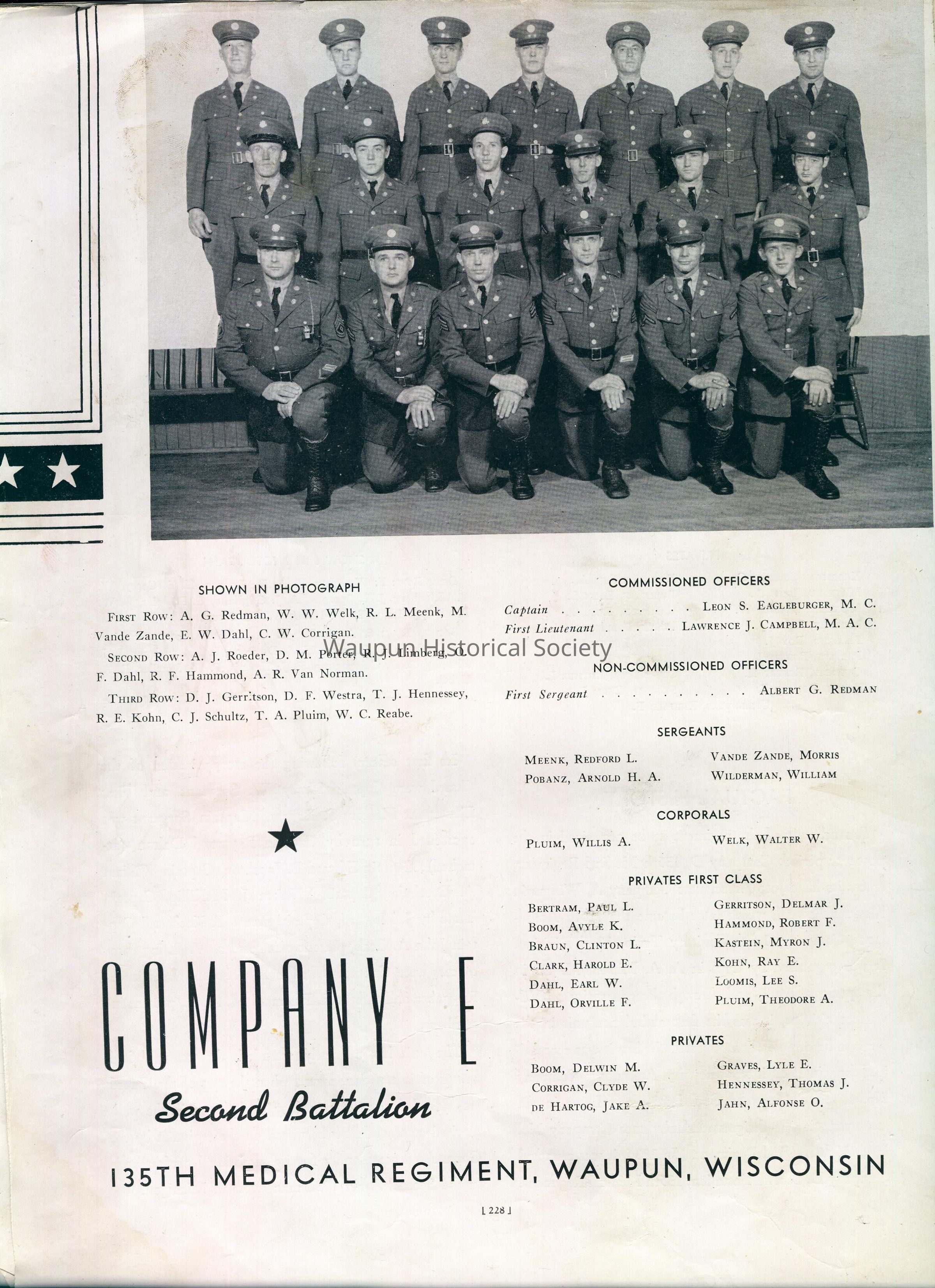 There are two photo's of the Company E, Second Battalion of the 135th Medical Regiment of Waupun, WI.