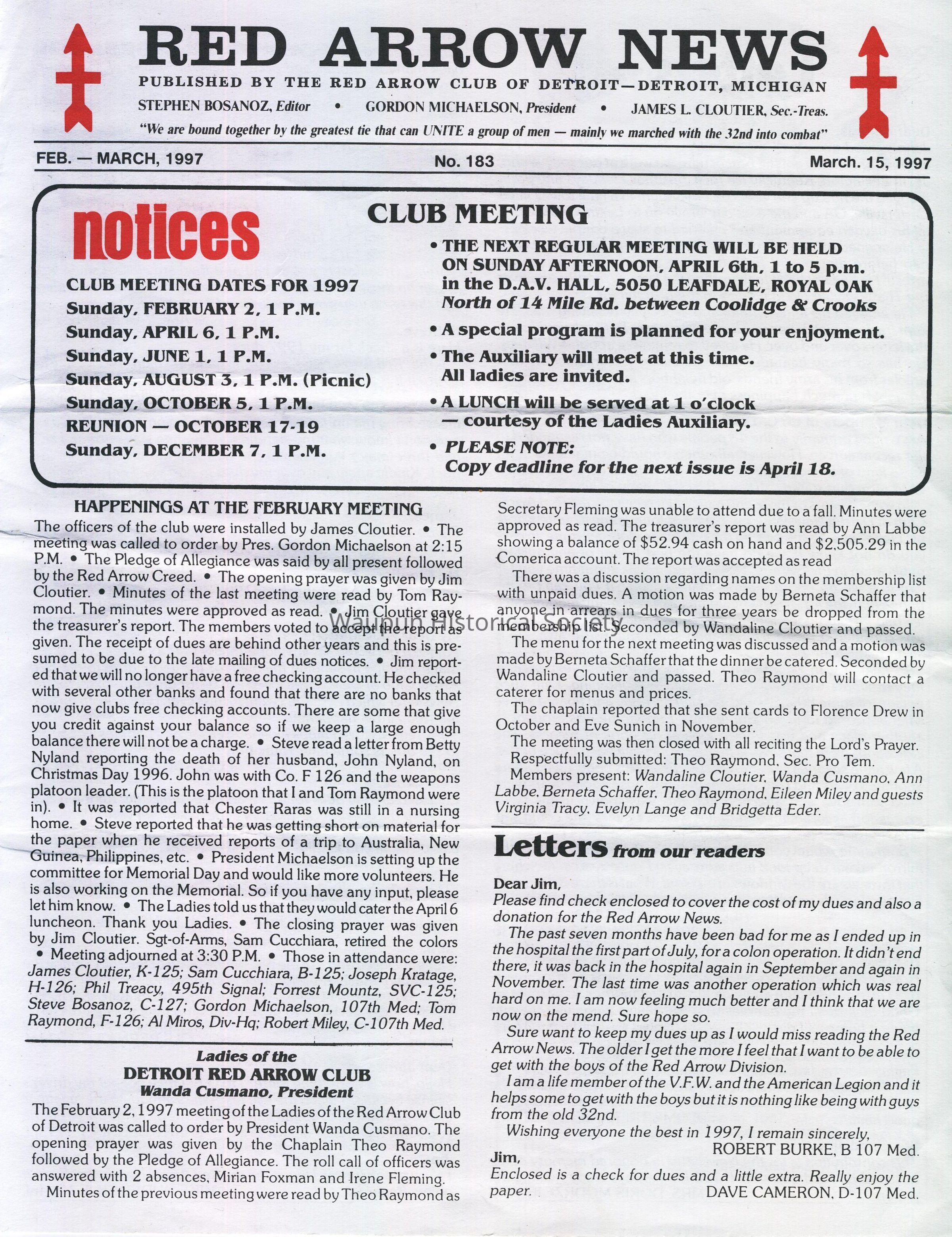 This pamphlet is one of the Red Arrow News, published by the Red Arrow Club of Detroit, Detroit, Michigan. Editor is Stephen Basanoz. President is Gordon Michaelson. and Sec./Treas. is James L. Cloutier.